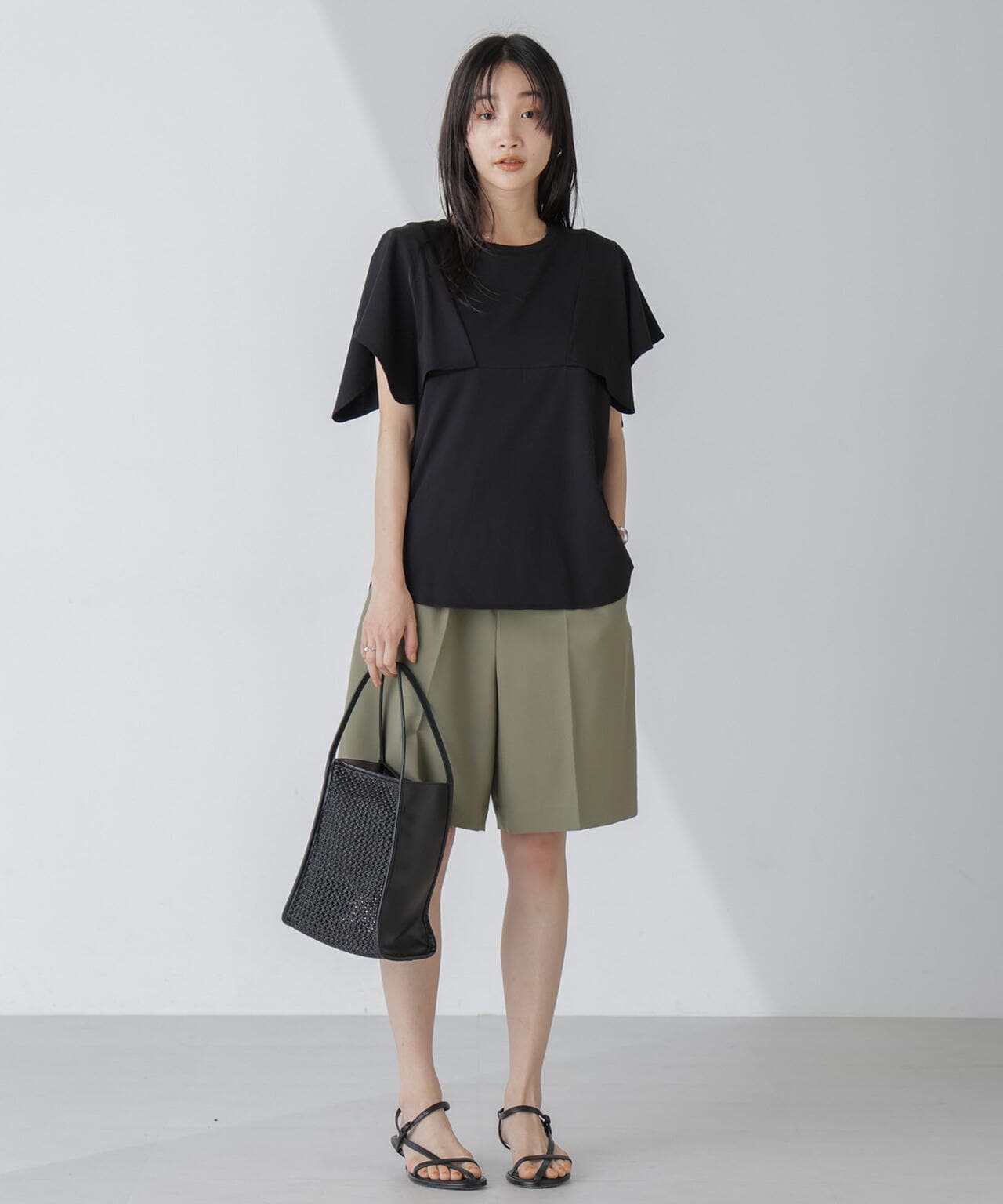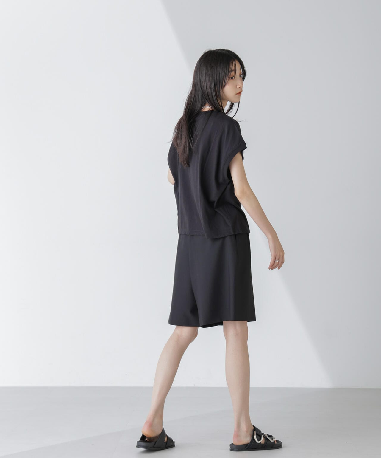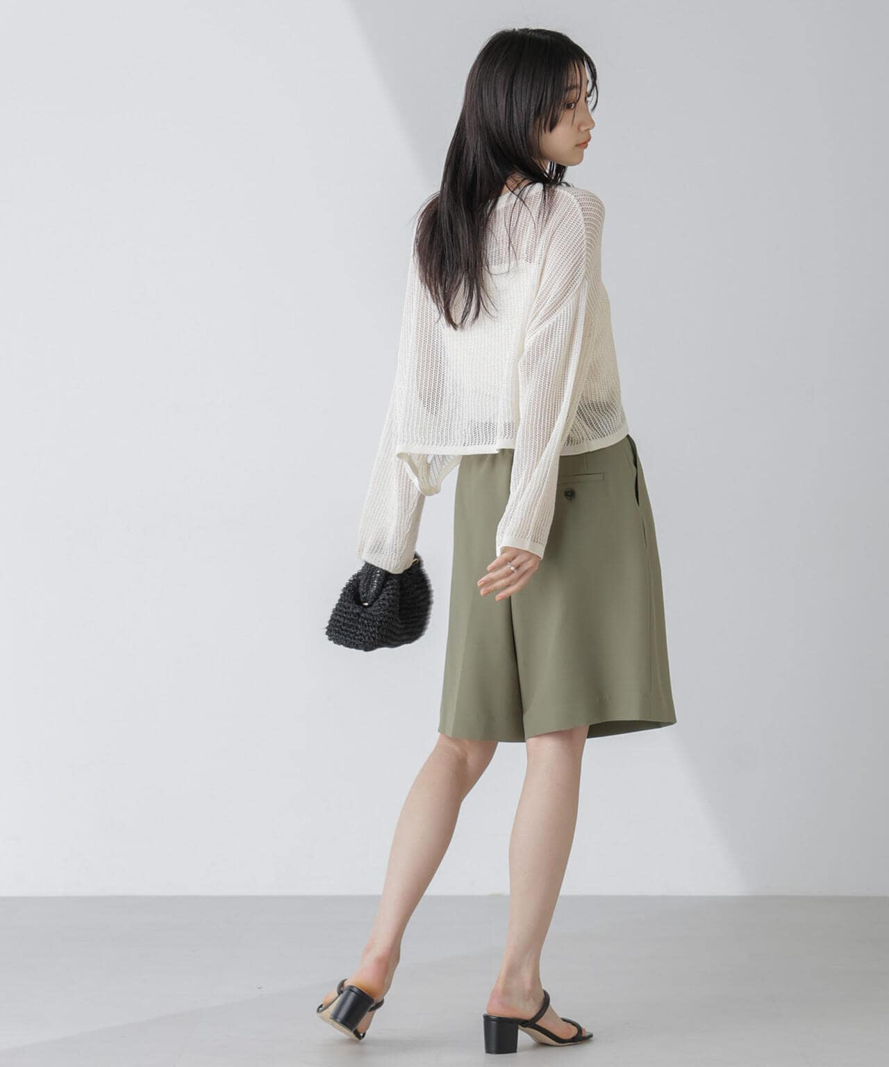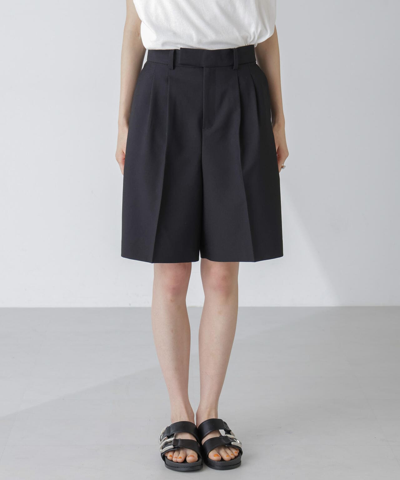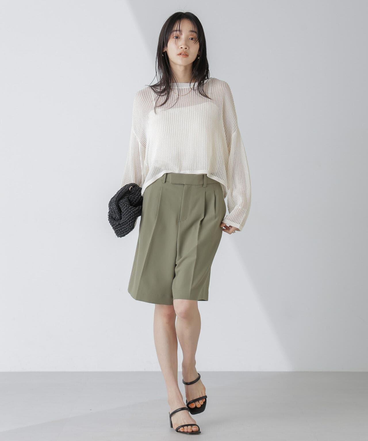 大人カジュアルスタイルにピッタリなキレイ目ショートパンツ。落ち感のある柔らかな素材を使用して、短すぎない着丈とタック分量のあるシルエットで上品な印象に仕上げました。ビッグサイズのトップスやシンプルなTシャツ、大き目のジャケットを合わせて、トレンド感あるスタイリングも素敵です。