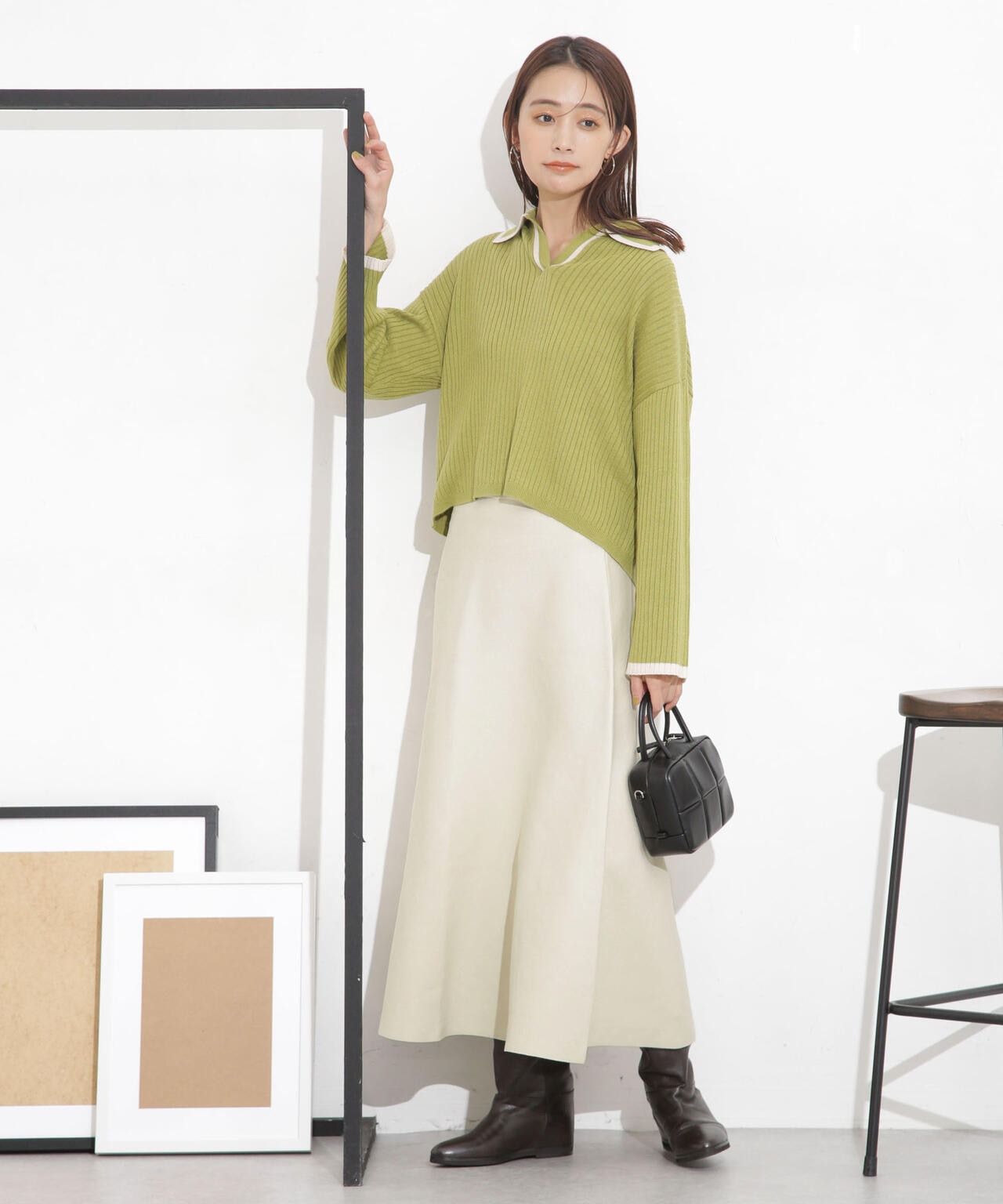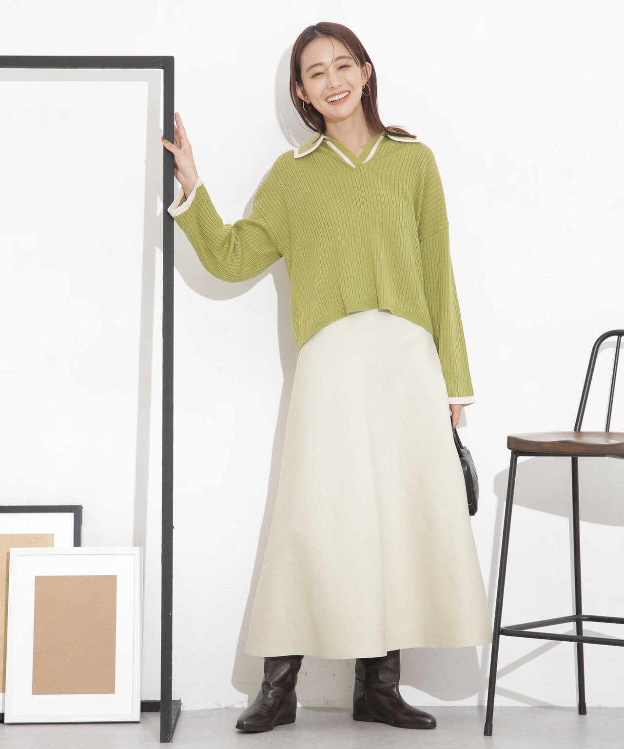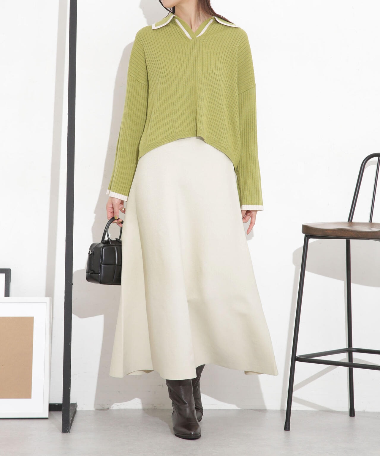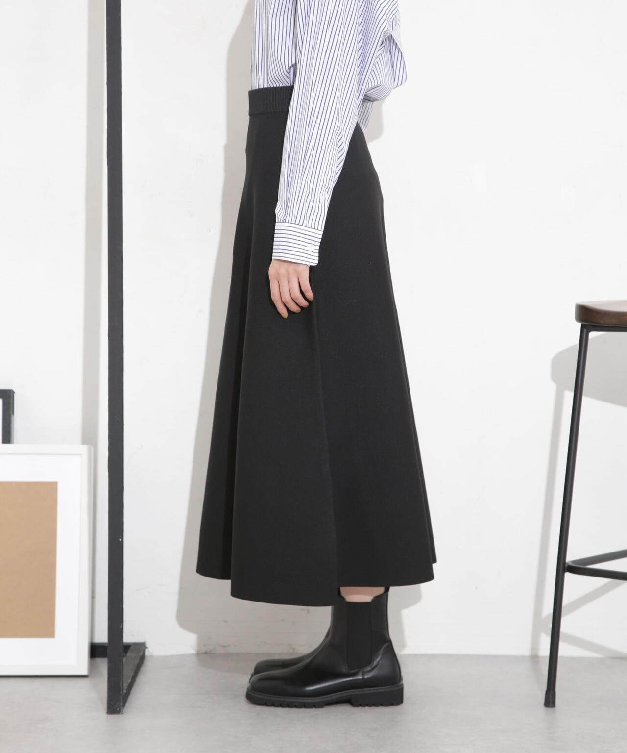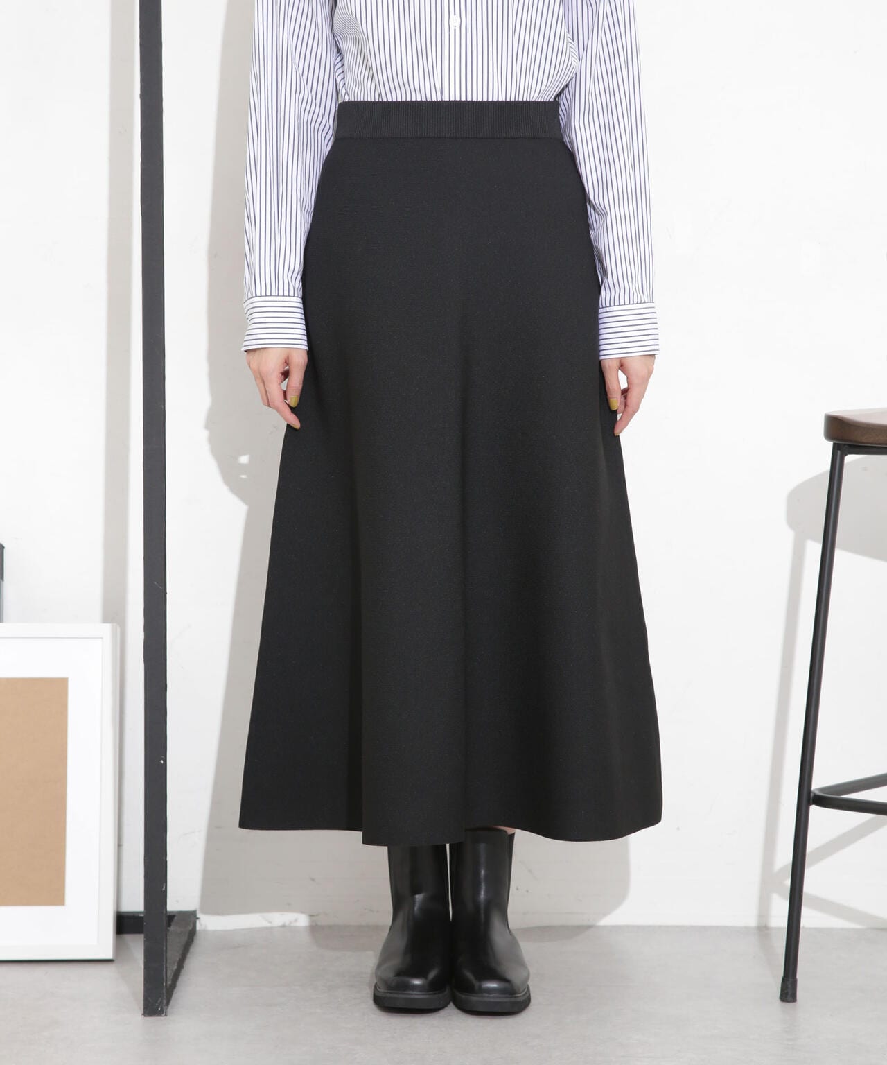 もっちりとした肌触りが魅力の総針編みニットスカート。スッキリとした腰回りや裾に向かってキレイに広がるフレアシルエットが大人な印象の一枚。キレイめな印象ながらニット素材なのでリラックス感のある着心地も魅力◎。同素材のスカートと合わせたセットアップスタイルもオススメです!
