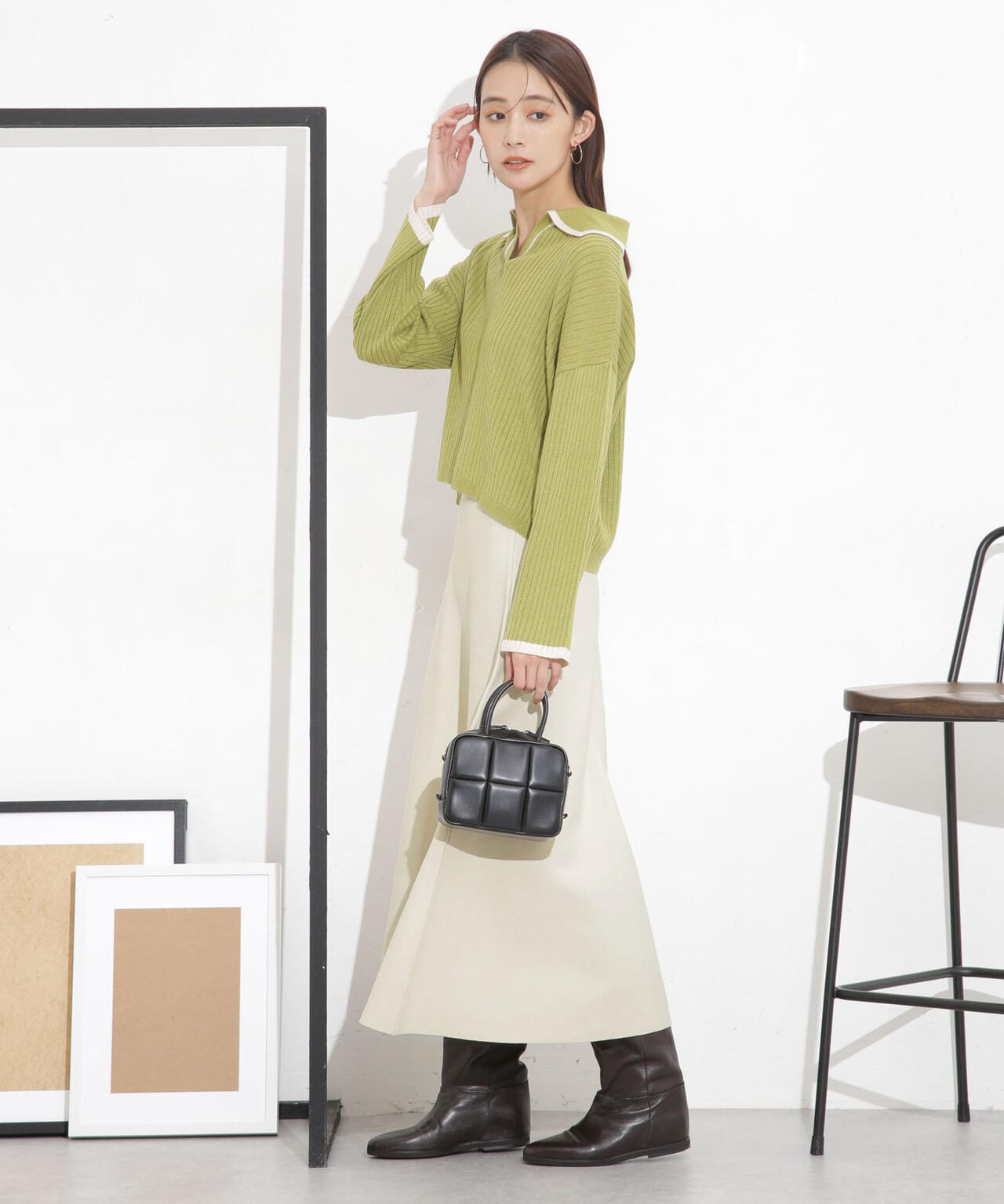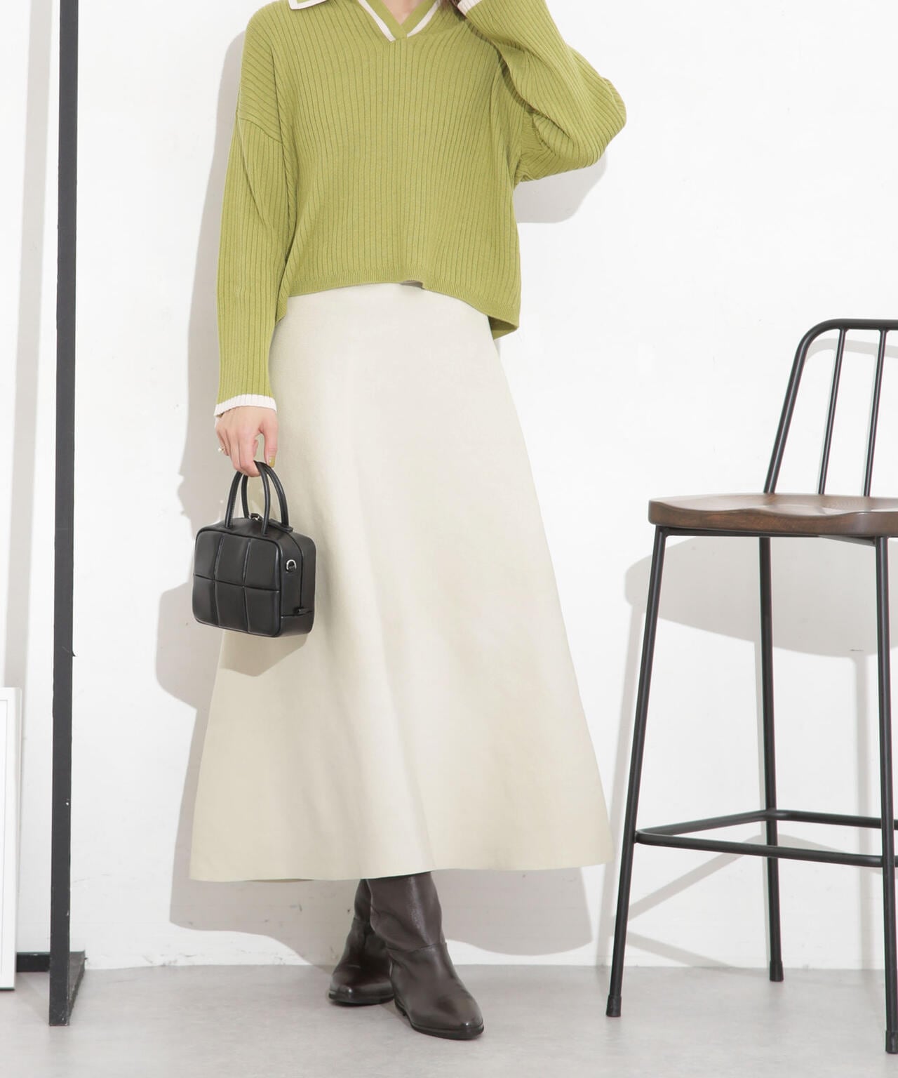 ・もっちりとした肌触りが魅力の総針編みニットスカート