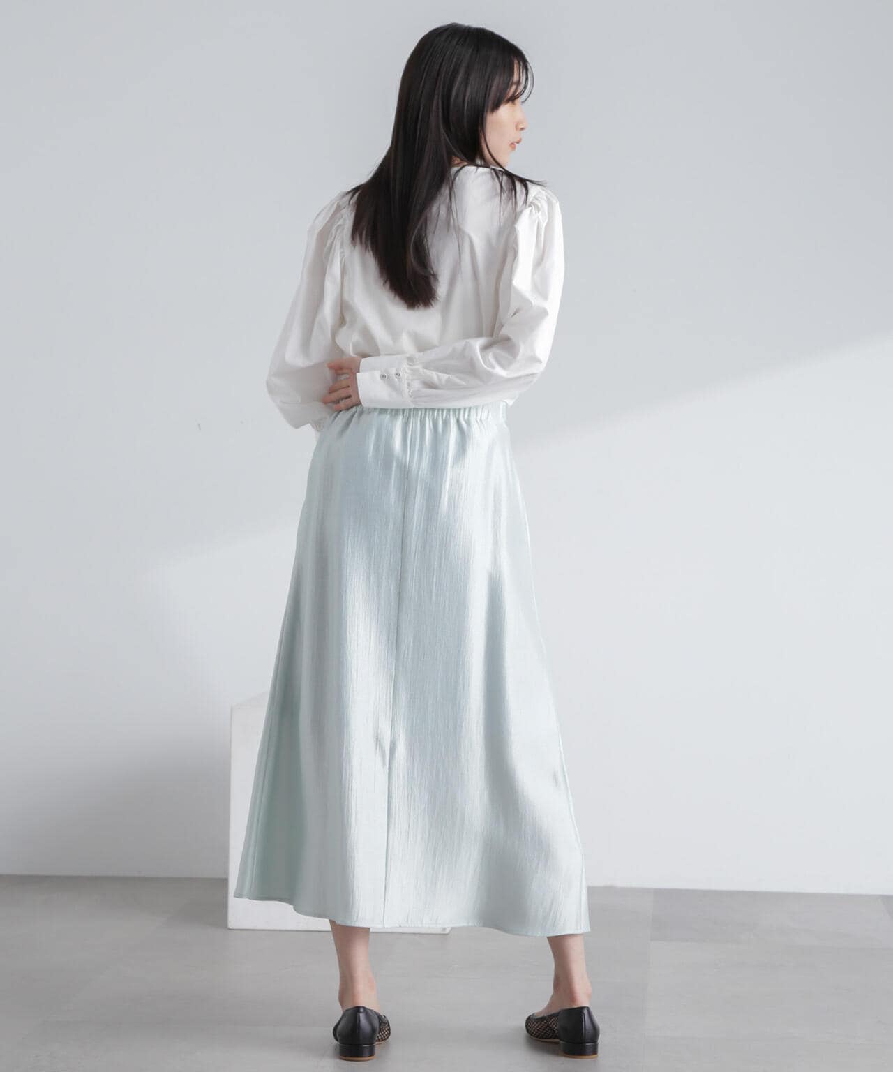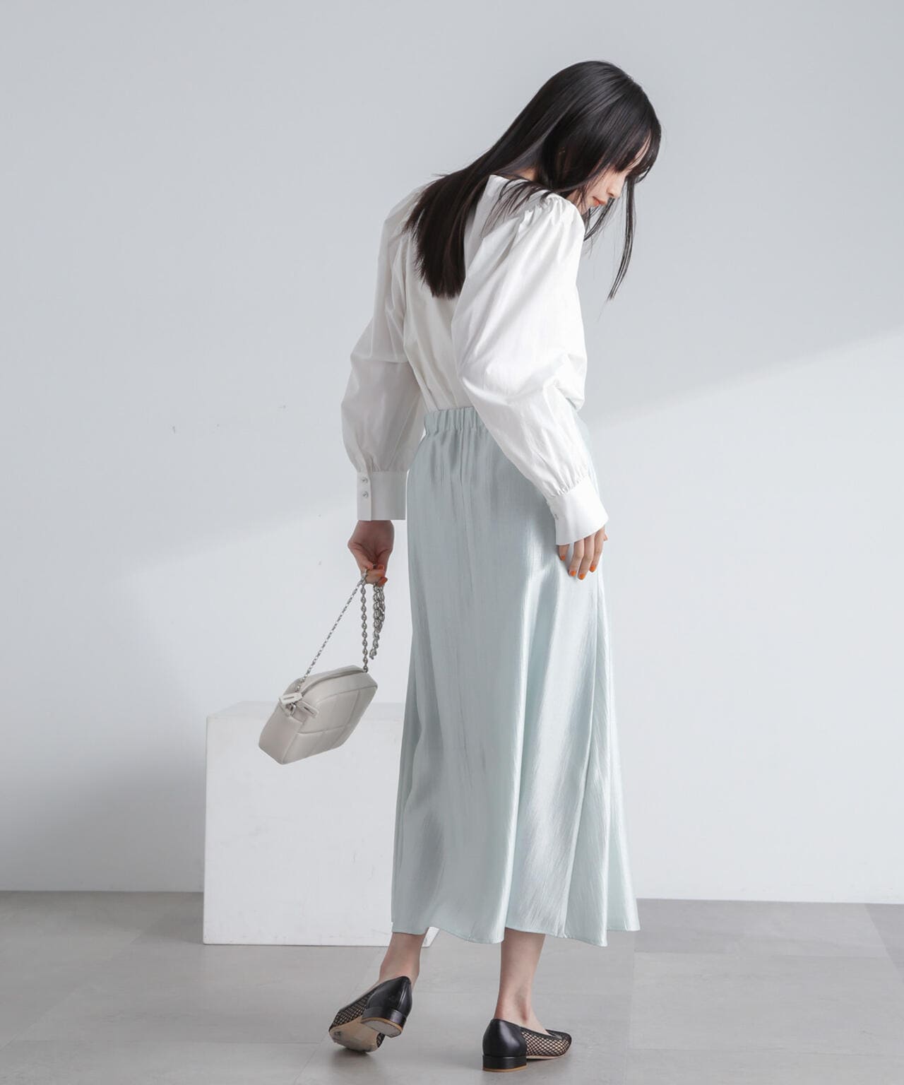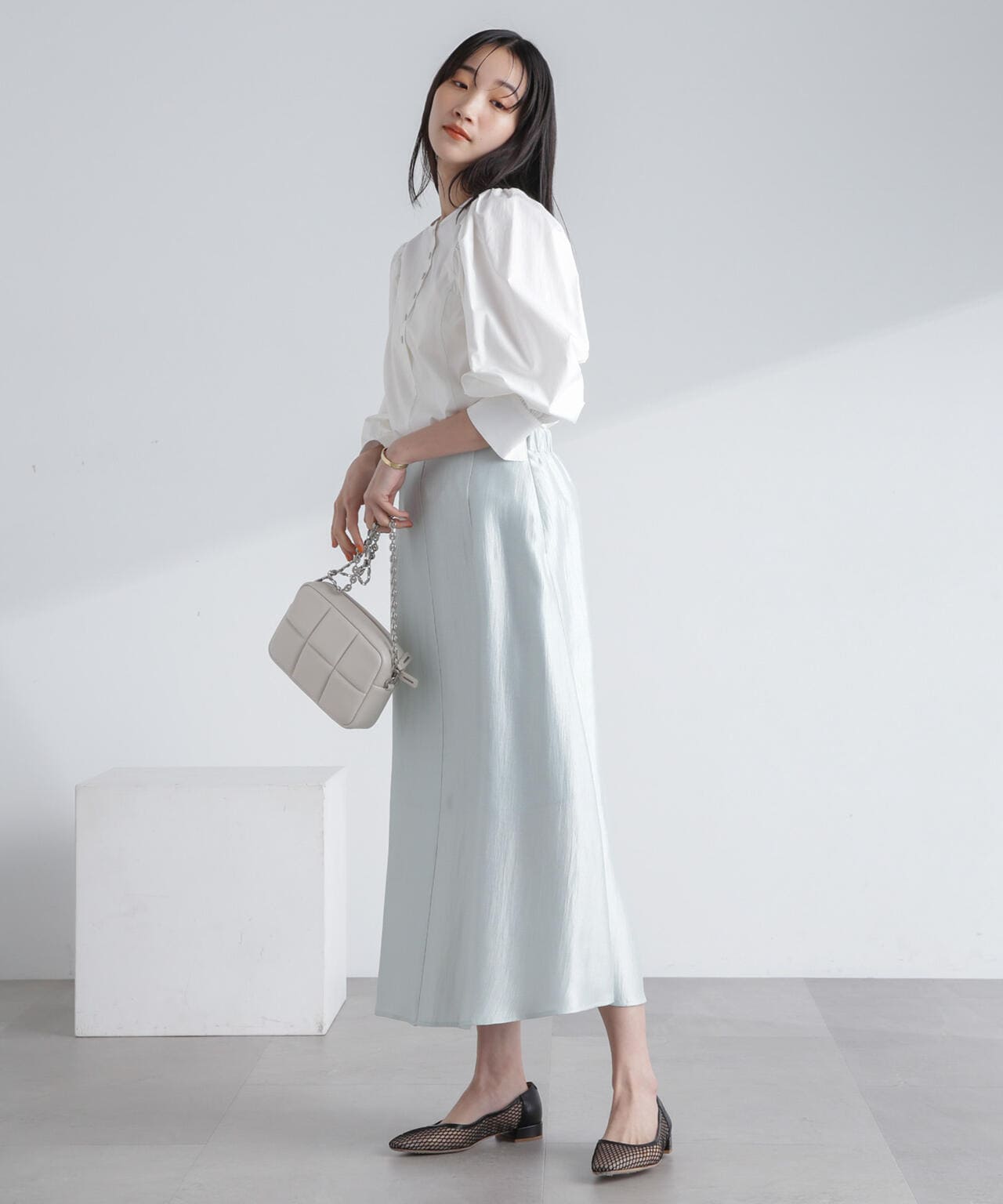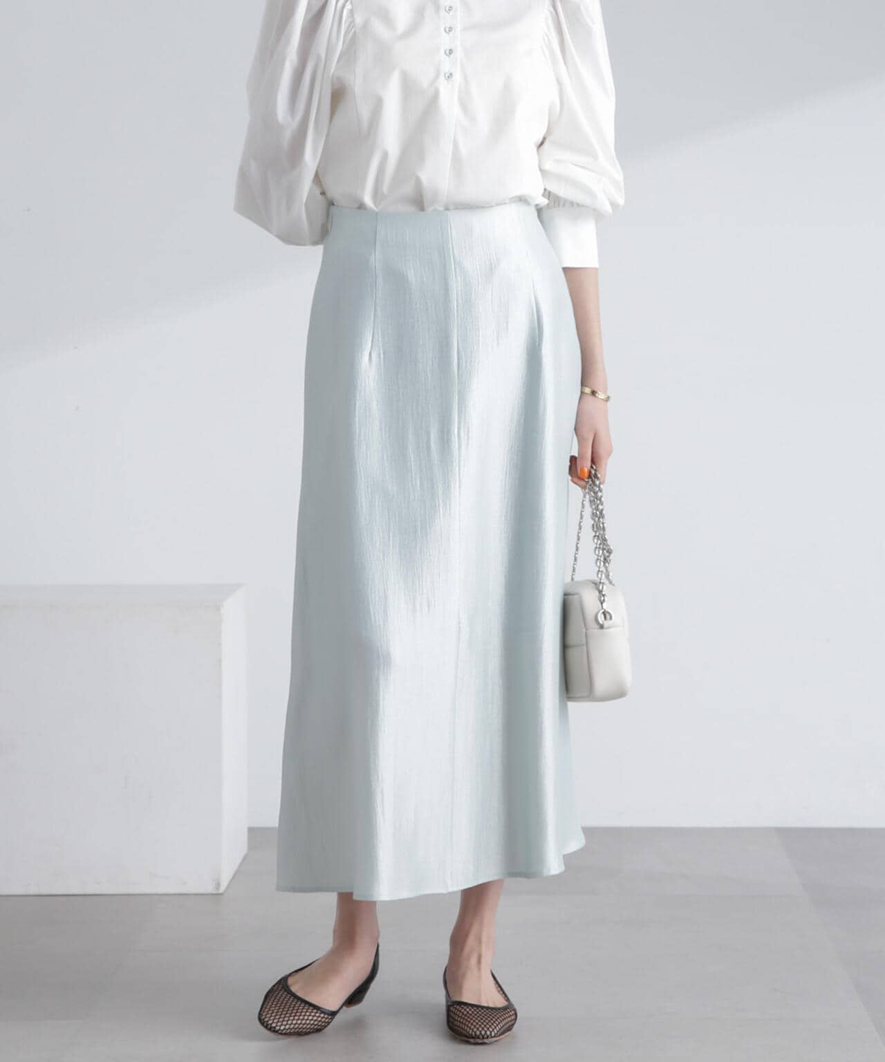 ・トレンド感あるシャイニー素材を品良く合わせられるロングスカート