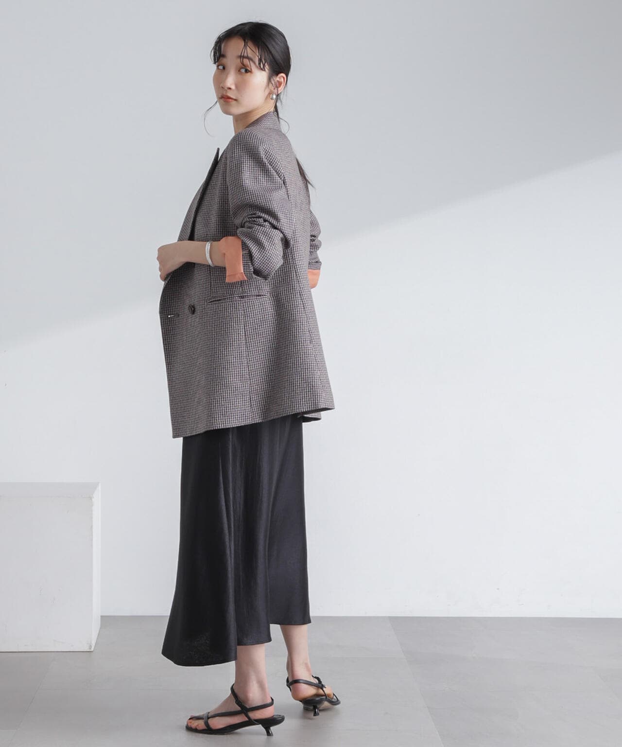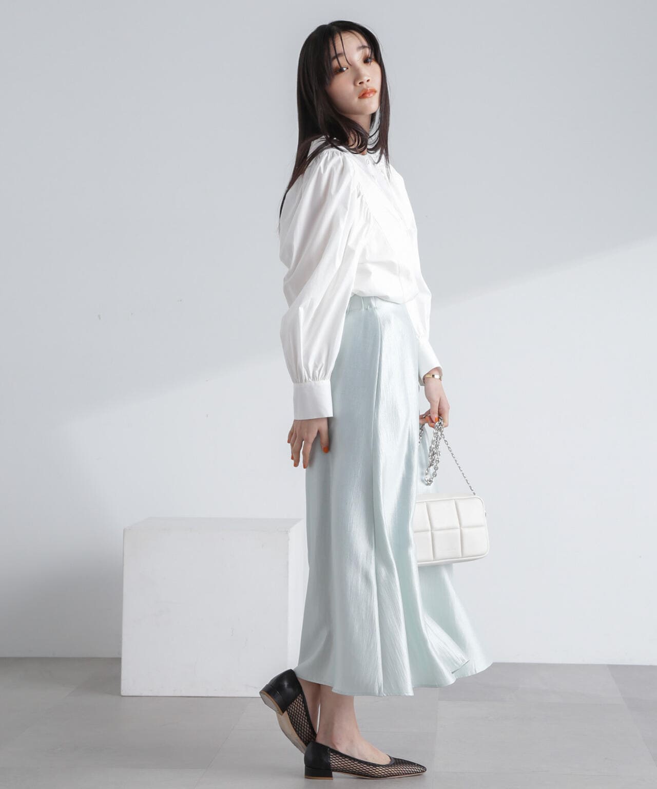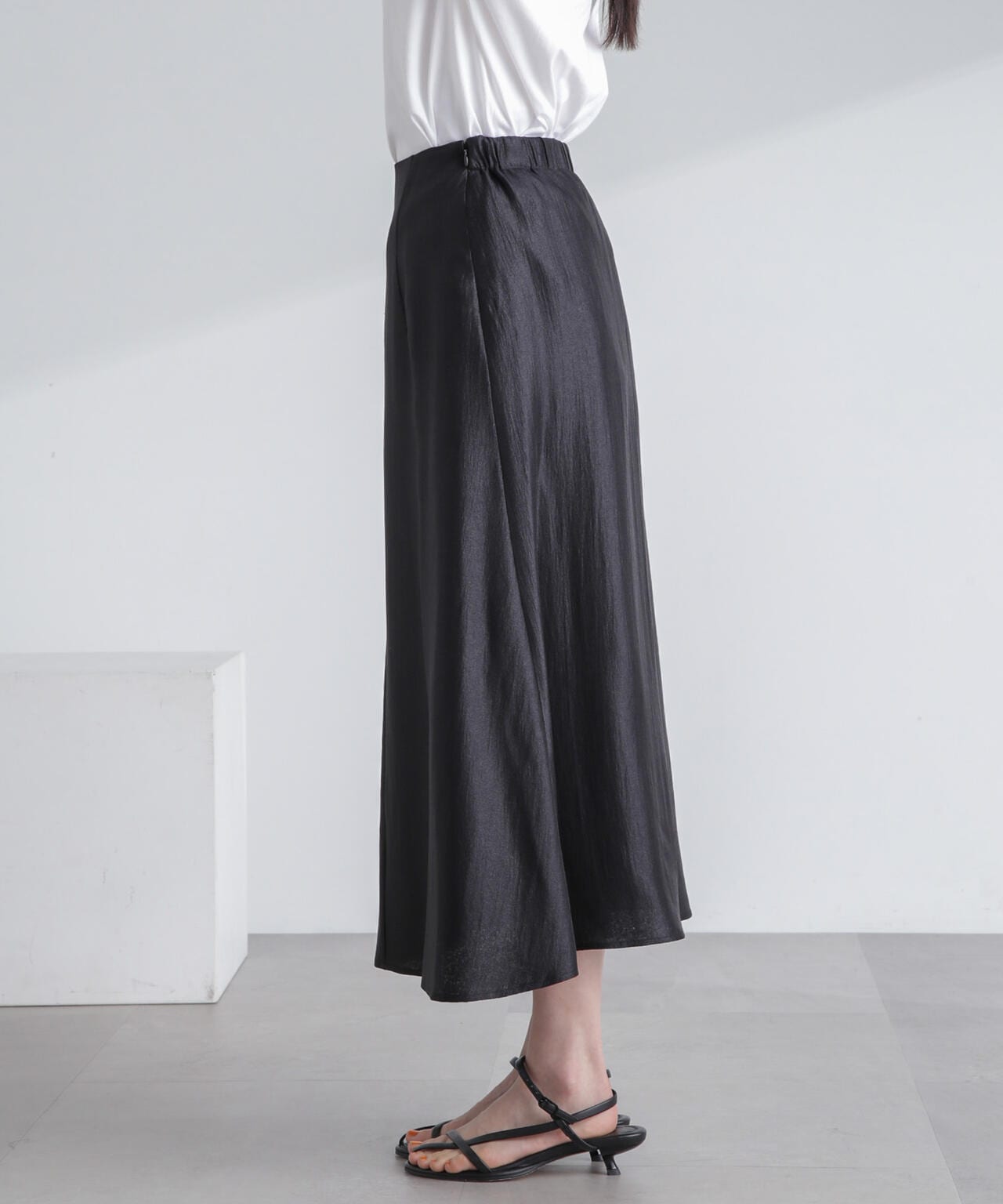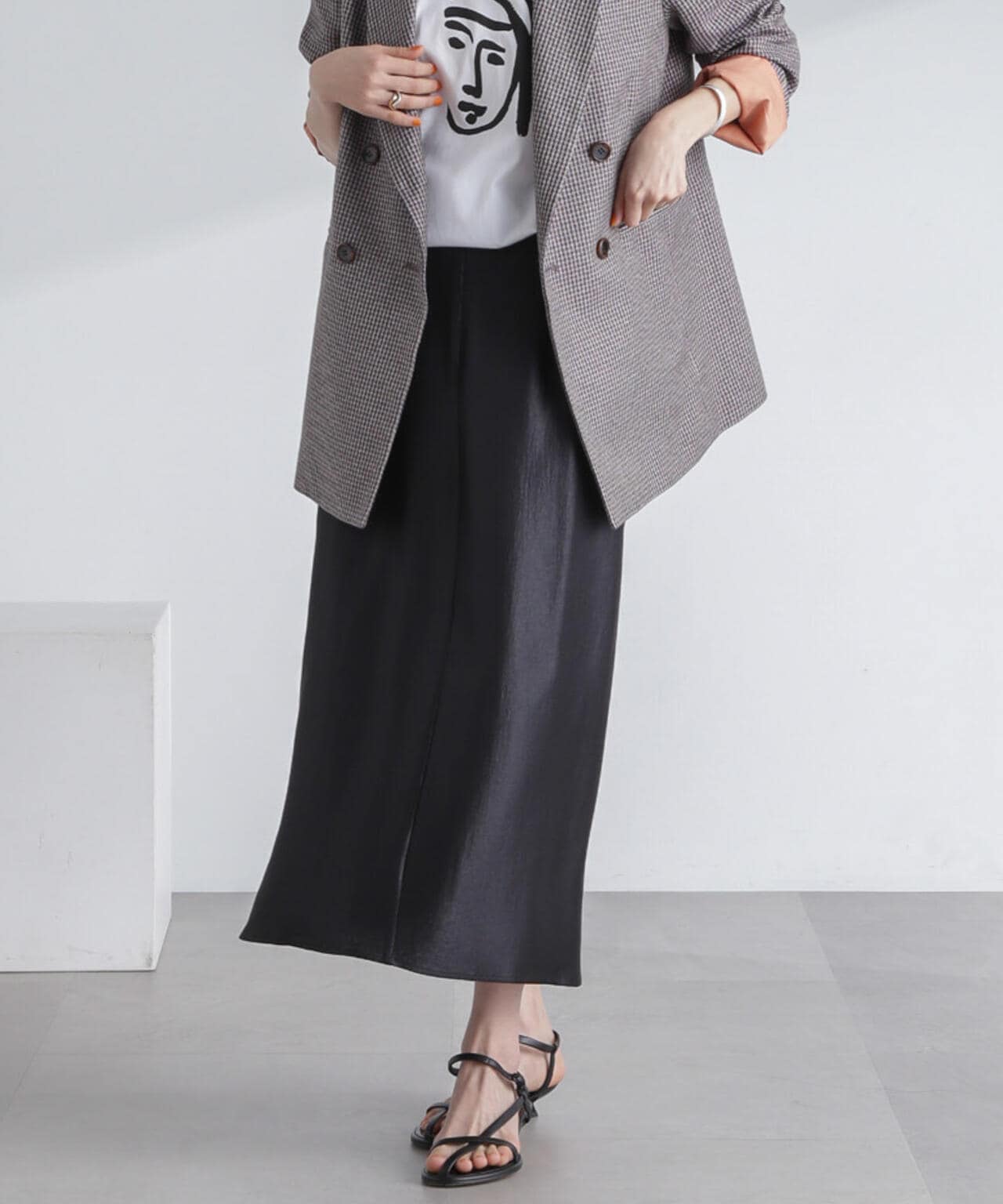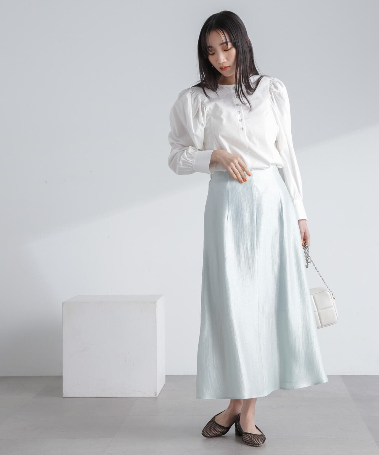 ・トレンド感あるシャイニー素材を品良く合わせられるロングスカート