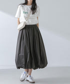 立体感のあるバルーンシルエットが、新鮮なスタイルに導くデザインスカート。裾にかけて丸みのあるデザインが華やかな印象ながらも、ボリューム感を抑えた広がり過ぎないシルエットで取り入れやすのが魅力。ウエストゴム仕様で着心地も良く、ワードローブに追加しておくと重宝します。
