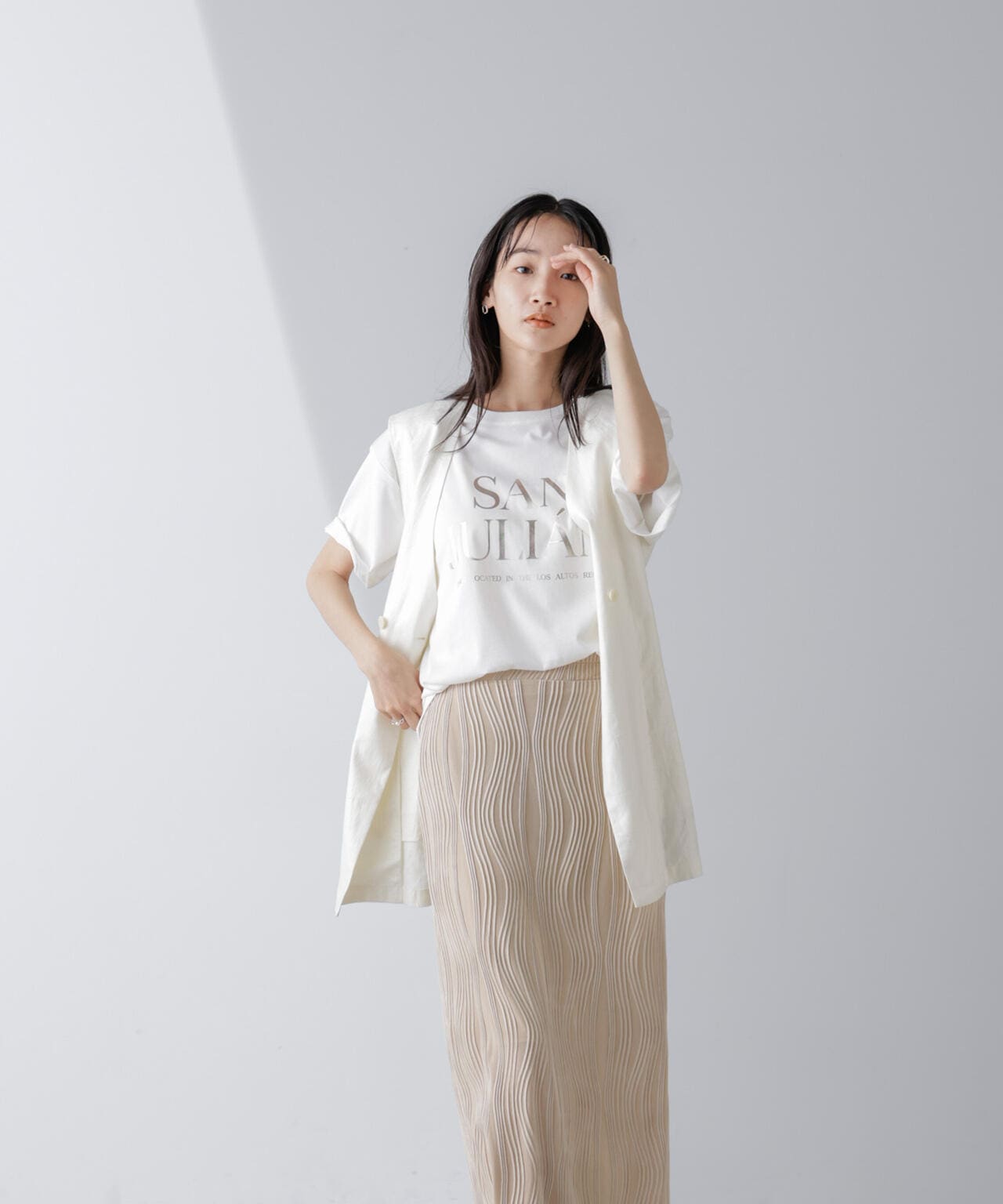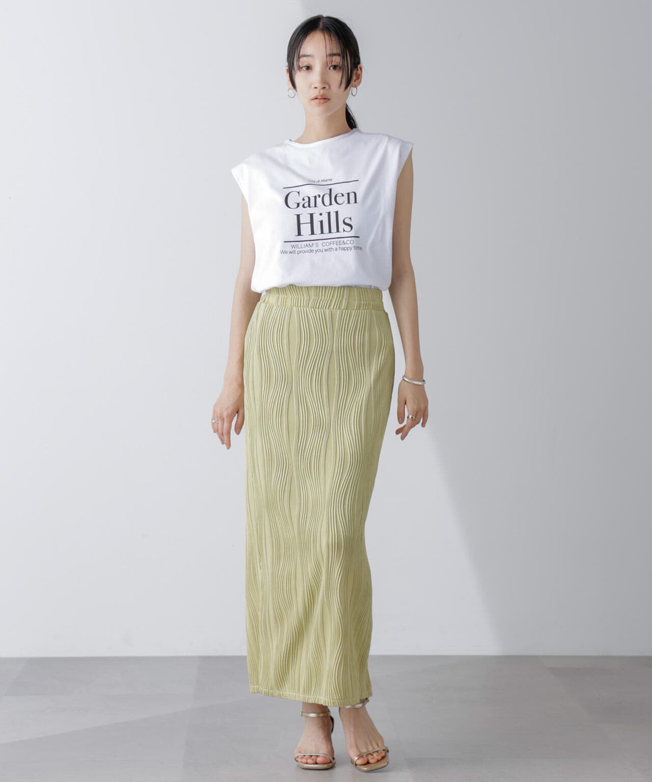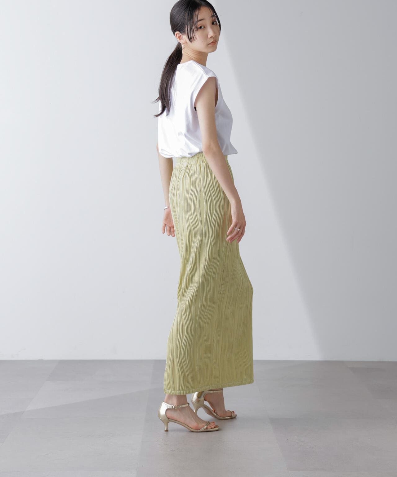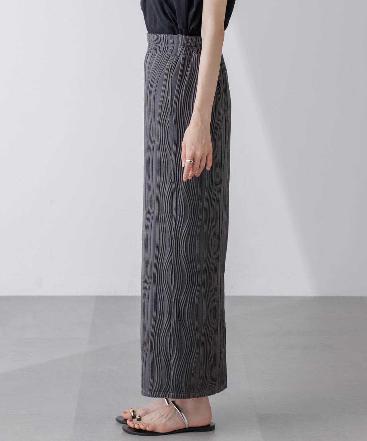 立体感のあるリップル素材が女性らしさを惹き出してくれるカットスカート。身体のラインを拾いすぎない絶妙なナローシルエットに、ウエストゴム仕様で履き心地も快適。コーディネートに取り入れやすいシンプルなデザインなので、合わせるトップス次第で様々なスタイリングが楽しめます。同素材のトップスと合わせたセットアップスタイルもオススメです。