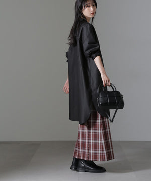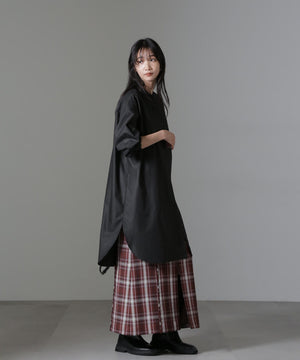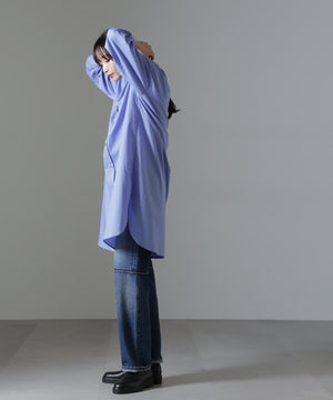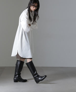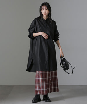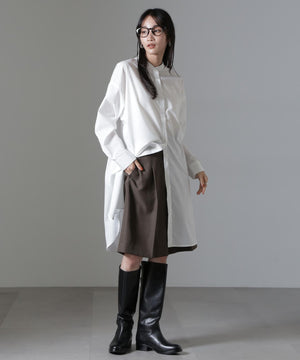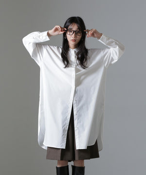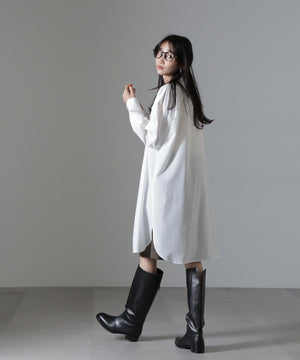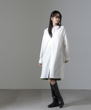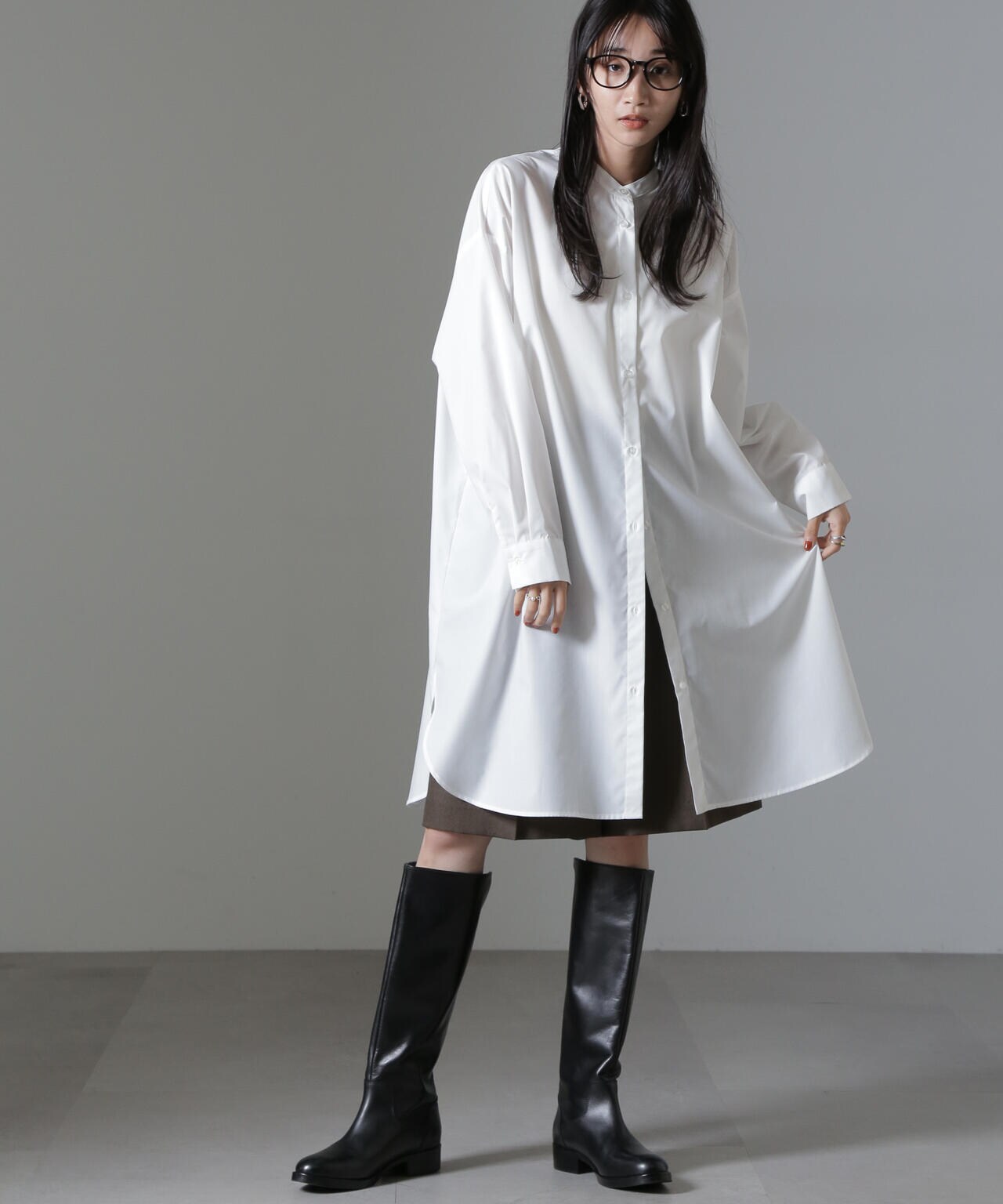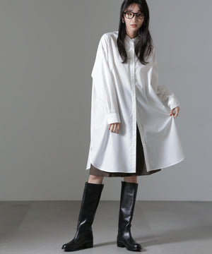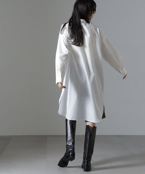 今年っぽいレイヤードスタイルを楽しめるシャツワンピース。暖かい時期は、前を開けて羽織としても活躍できるアイテム。オーバーサイズのシャツ感覚で、いろいろな着こなしをシーズ問わず着まわせます。
