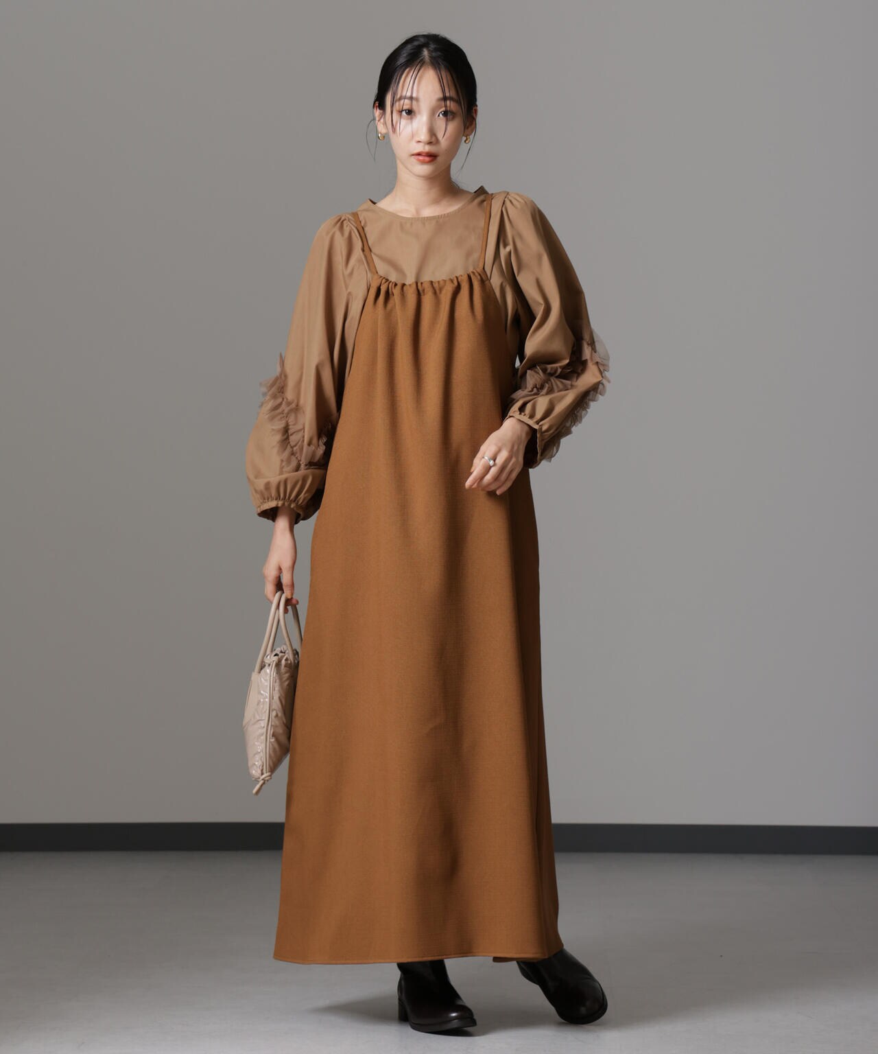 ・首周りのすっきりしたデザインが甘すぎず、スタイリングで大人っぽく着用可能◎