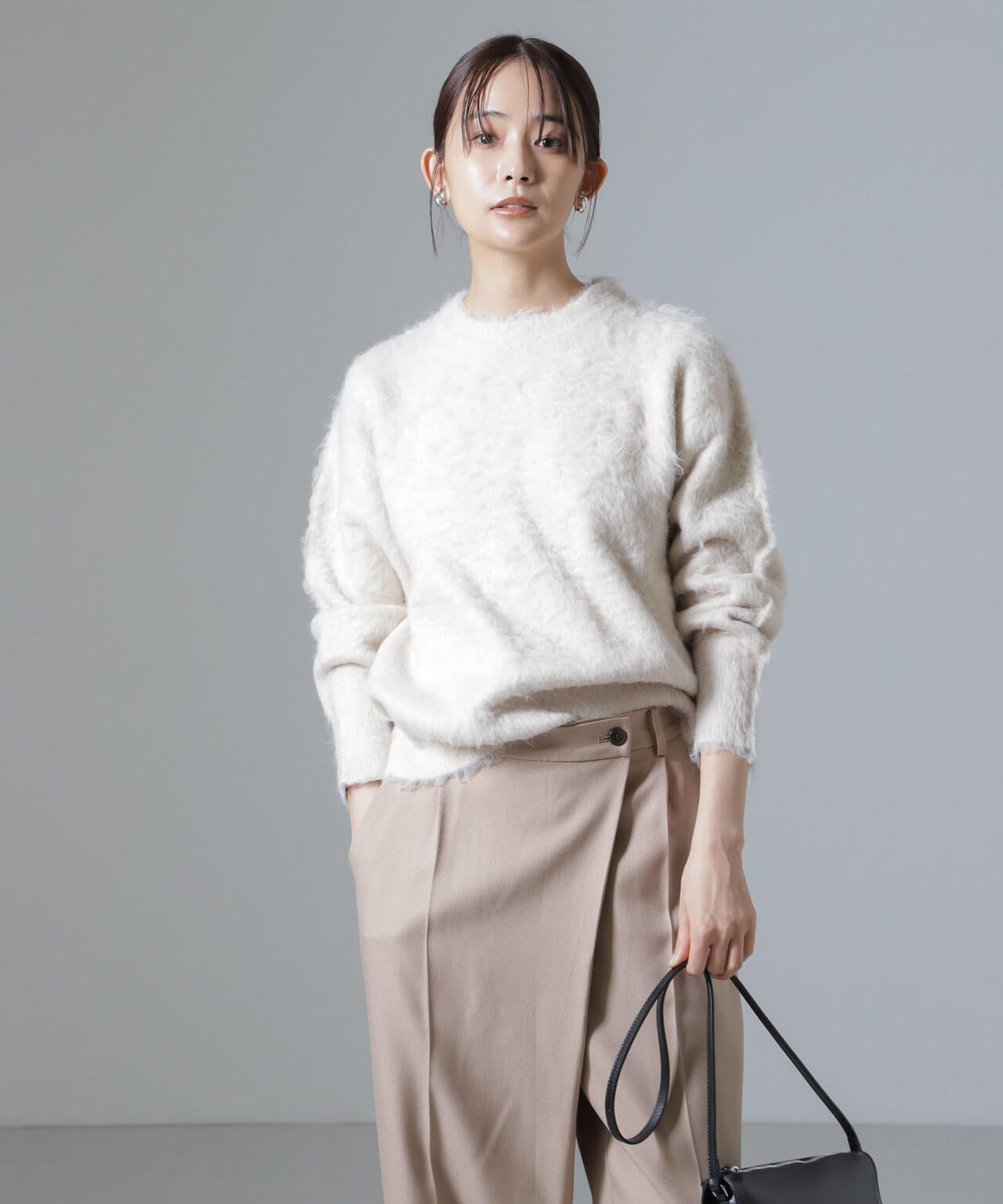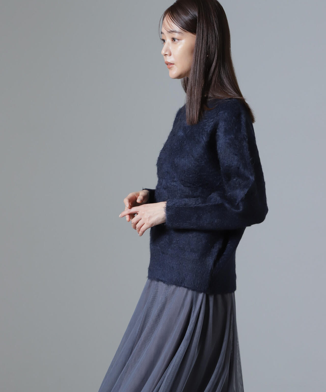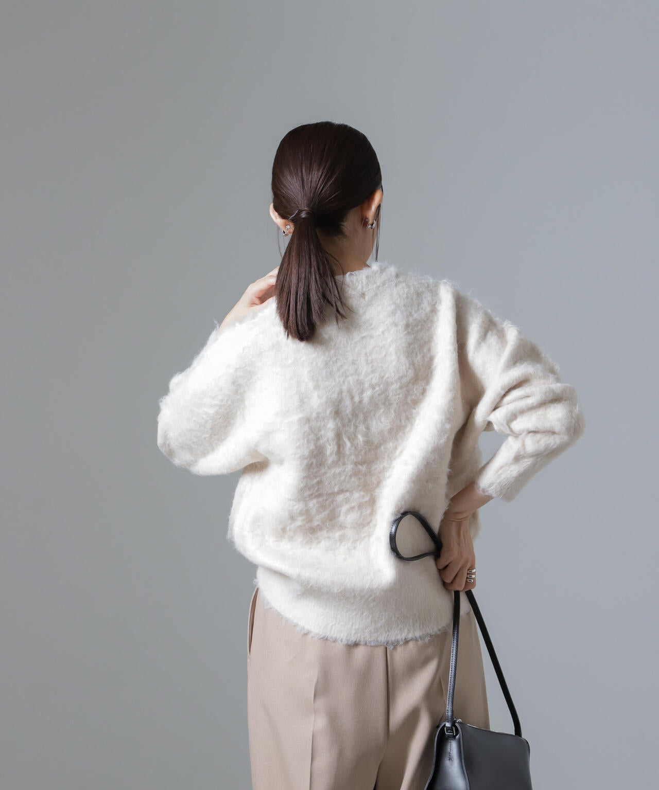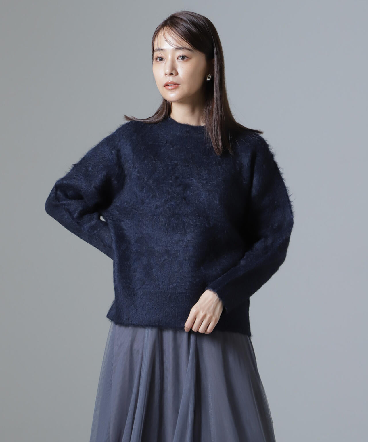 トレンドのシャギー素材でフェミニンな印象のニットプルオーバー。長めの毛足は、ブラシや手で逆毛を立てるように撫でると毛足がきれいに立ちます◎ふわふわと毛足が長いのが特徴で、暖かく心地の良い一枚です!