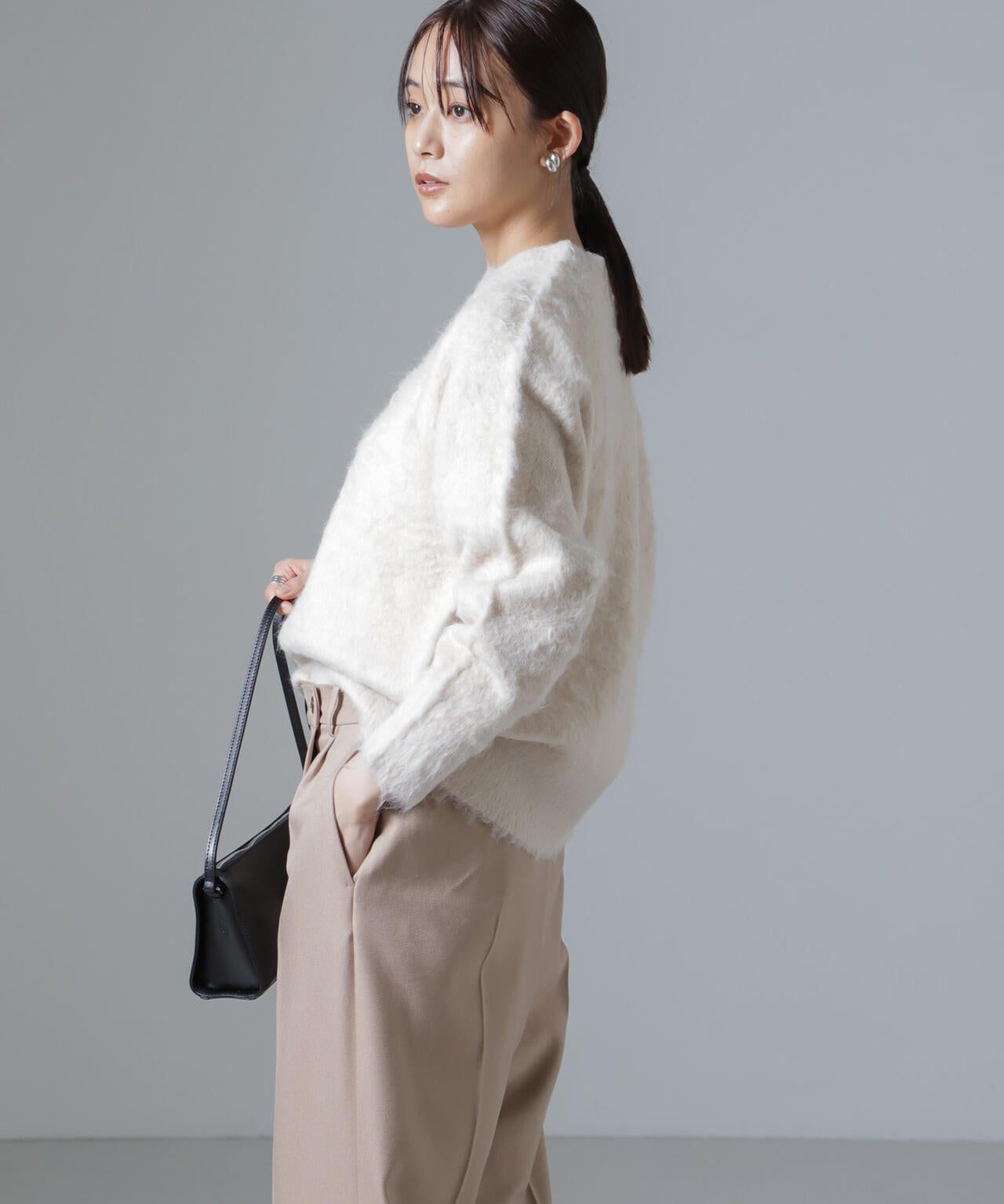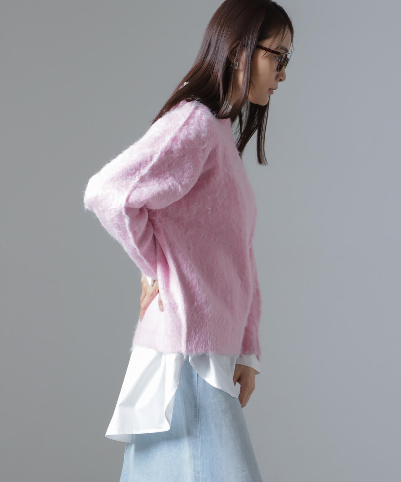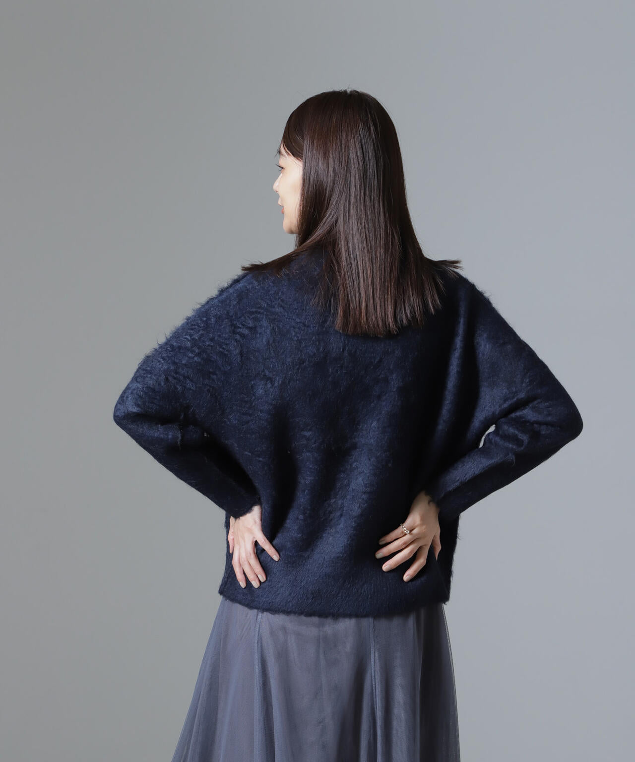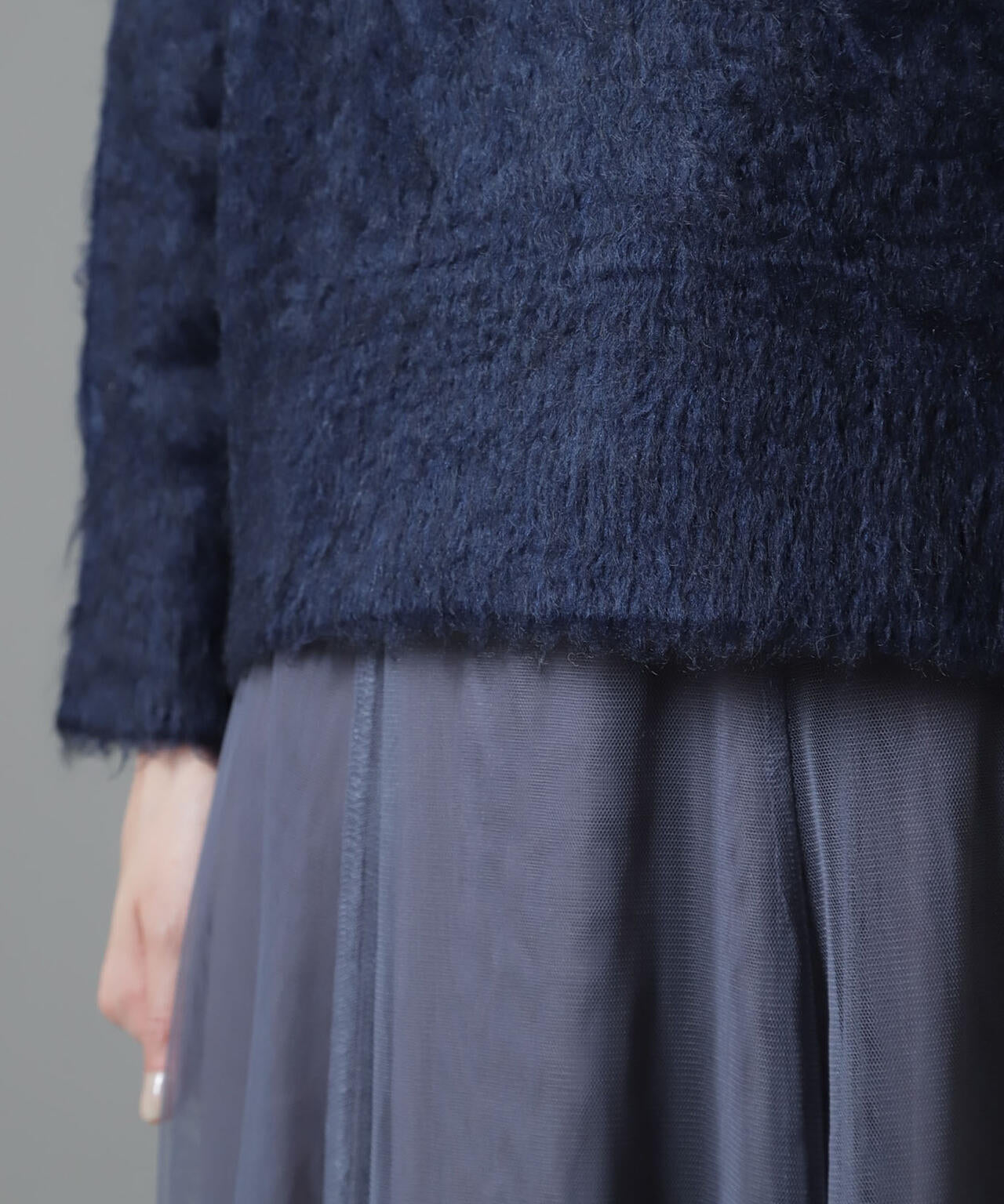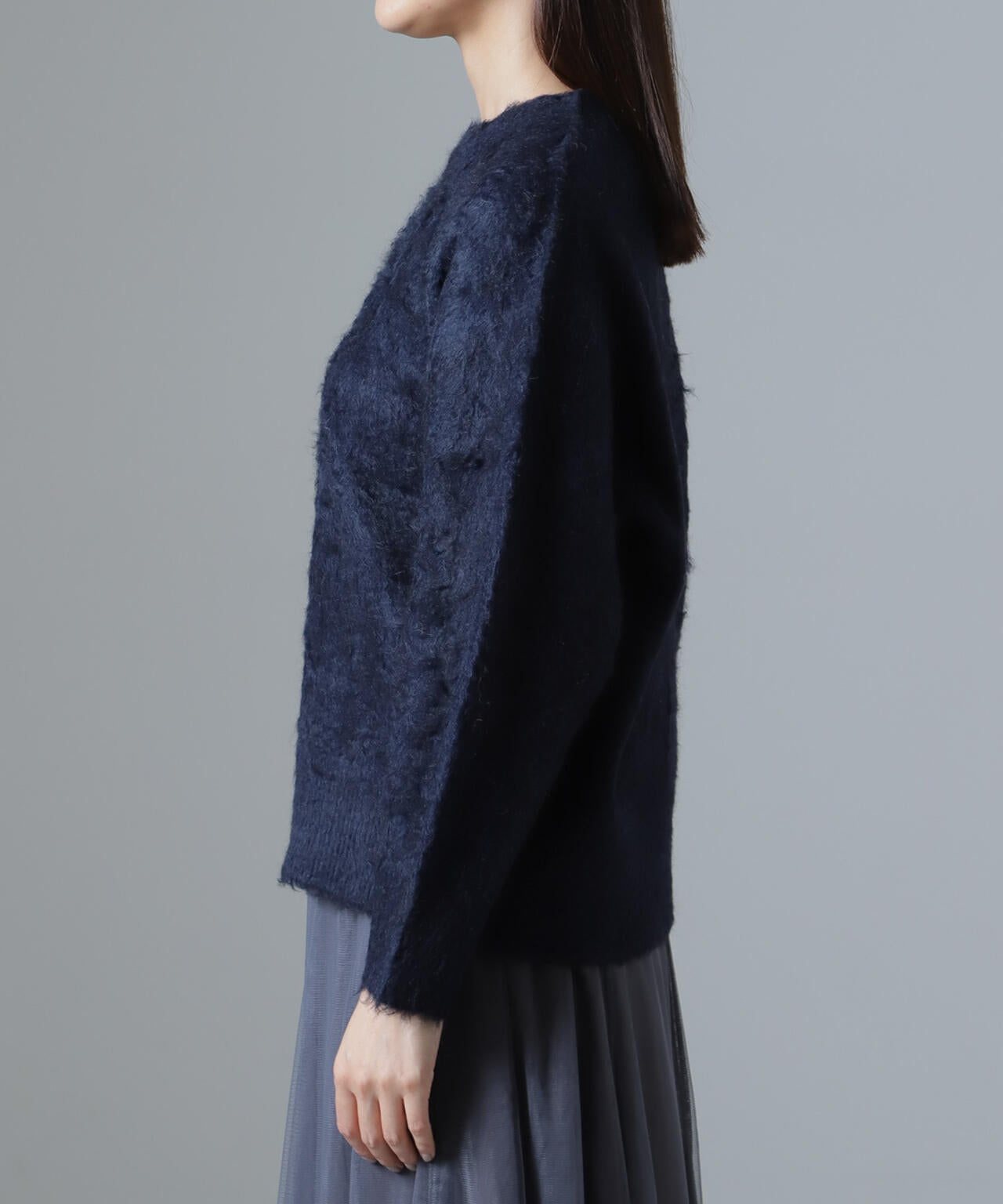 ・6734222329 シャギークルーネックニットカーディガン