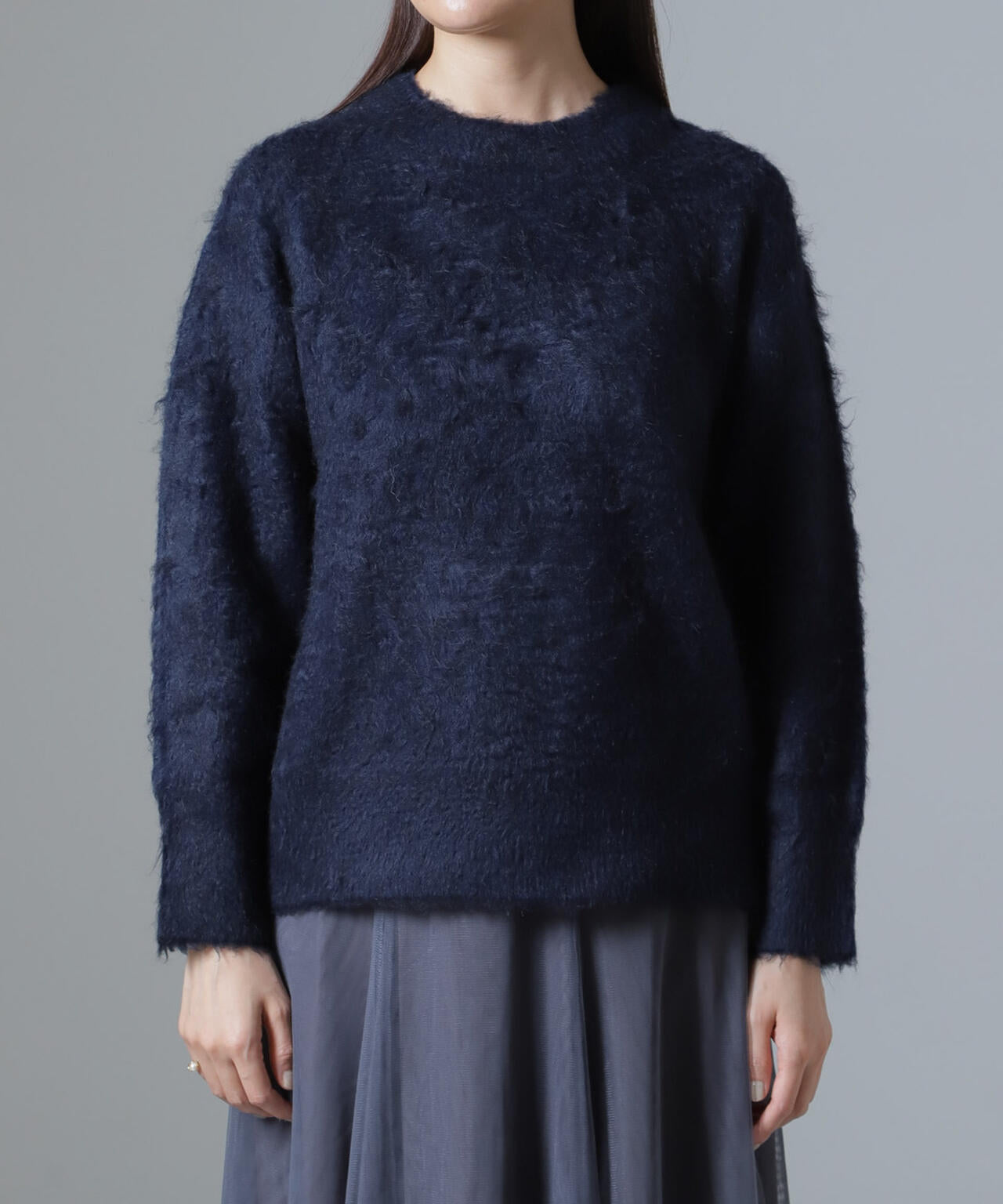 シャギークルーネックニットプルオーバー