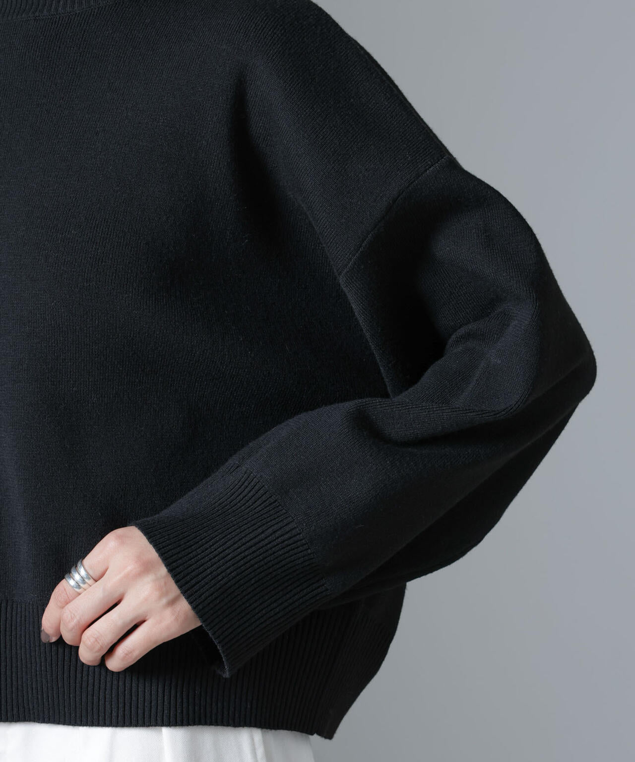 通勤シーンからカジュアルコーデまで幅広く活躍する、万能なニットトップス。総針なので程良いハリ感と立体感があり、着心地の良さも魅力です。