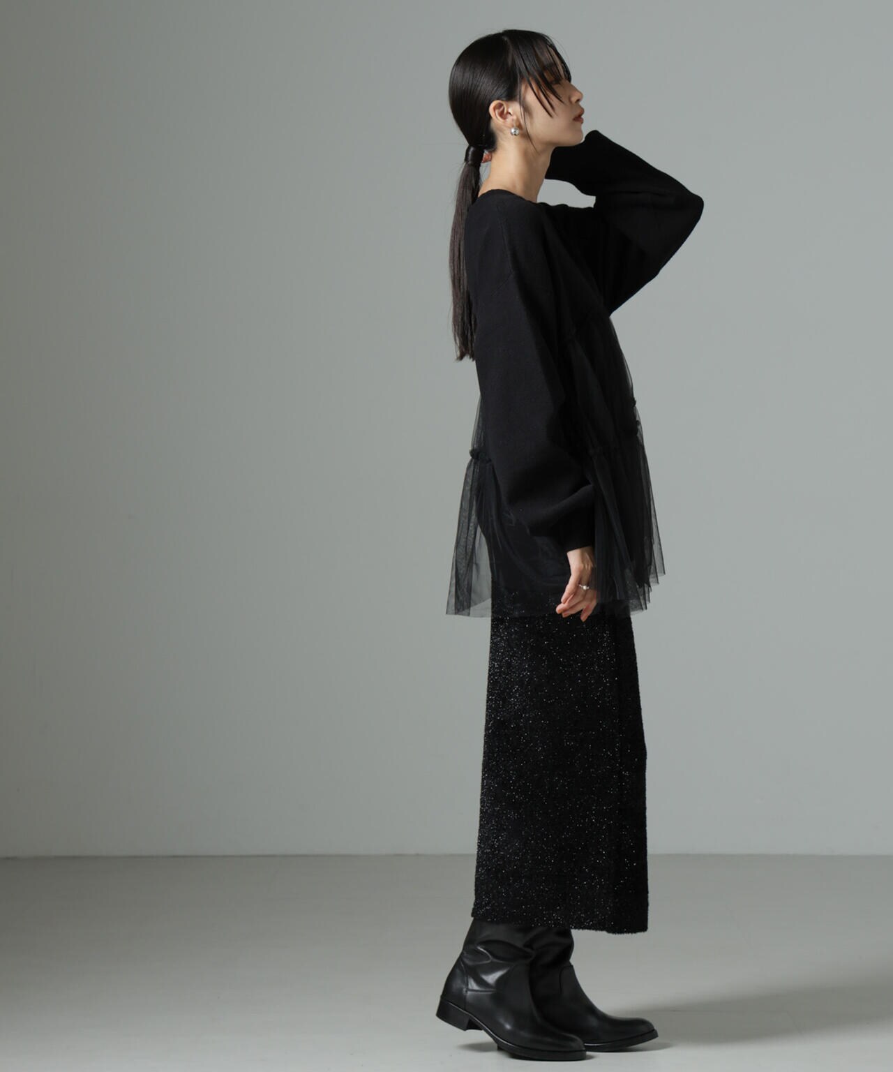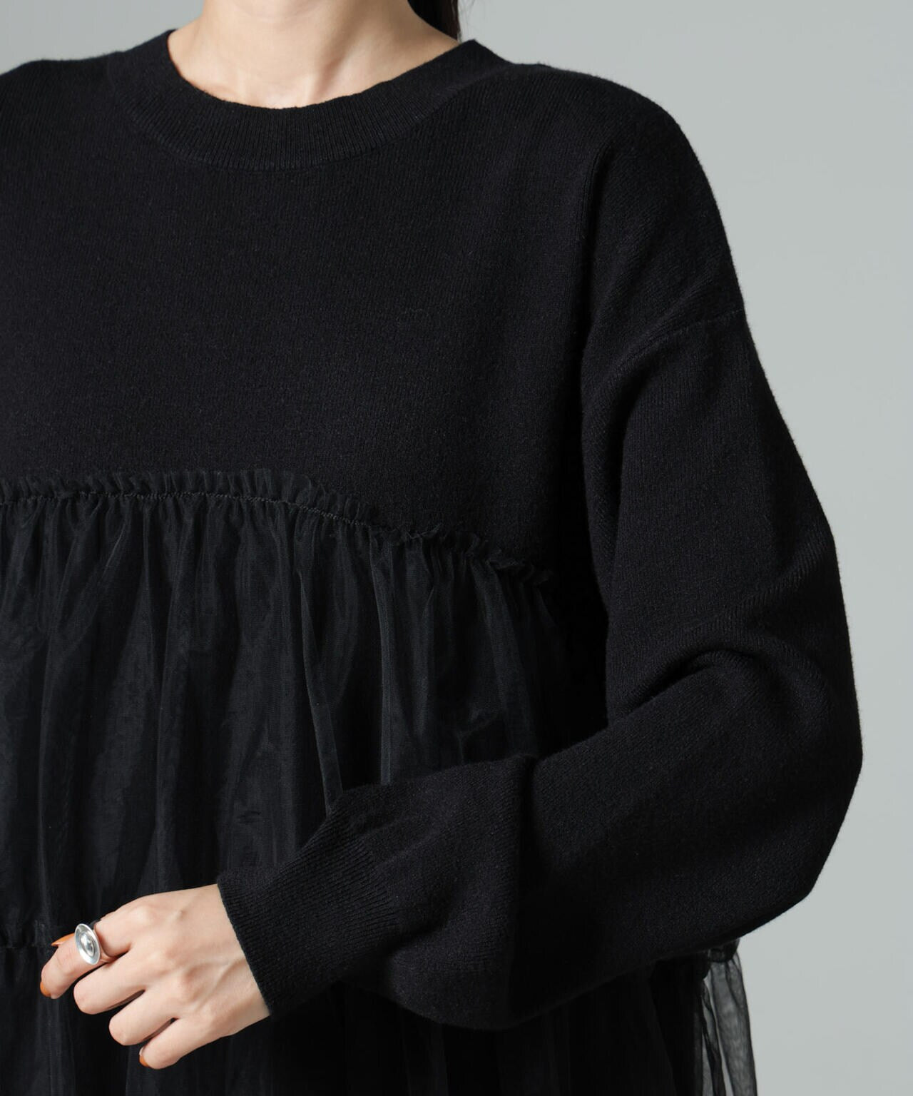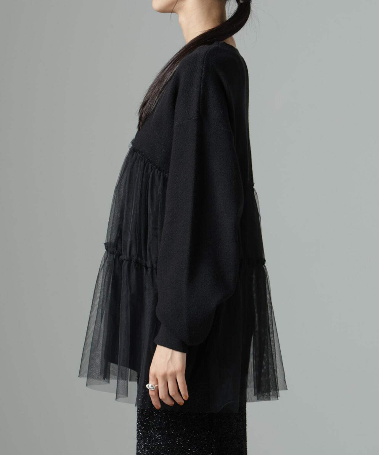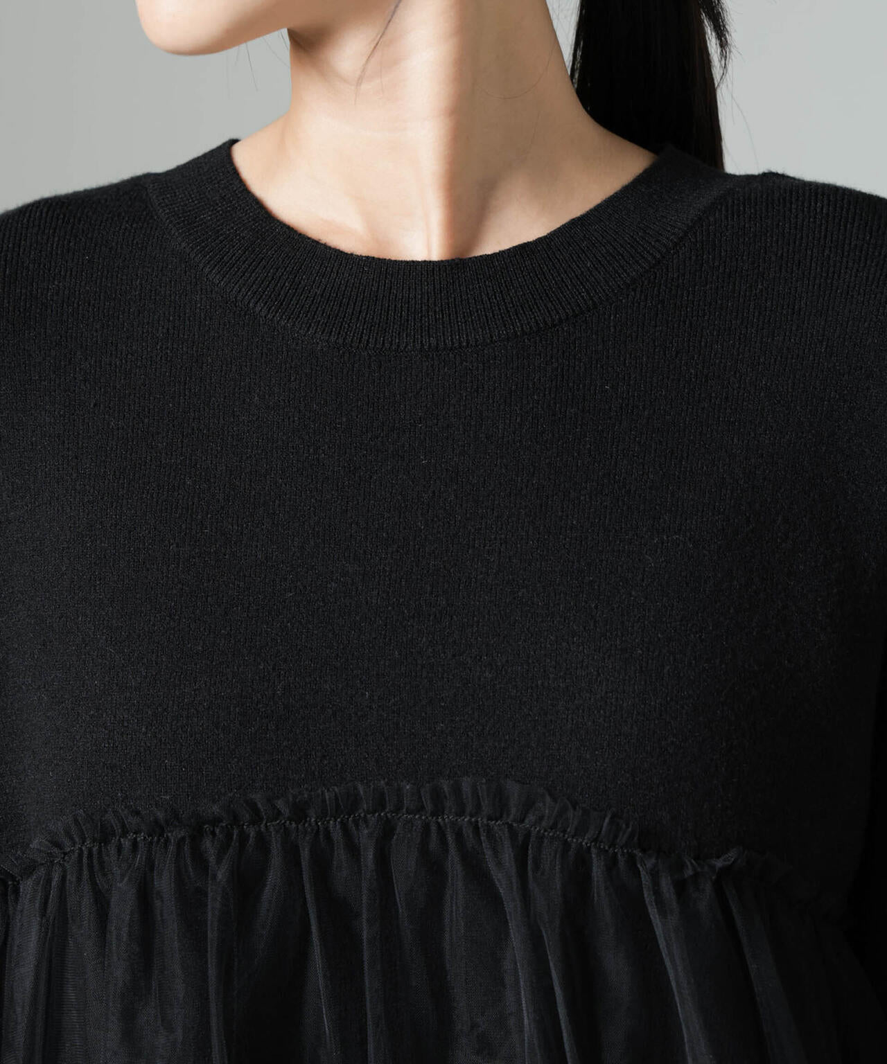 (ニット部分)レーヨン48% ポリエステル33% ナイロン19%(チュール部分)ナイロン100%