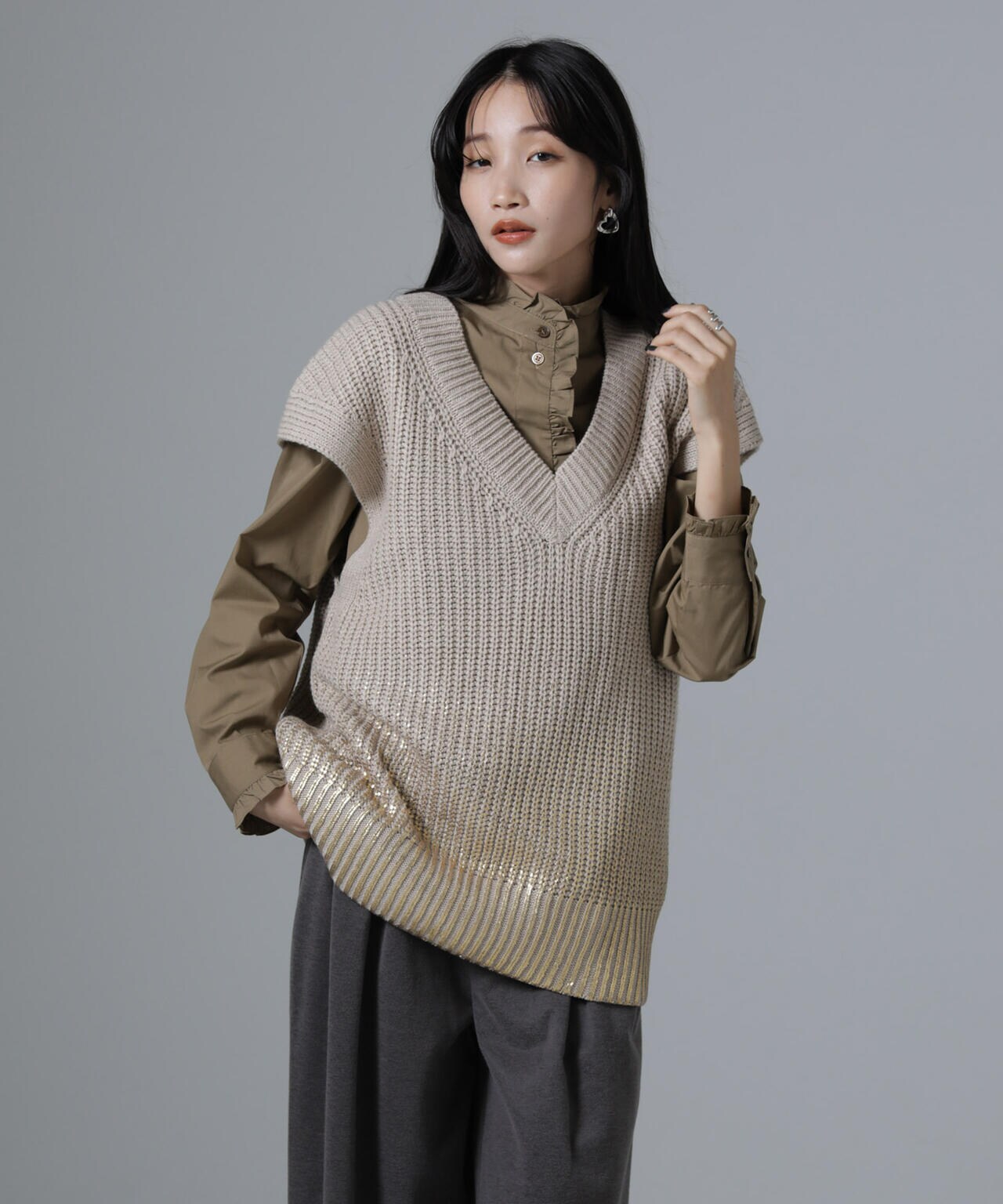・重ねるだけでトレンド感が加速なニットベスト