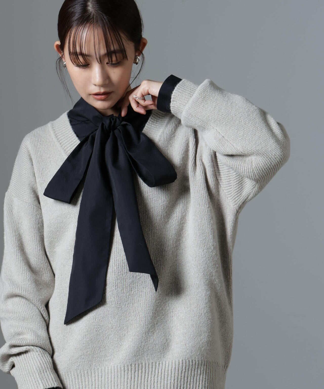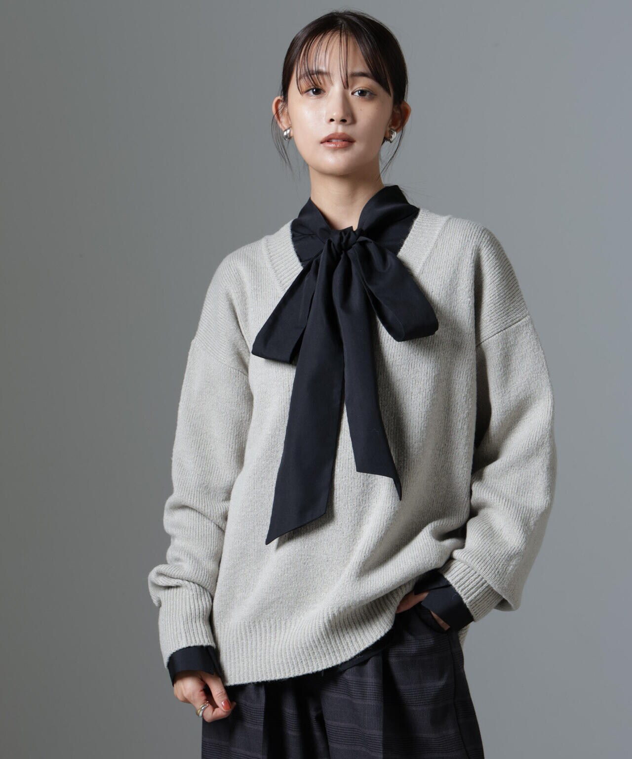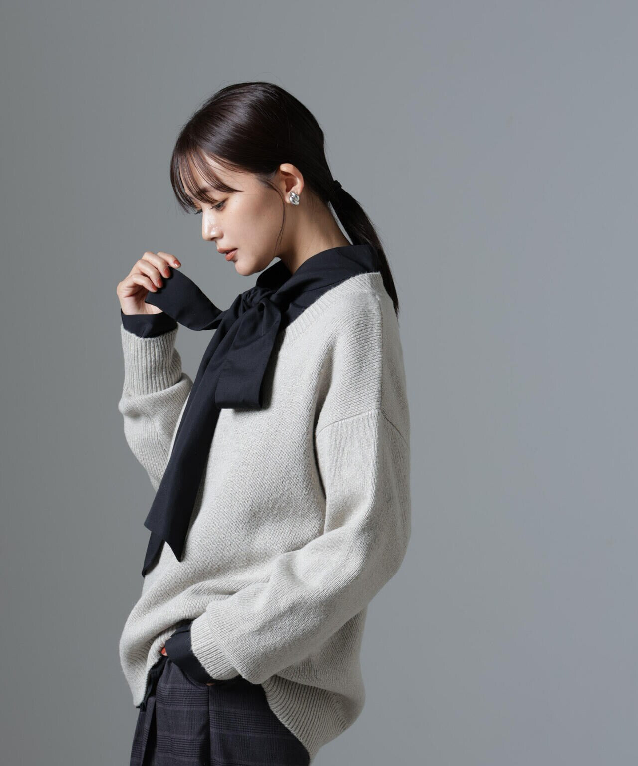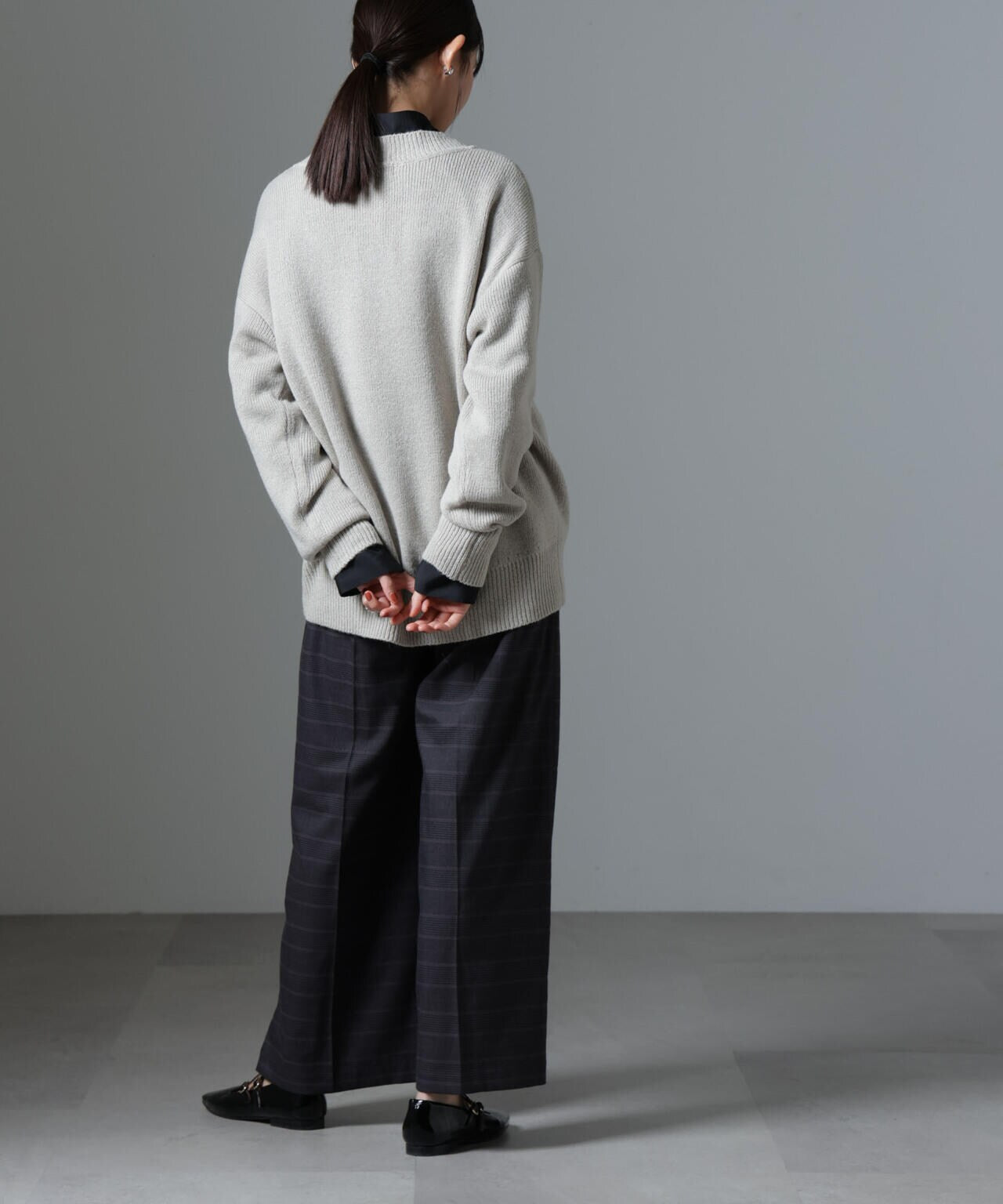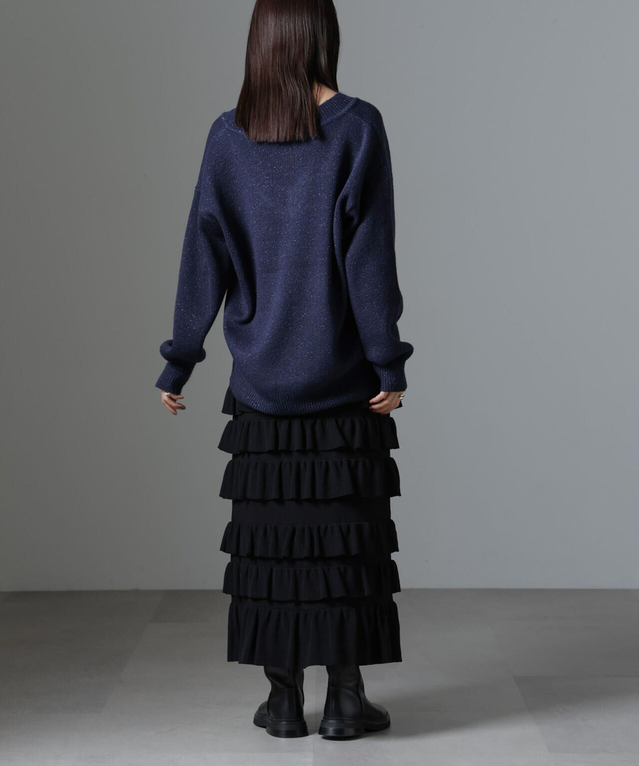 上品なラメがトレンド感を惹きだしてきれるワイドニット。適度なゆとりのあるリラックス感あるシルエットで、Vネックが抜け感がありヘルシーな印象に◎。一枚着でも大人っぽい雰囲気でサマになるアイテムです。