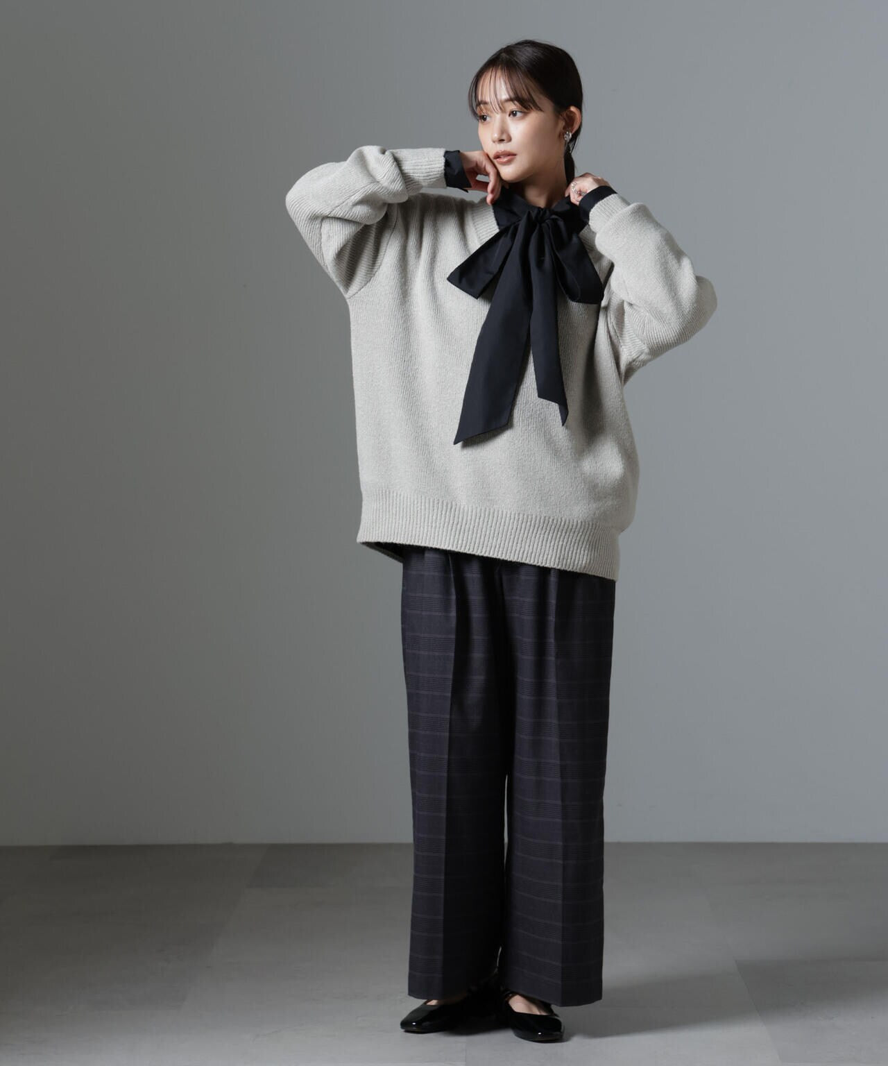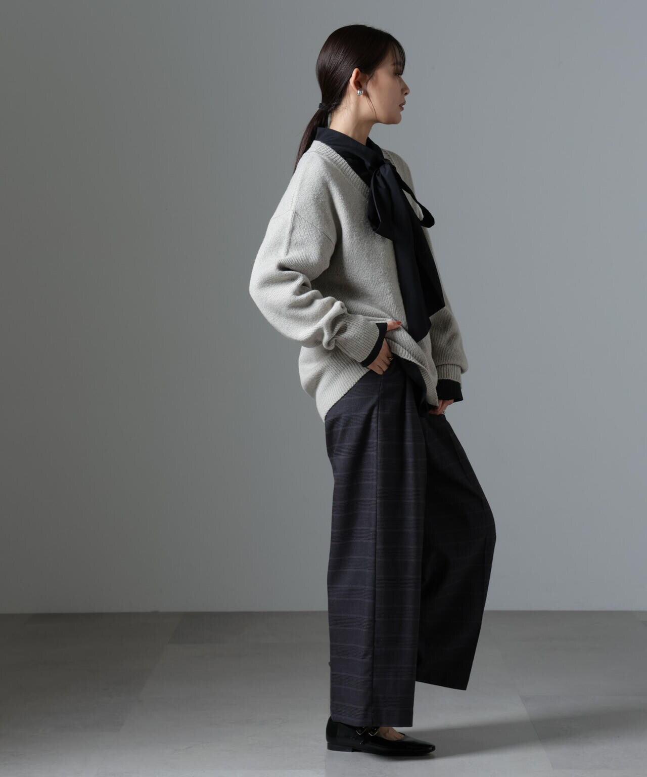 ・スラックスやワイドパンツ、タイトスカートなどシンプルなボトムスと合わせたスタイリングがおすすめ
