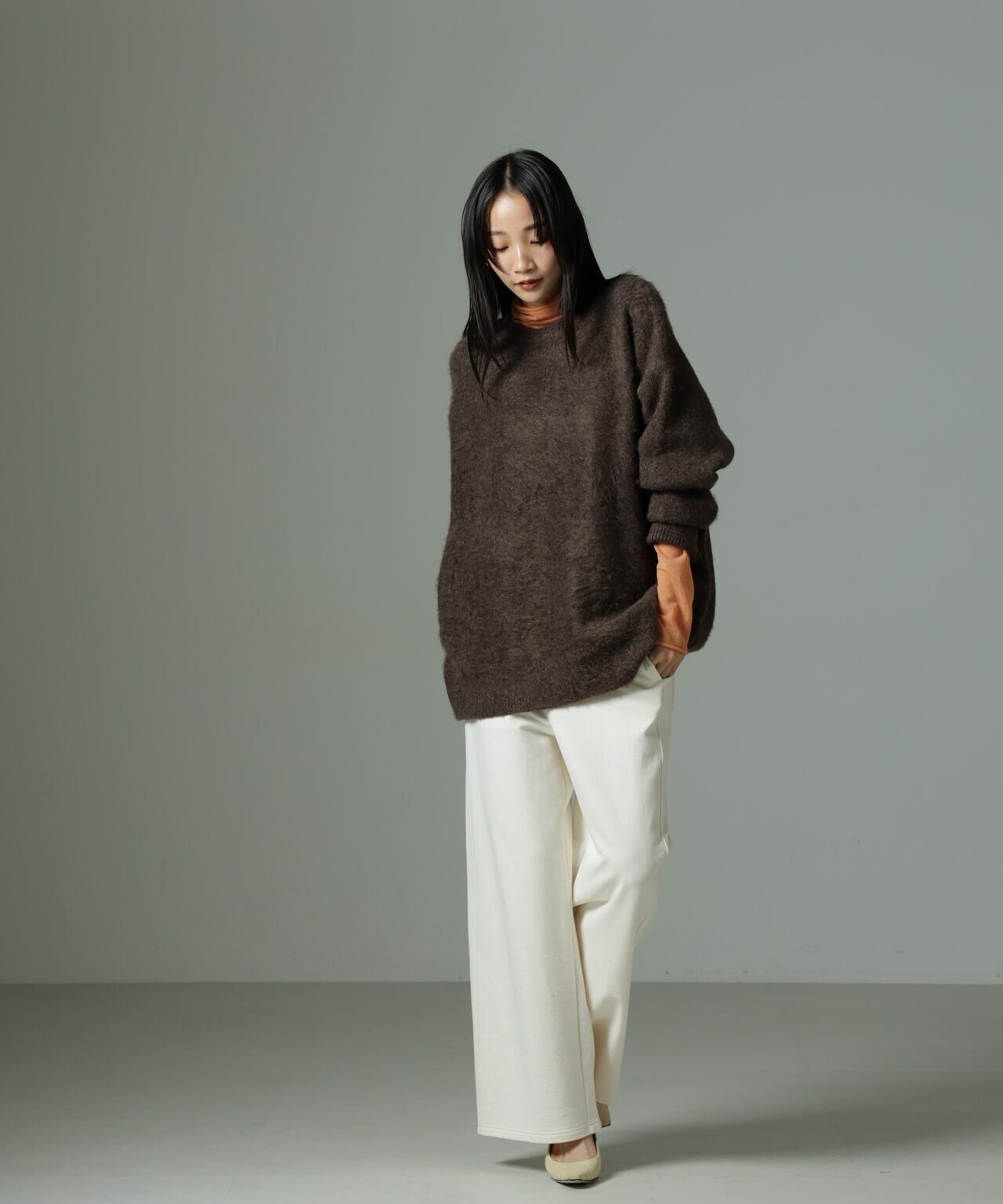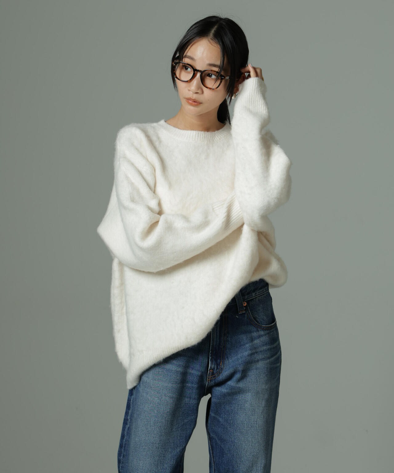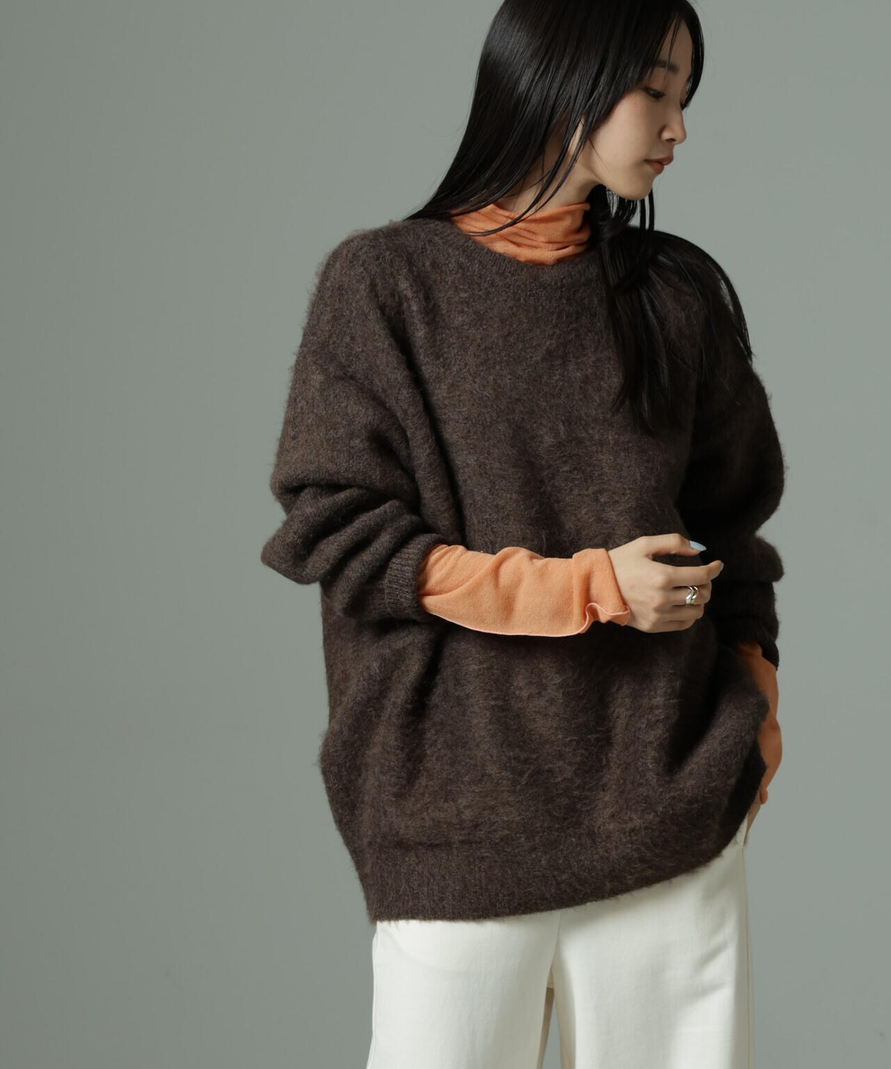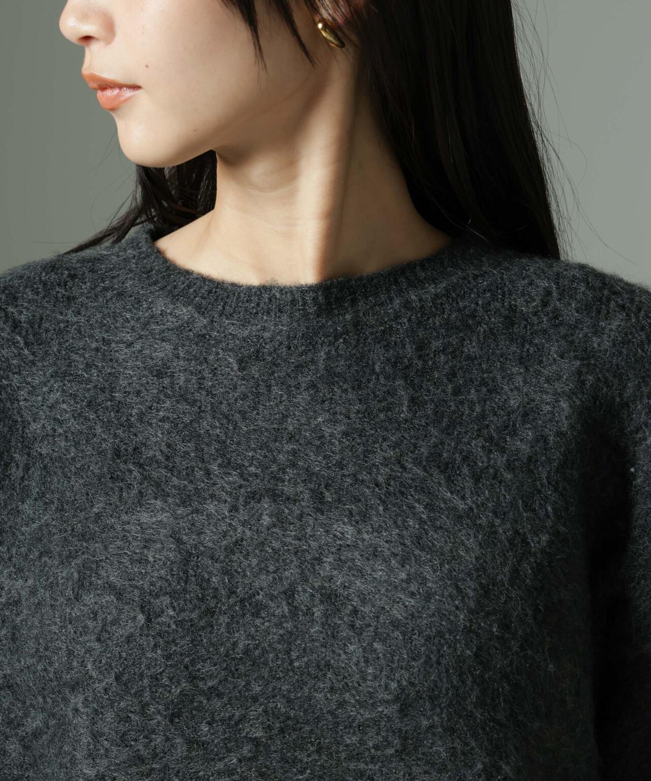 ・ふわふわした表面感と、柔らかで暖かみのある着心地の良さが特徴のニット