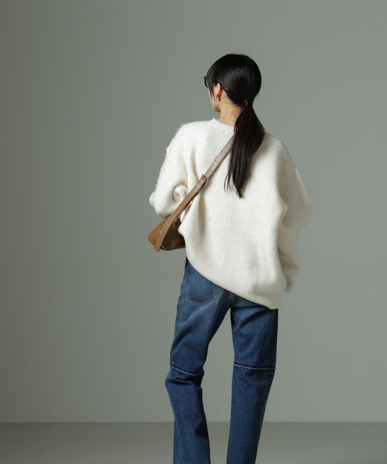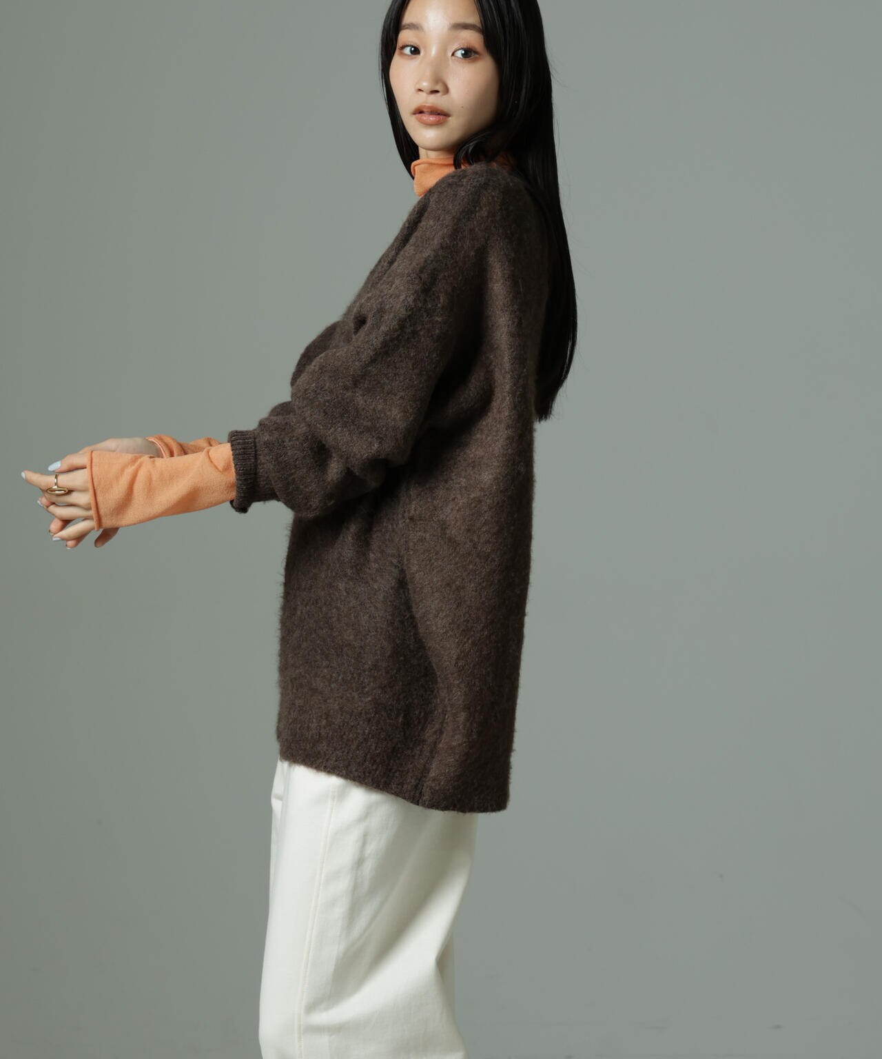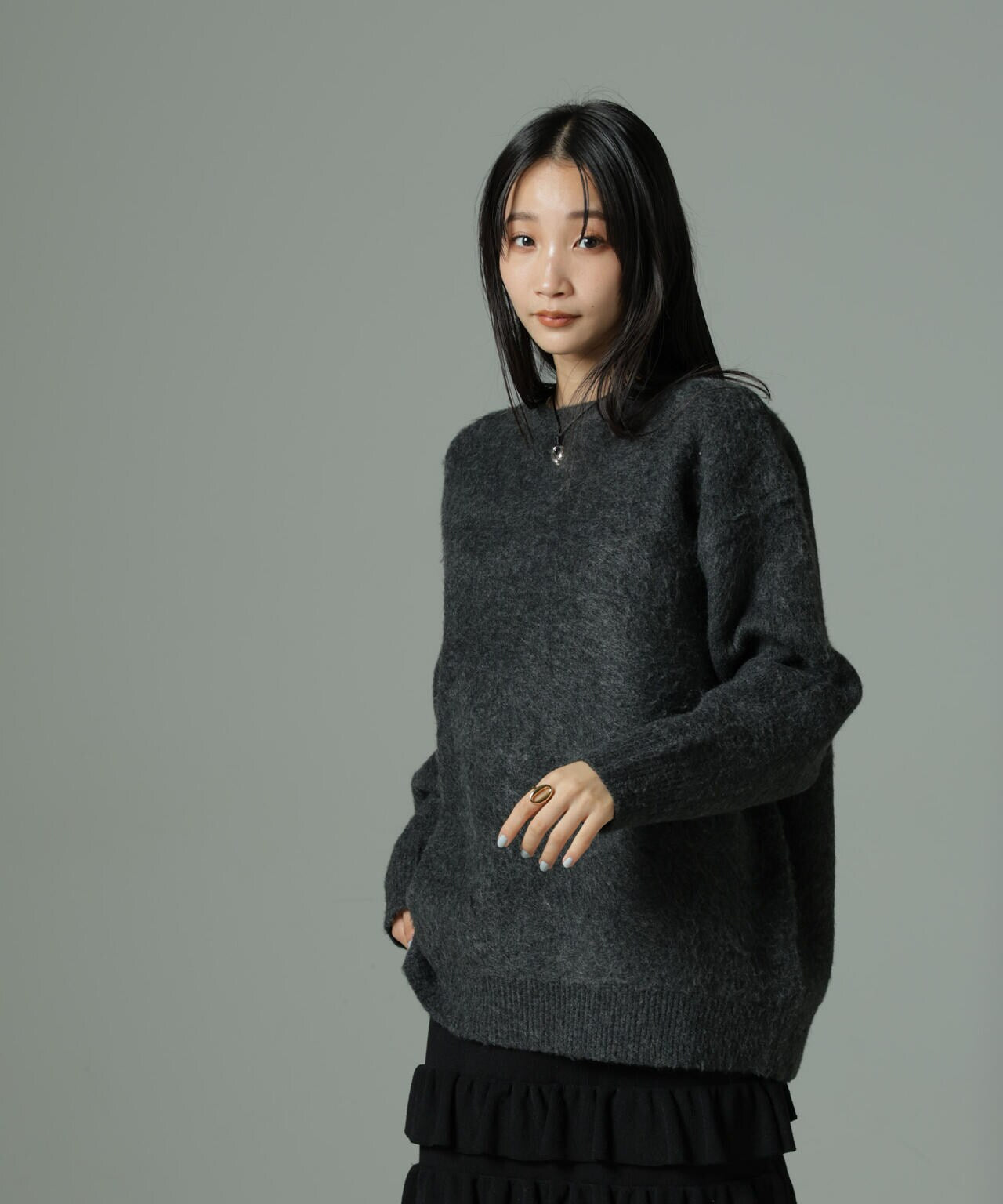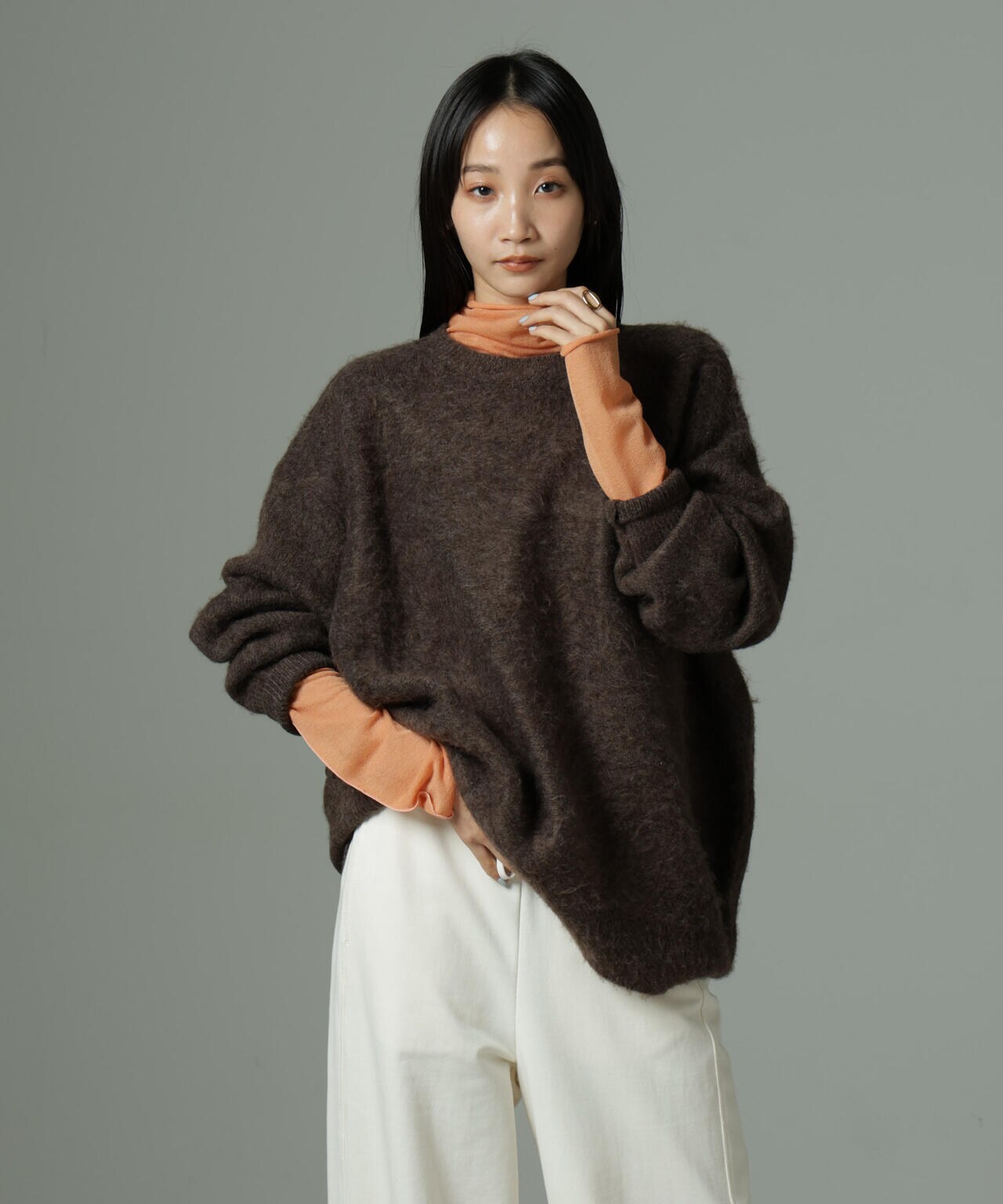 ・ふわふわした表面感と、柔らかで暖かみのある着心地の良さが特徴のニット