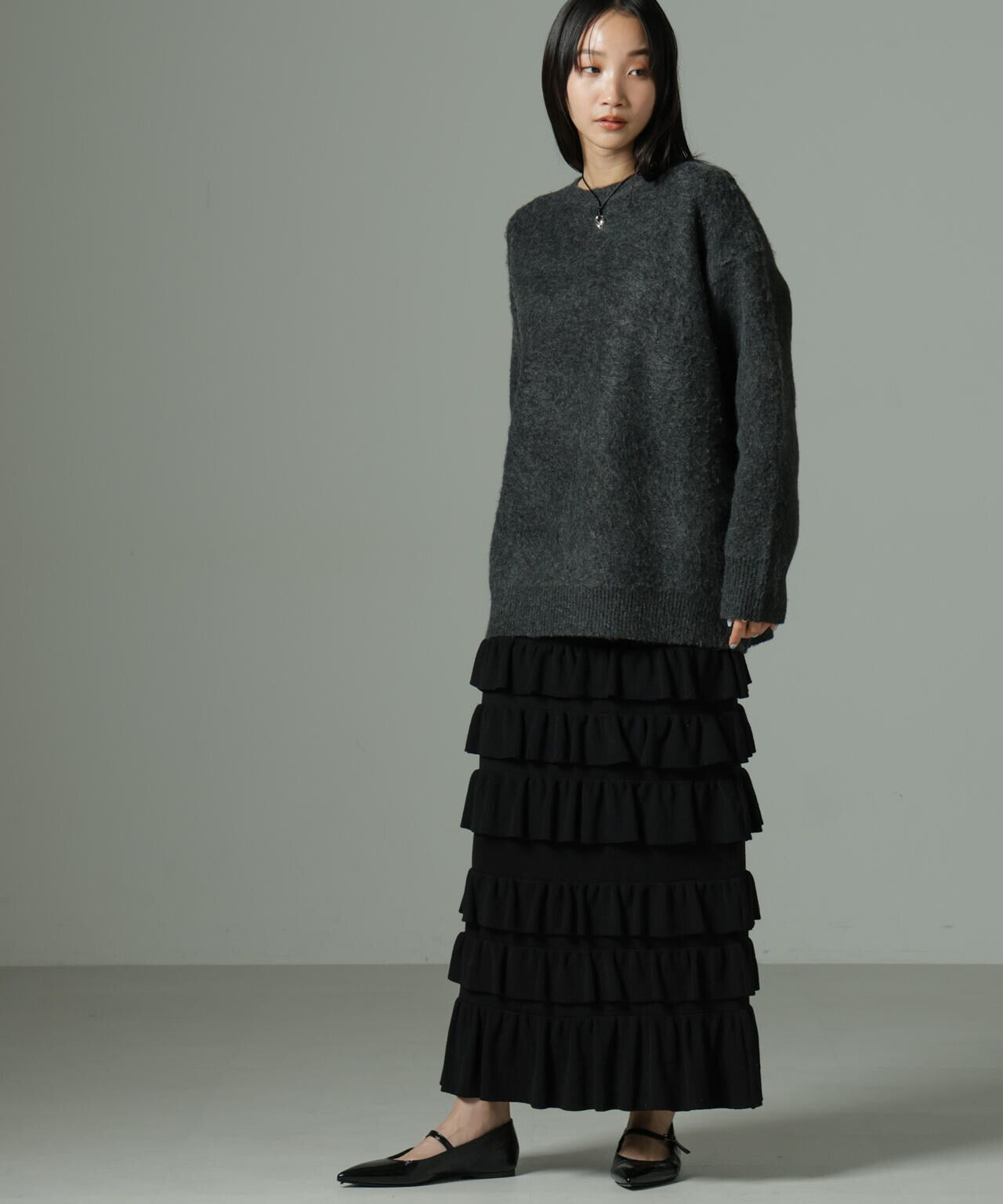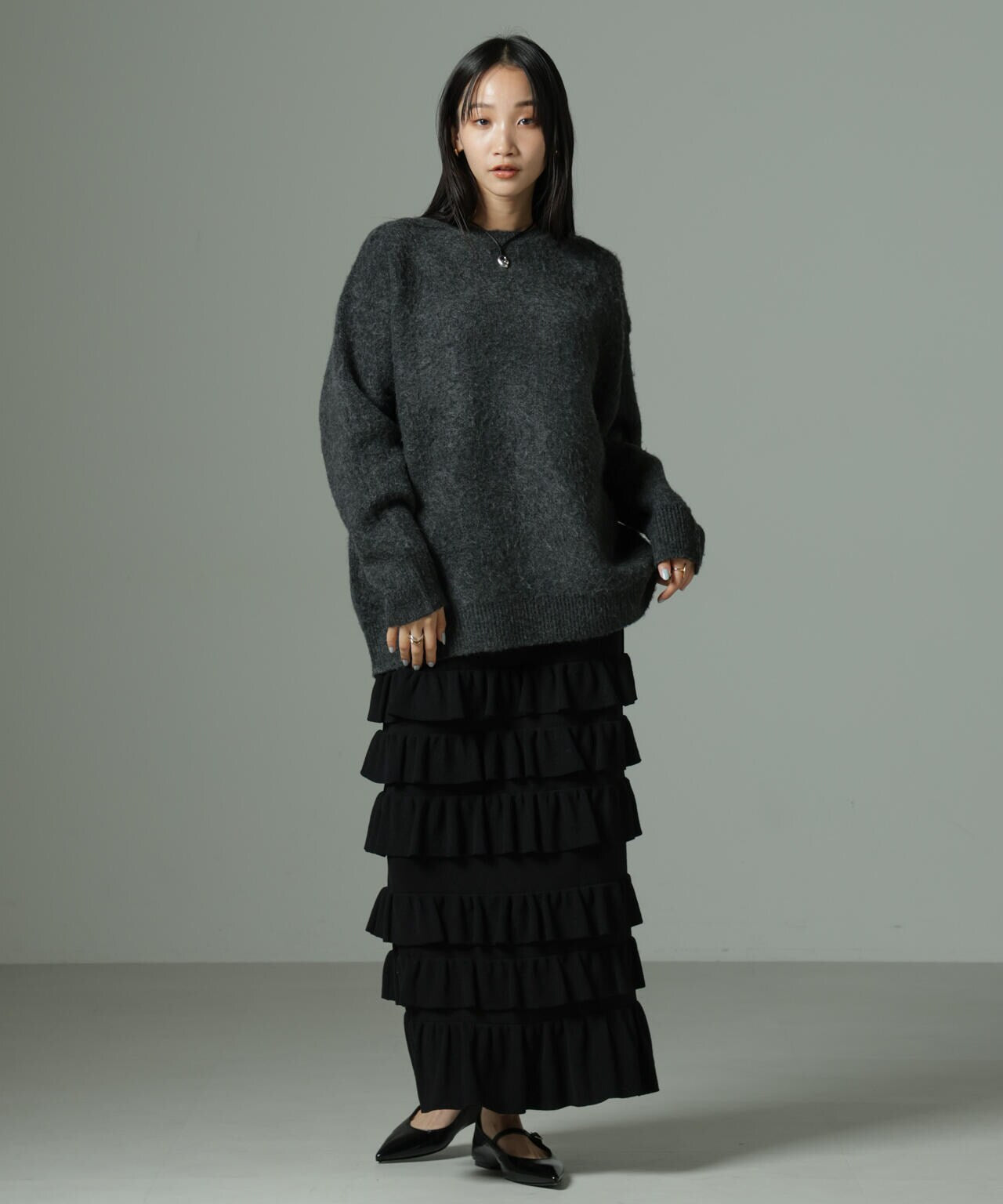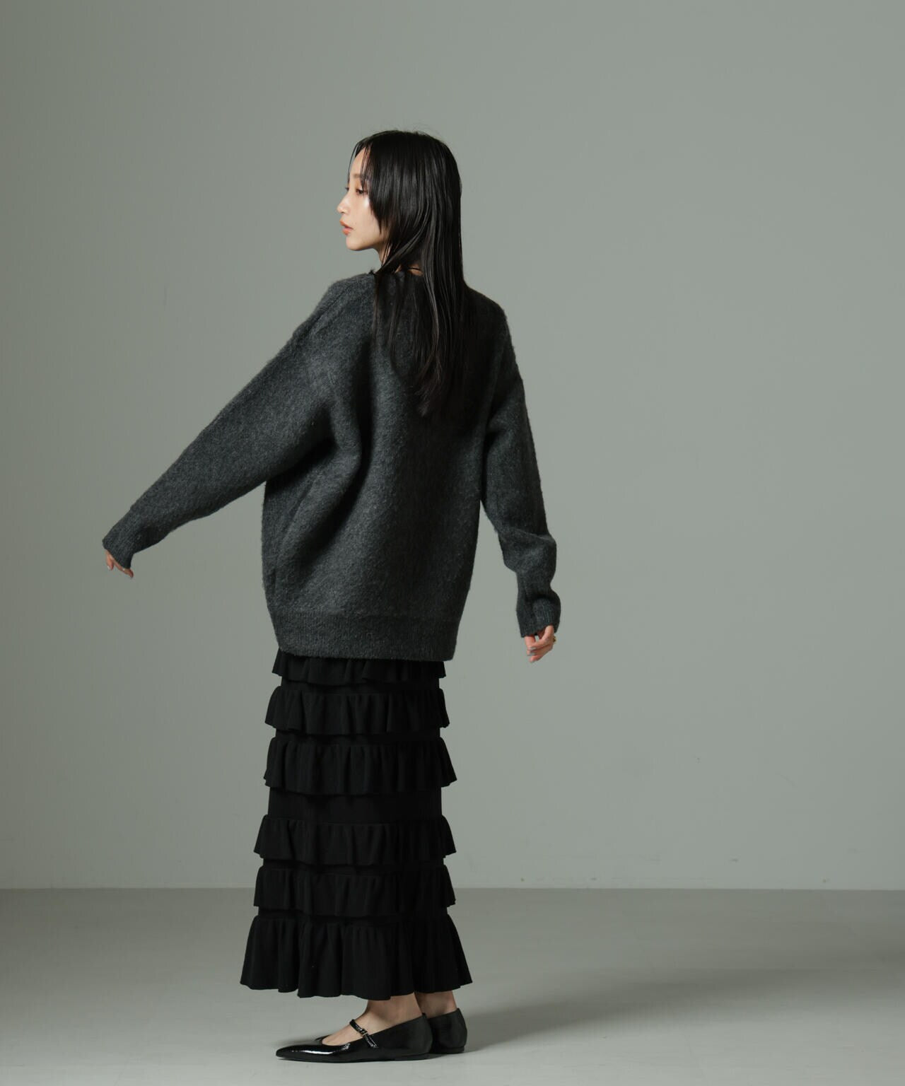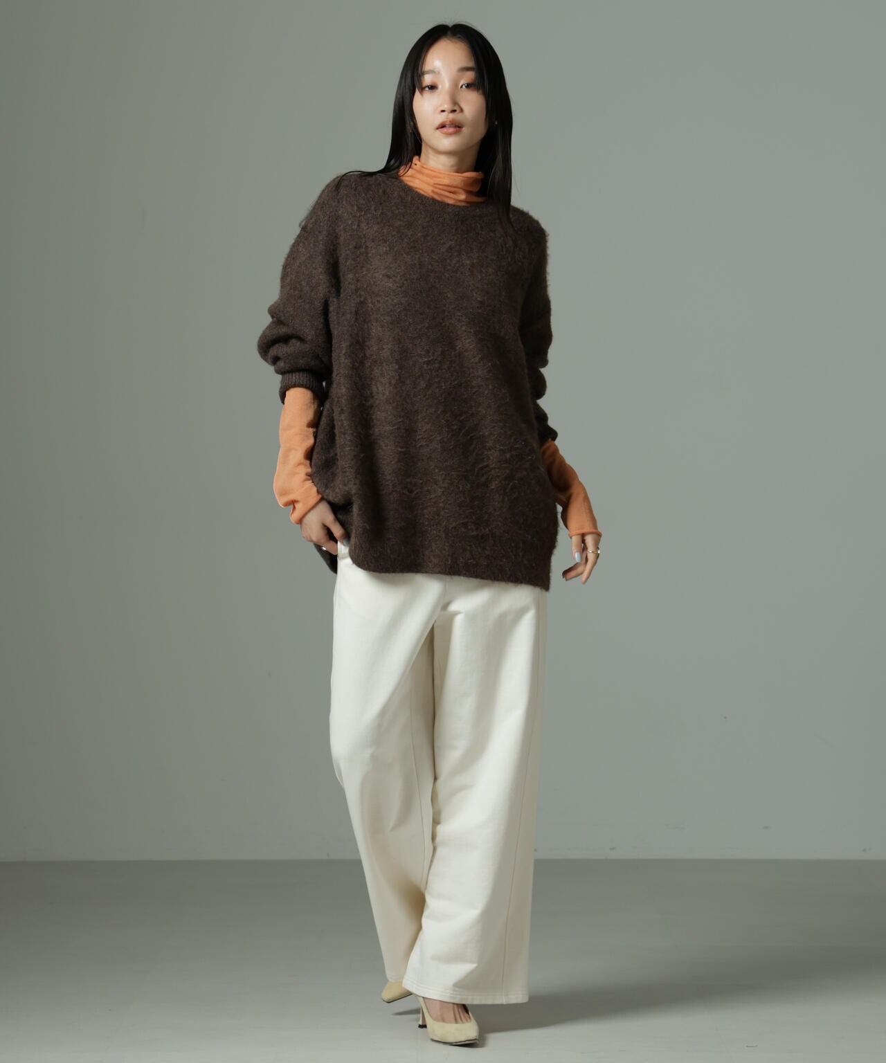 ・ふわふわした表面感と、柔らかで暖かみのある着心地の良さが特徴のニット