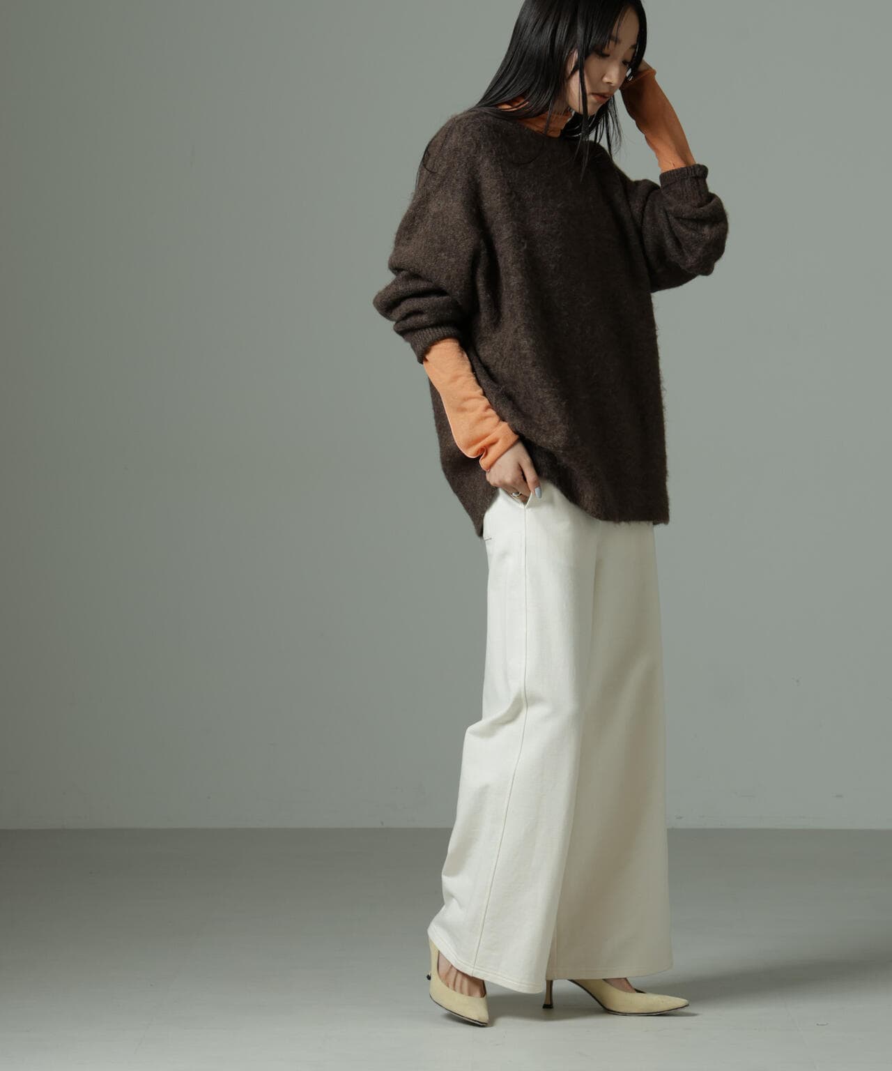 ゆったりしたワイドシルエットと、暖かみのある着心地の良さが魅力のニットトップス。インナーにシャツやTシャツを合わせて、裾からチラ見せするレイヤードスタイルも素敵です。