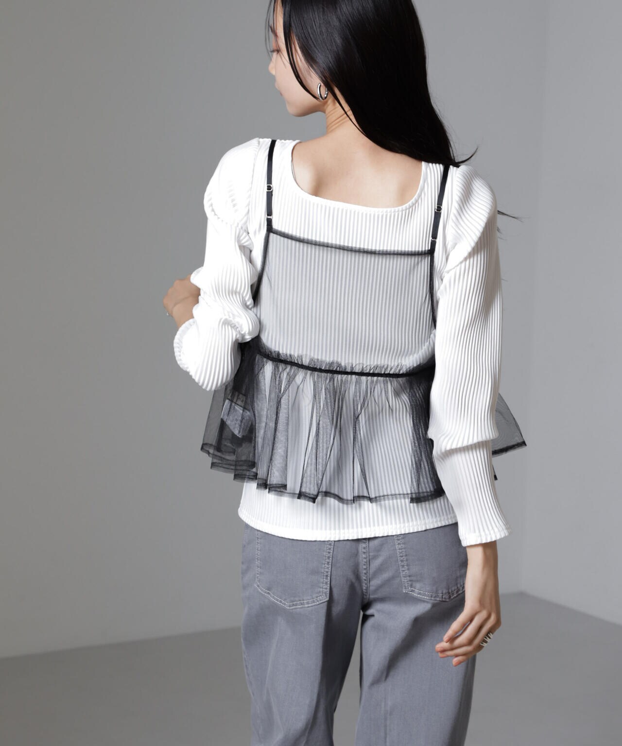 ・(チュールキャミソールトップス) 透け感のあるシアー素材