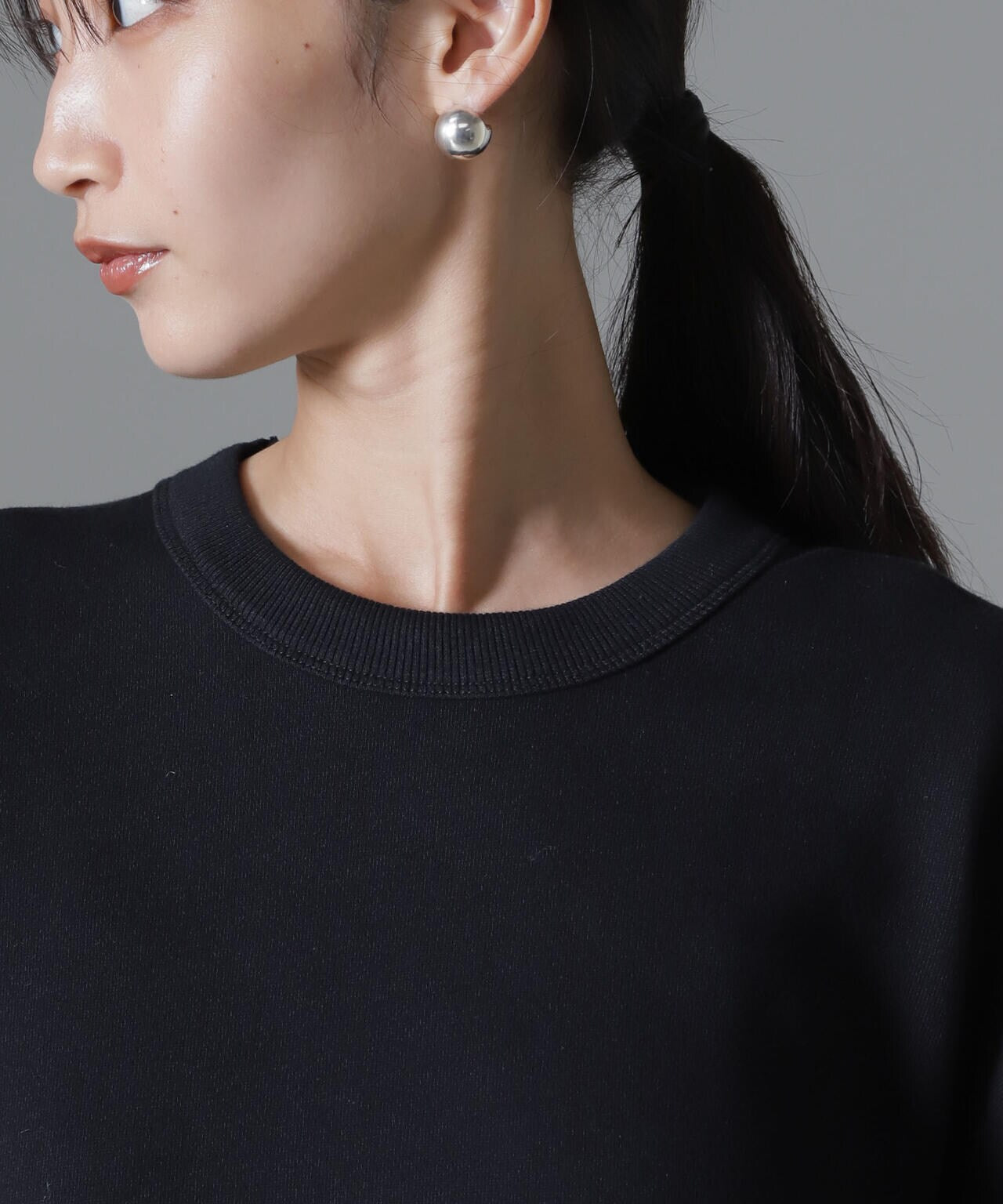 ・フロントはシンプルなクルーネックの裏毛トップス