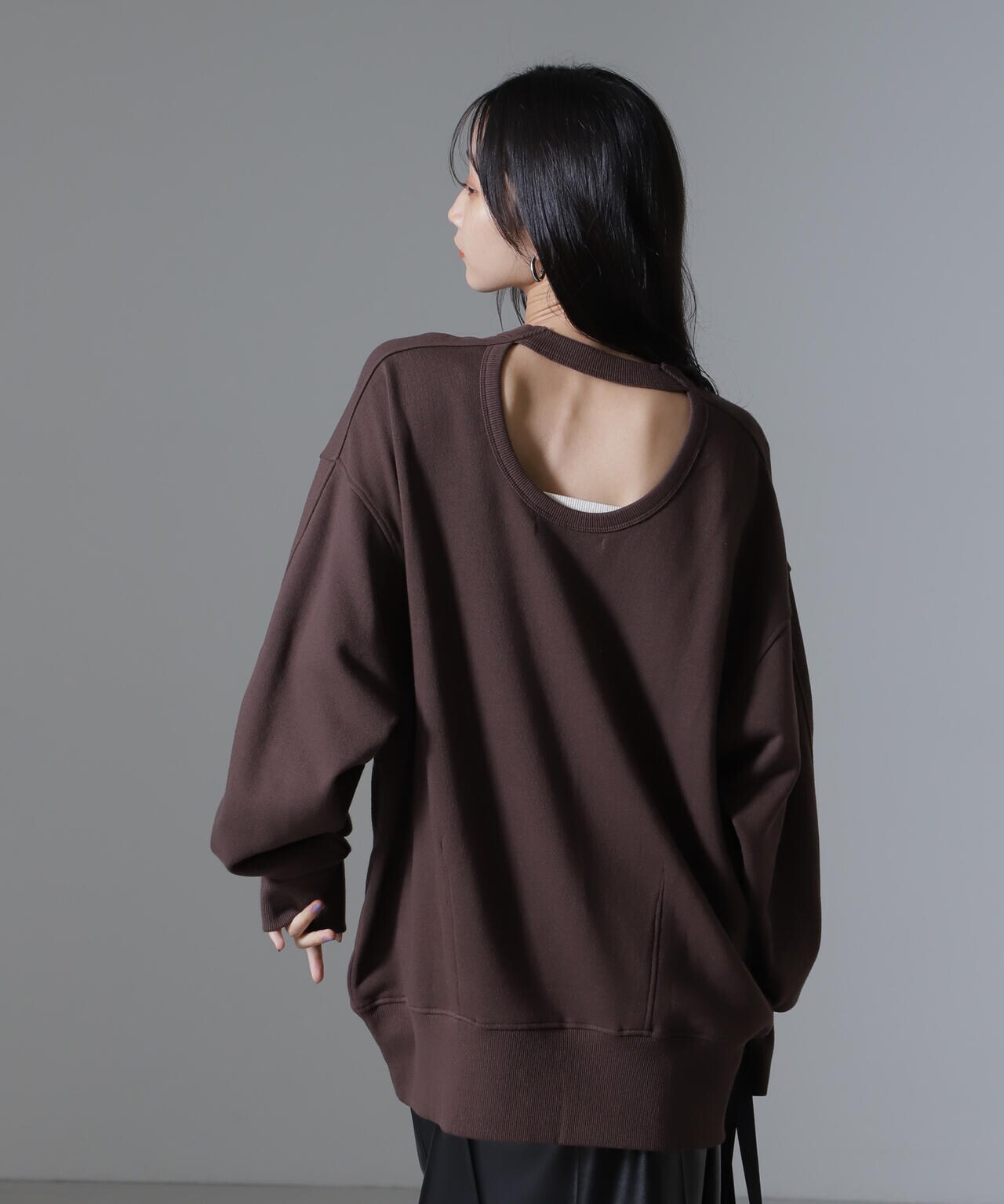 バックオープンディティール裏毛トップス