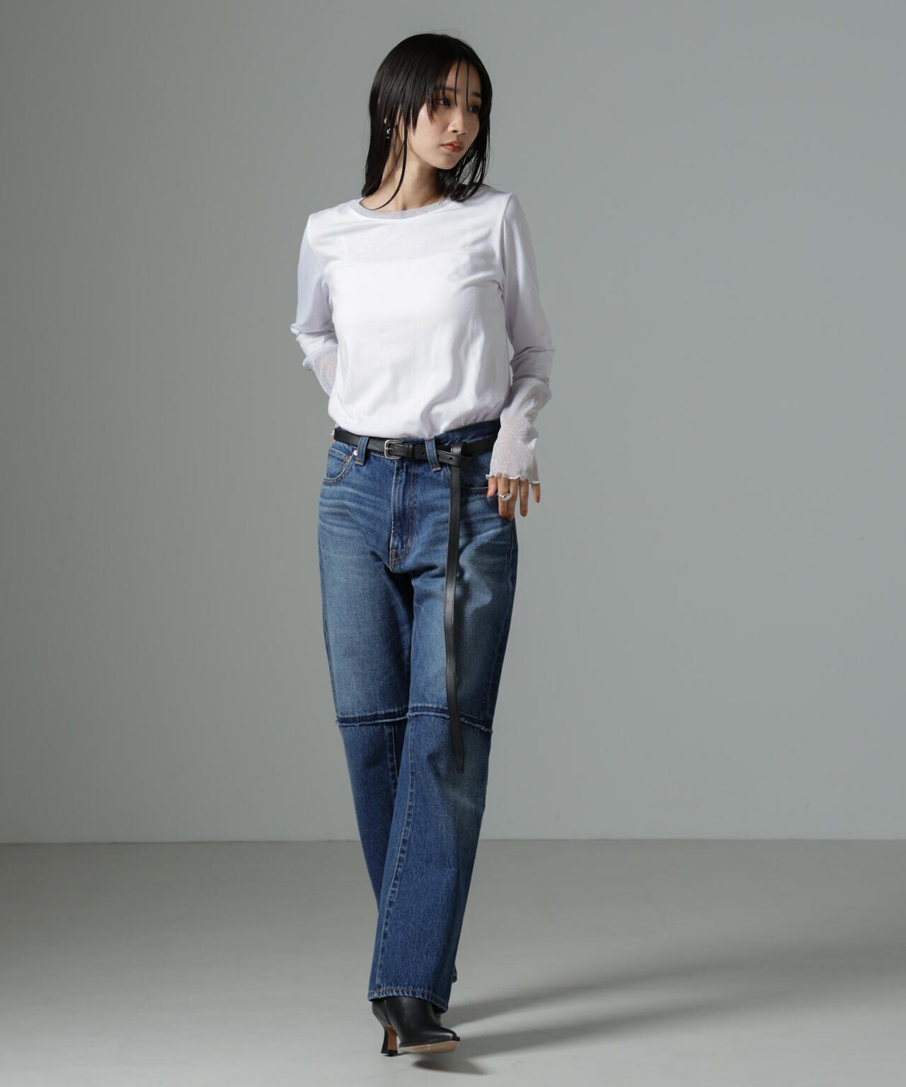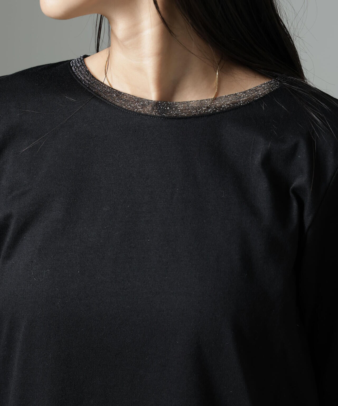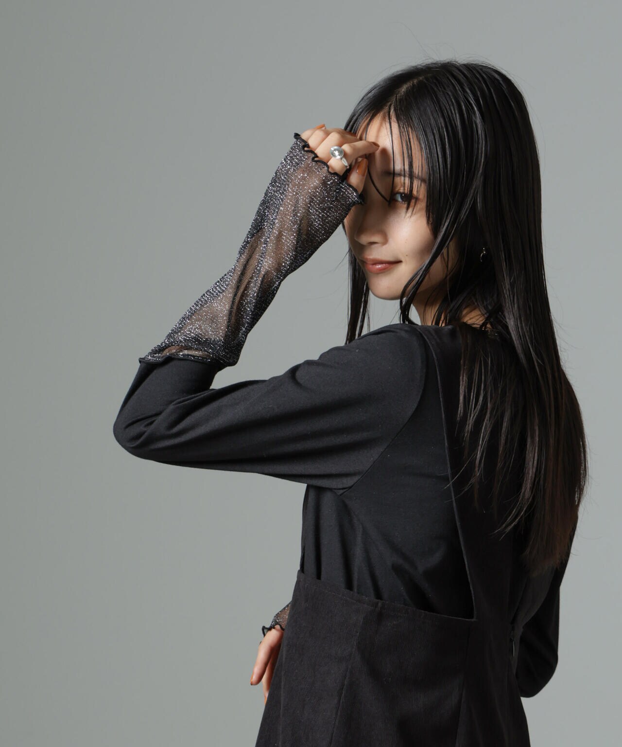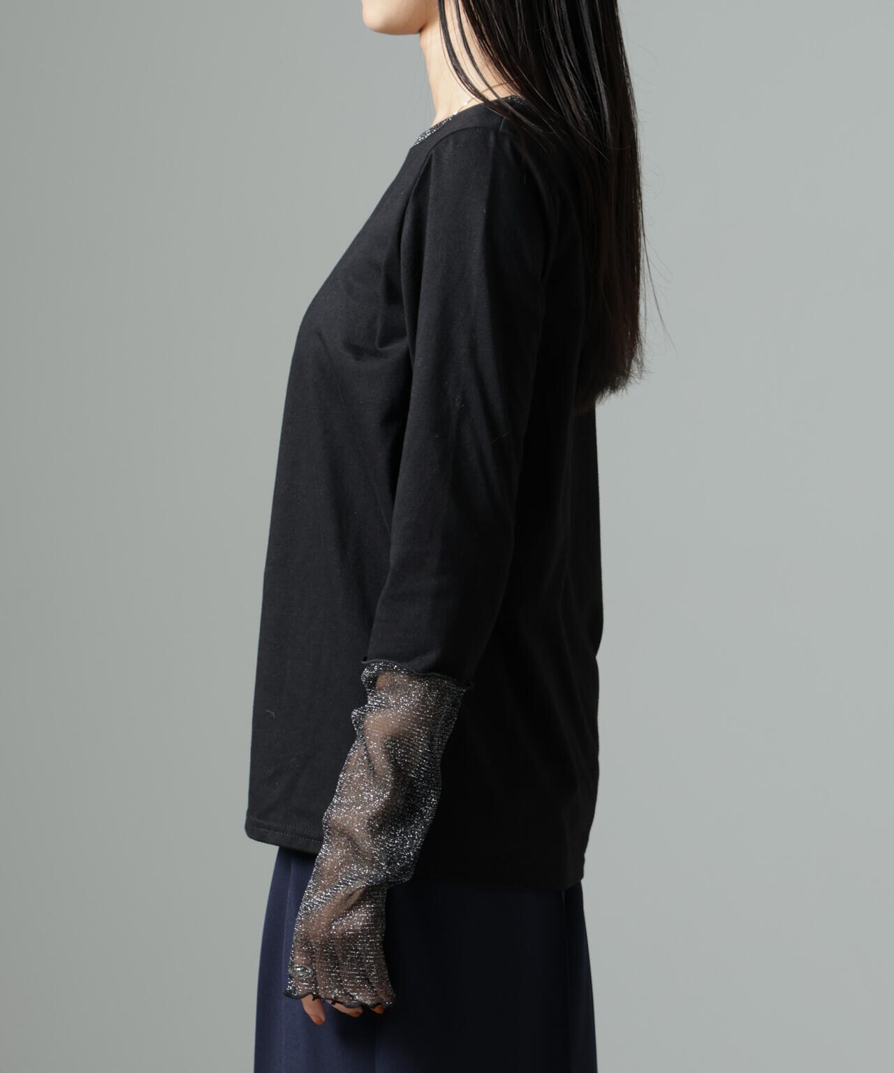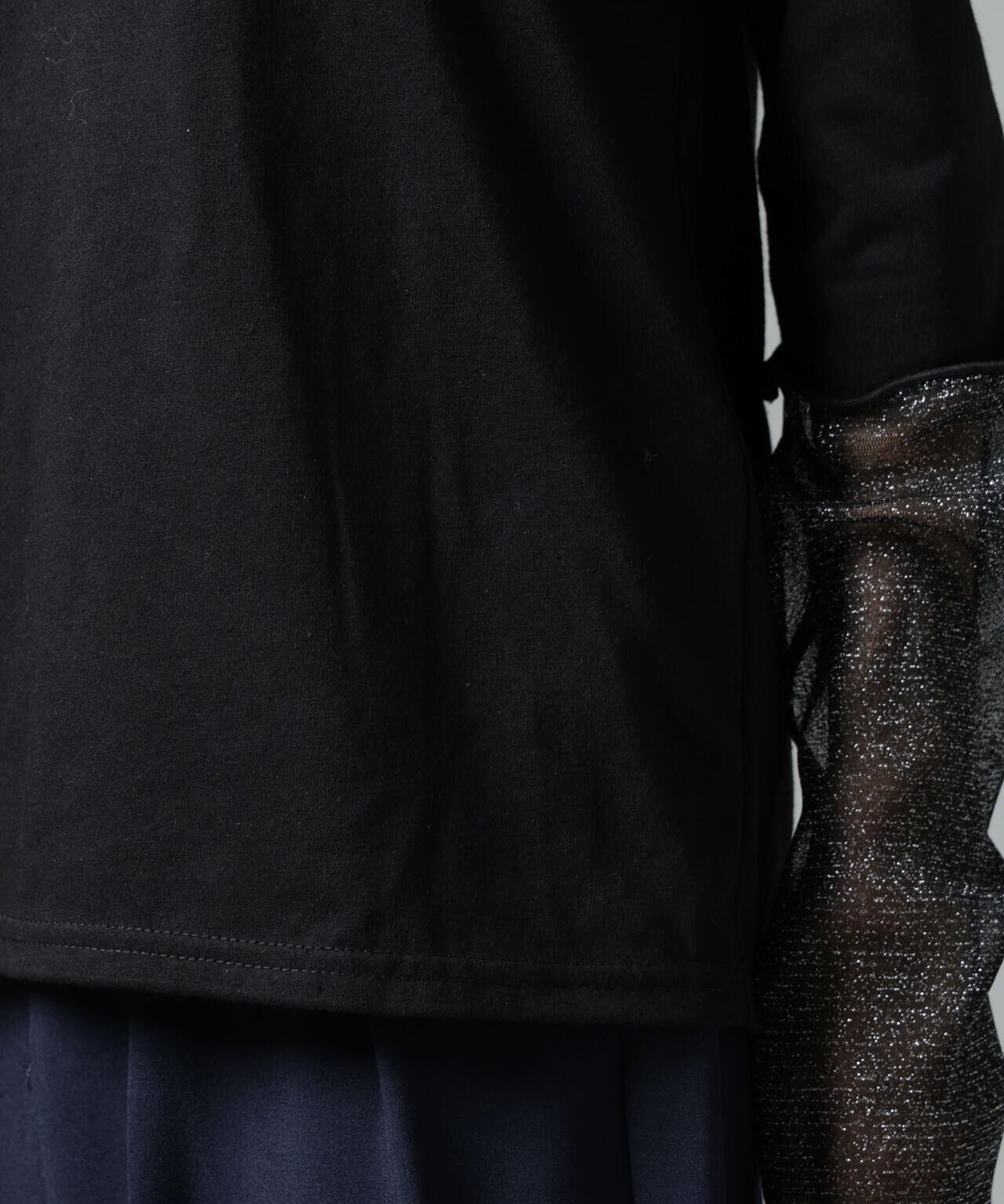 レイヤードスタイルが楽しめるロングTシャツカットソー。袖口と衿まわりが、シアーラメのカットソー素材になっているので、チラっと見えるだけでも華やかな雰囲気に◎。切り替えデザインにより、シルエットやスタイルに変化を持たせることができ、コーディネートの幅も広がります!