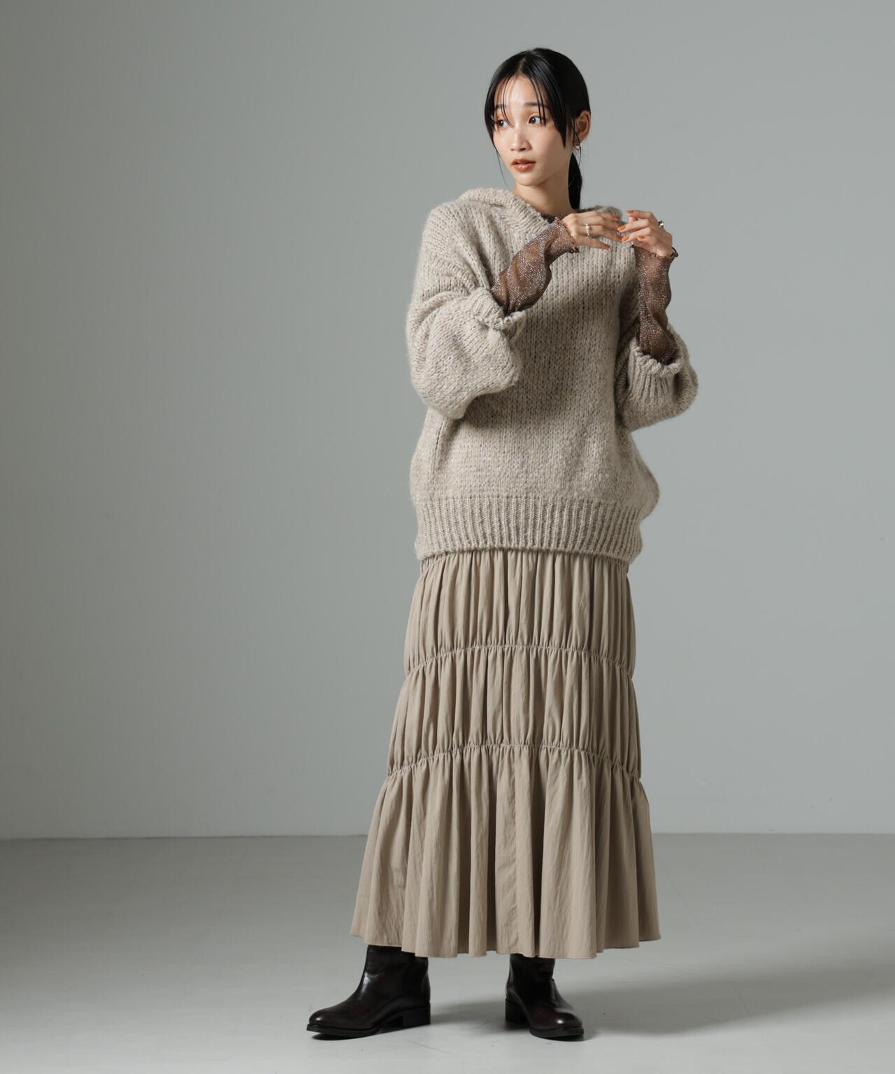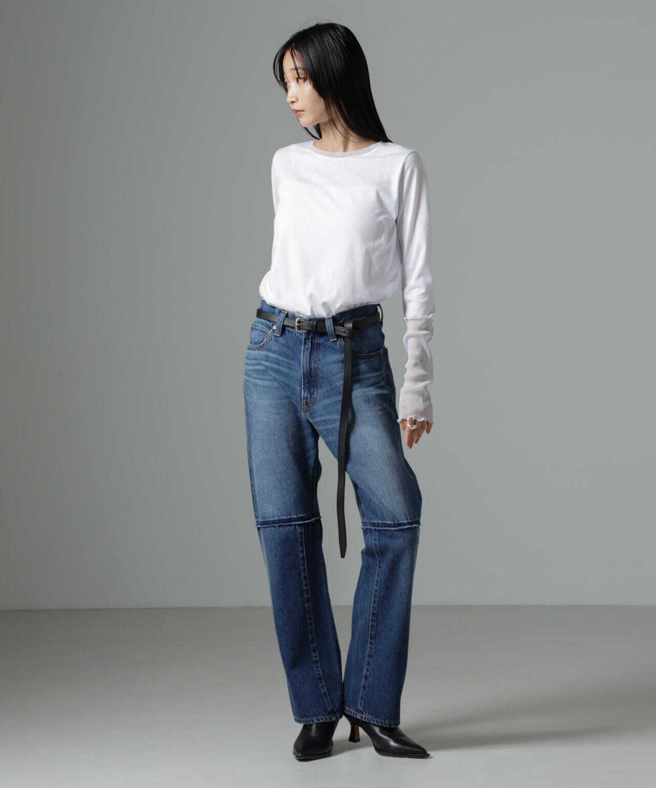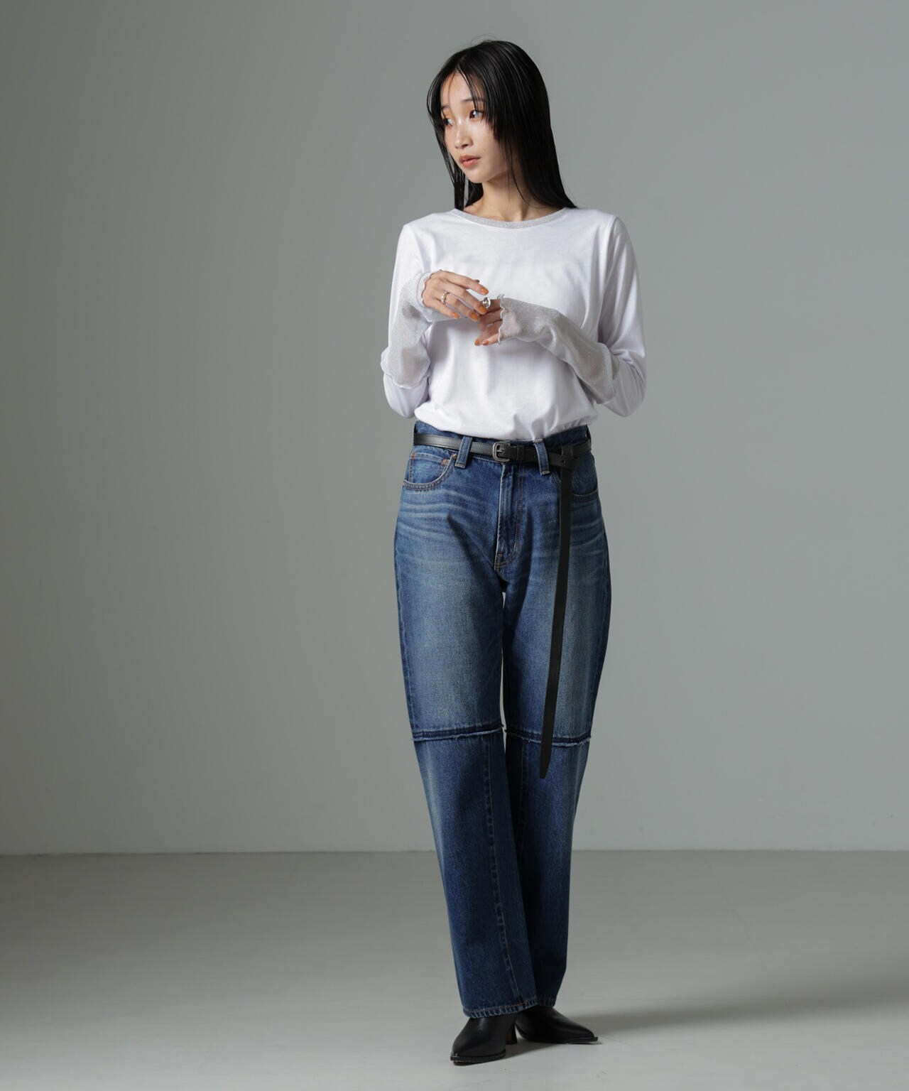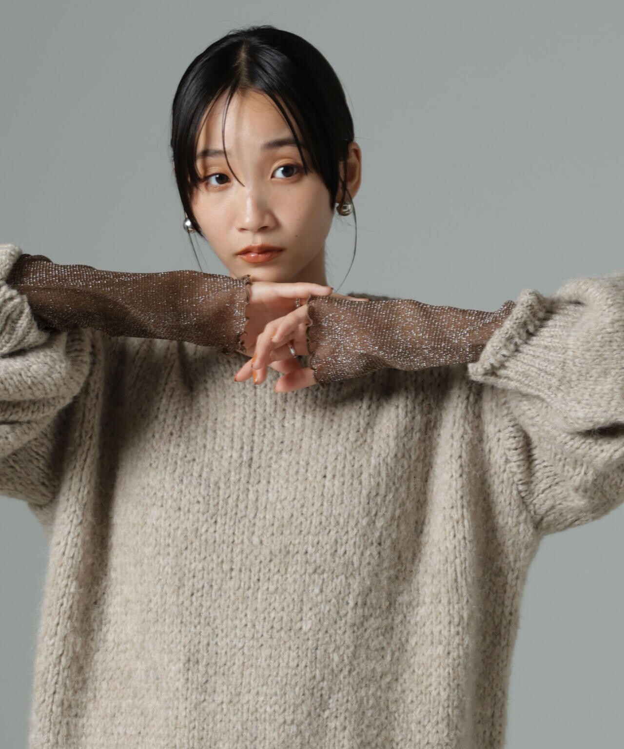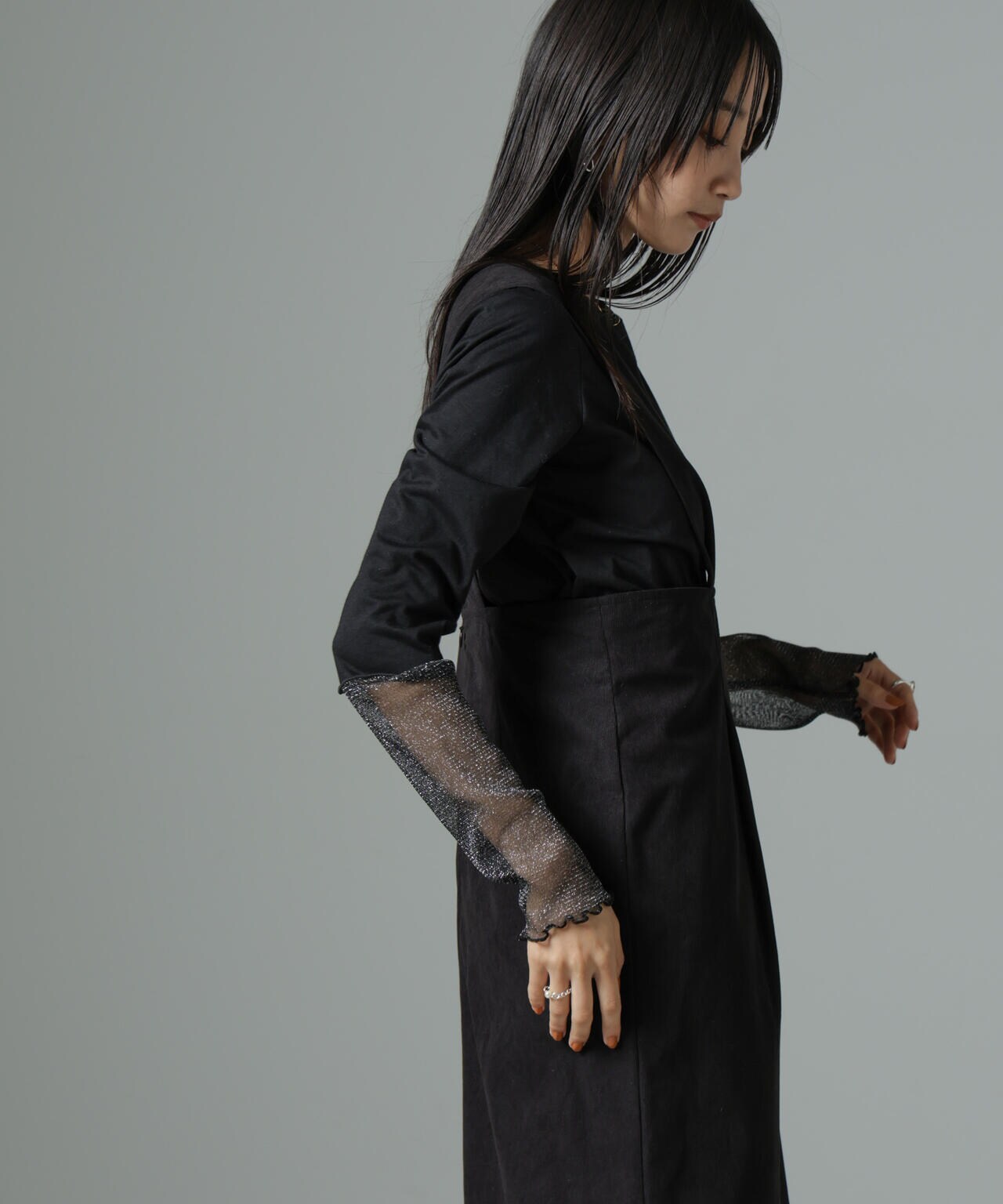レイヤードスタイルが楽しめるロングTシャツカットソー。袖口と衿まわりが、シアーラメのカットソー素材になっているので、チラっと見えるだけでも華やかな雰囲気に◎。切り替えデザインにより、シルエットやスタイルに変化を持たせることができ、コーディネートの幅も広がります!