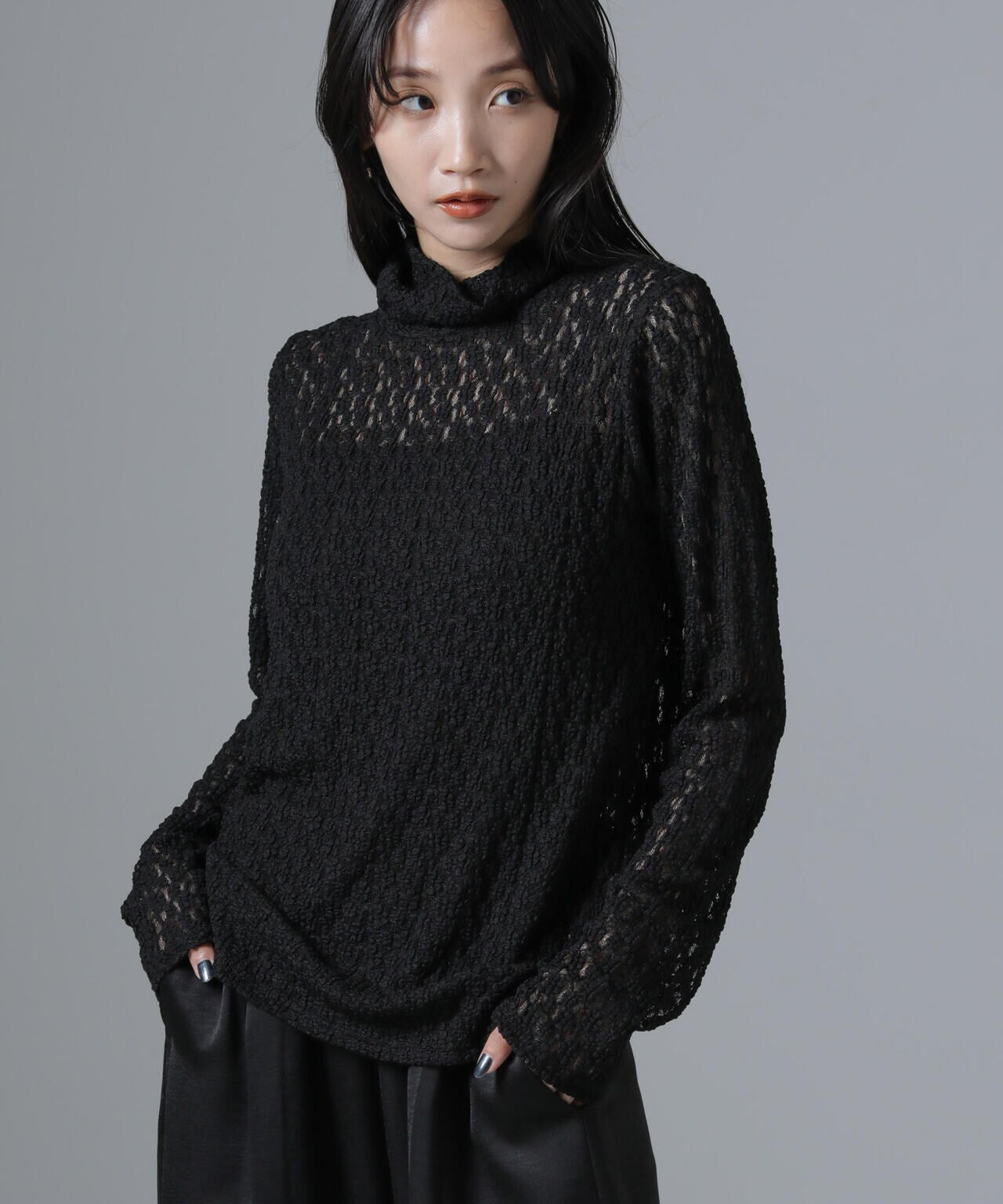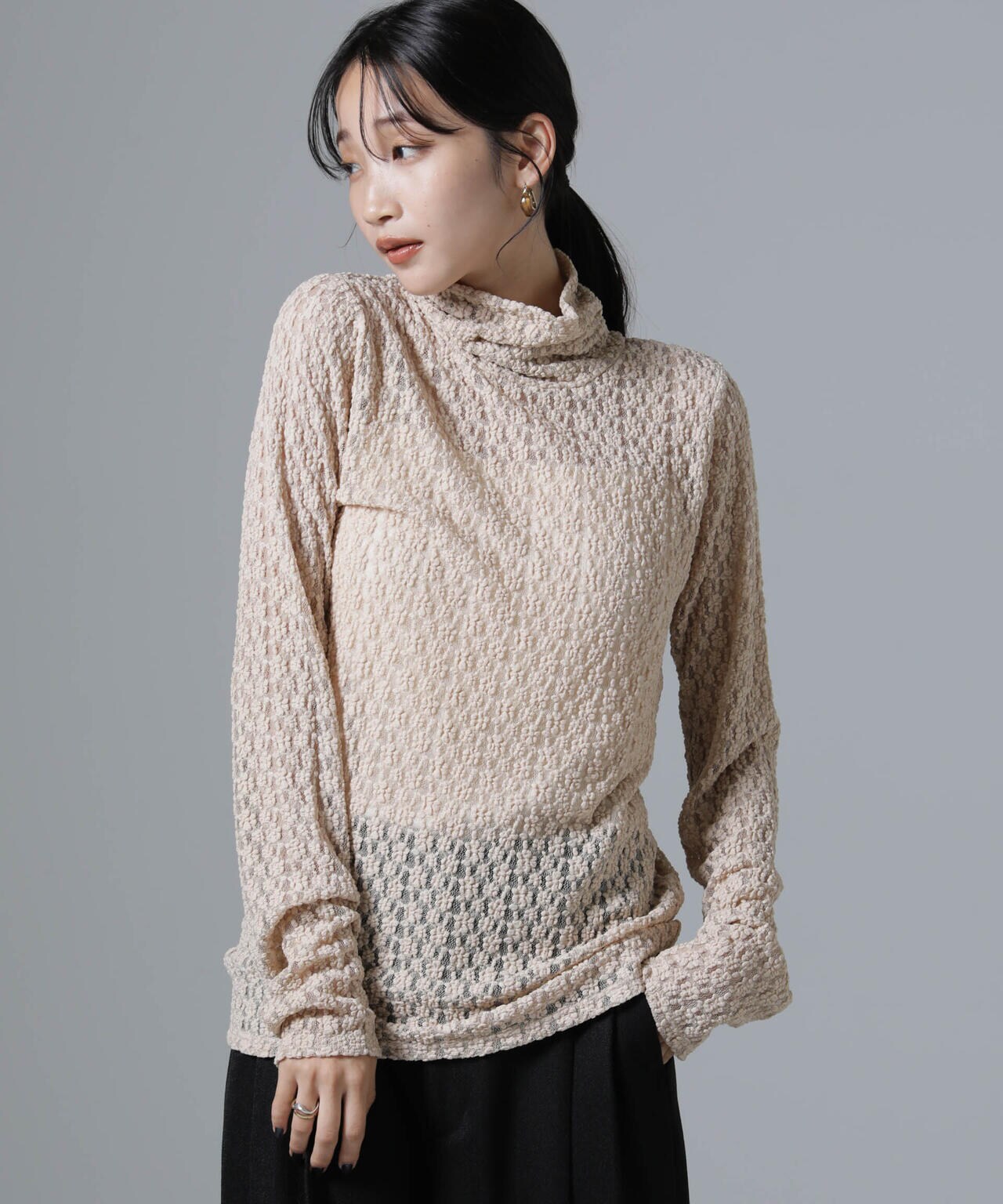 起毛レースタートルプルオーバー
