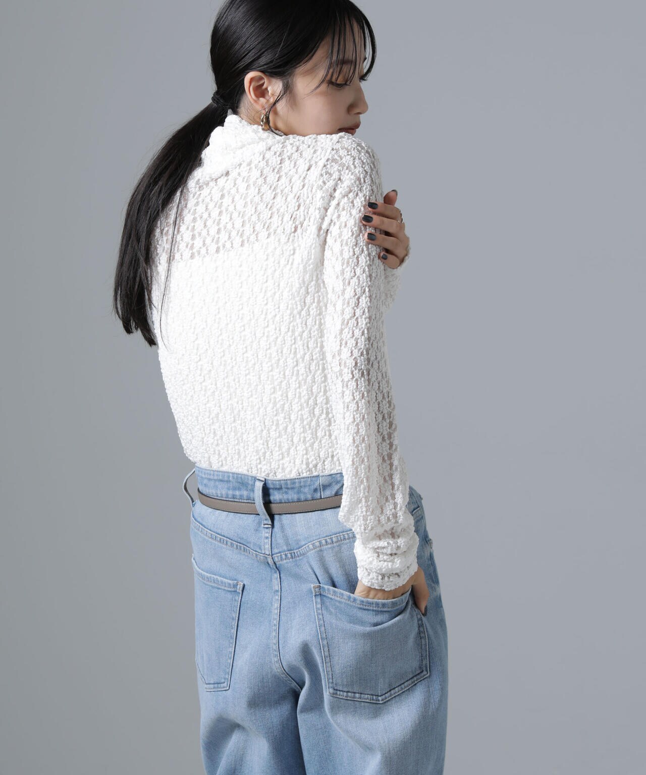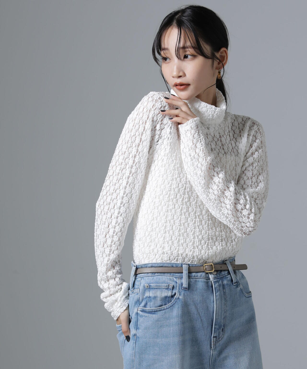 起毛したフラワーモチーフの素材が、スタイルに華やぎを与えるタートルプルオーバー。ニットやシャツにインして、衿や袖口からチラッと見せるだけで、いつものスタイリングがぐっとこなれるとっておきのアイテムです。
