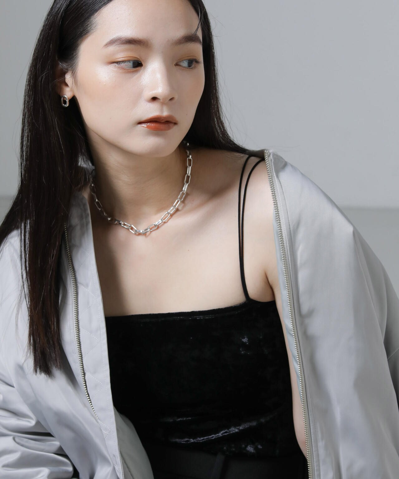 ・上品な光沢がスタイリングに華を添えるグレー