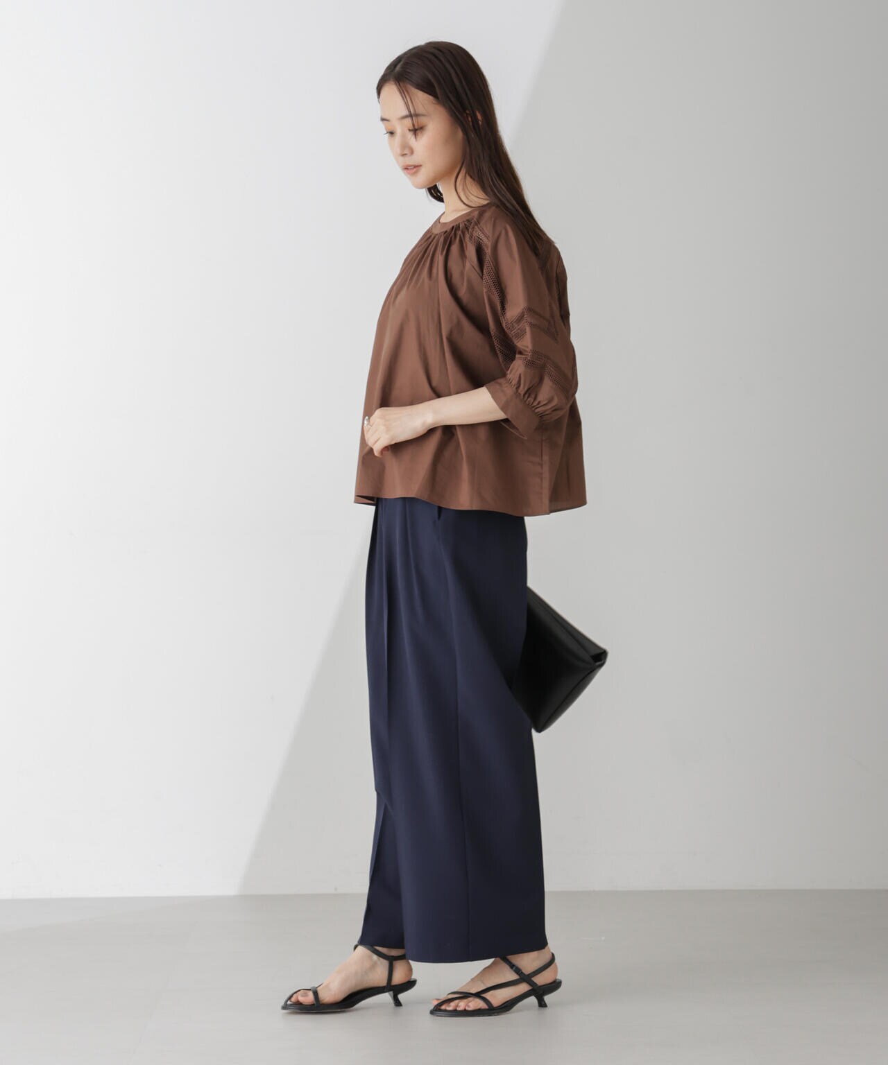 ・繊細なシアーカットソーや、ボータイブラウスも好バランス