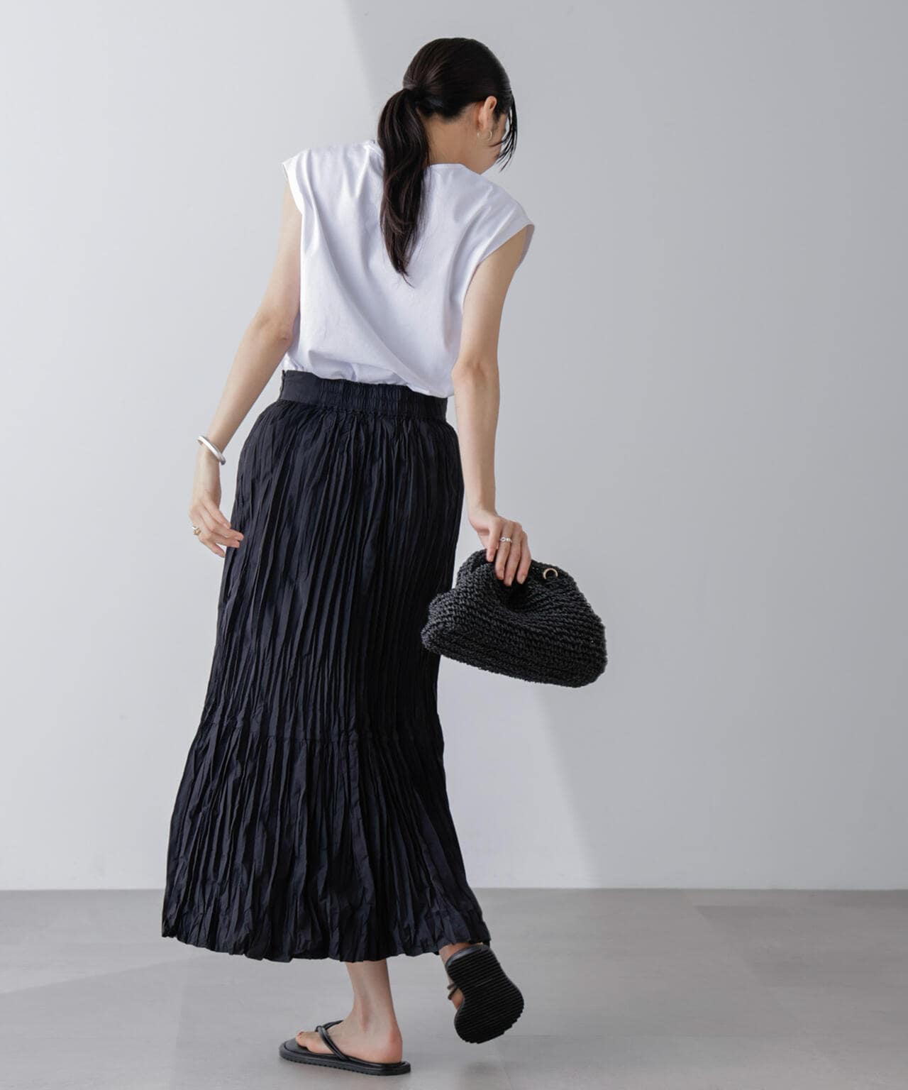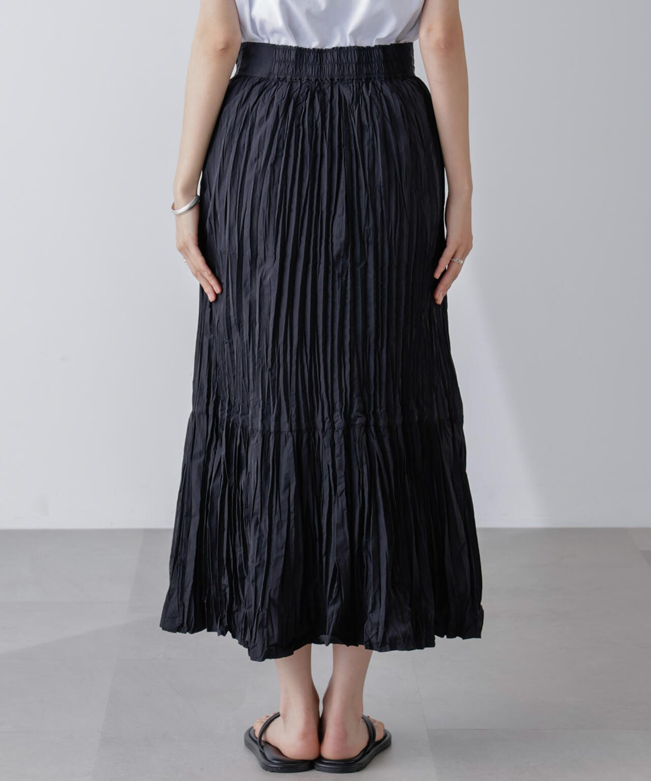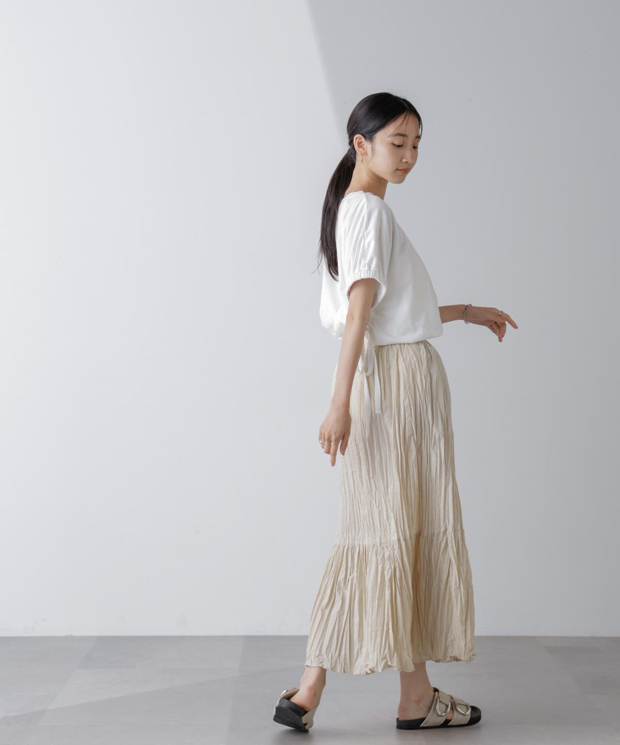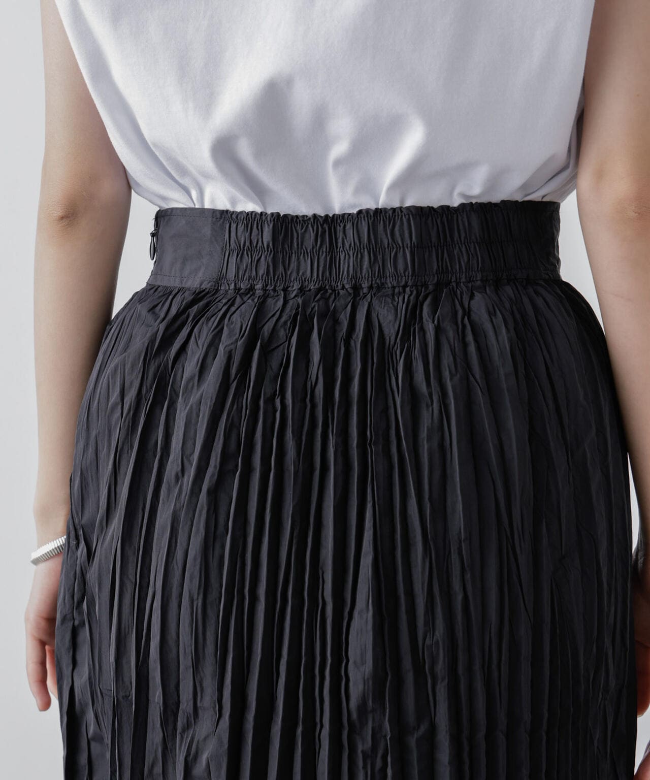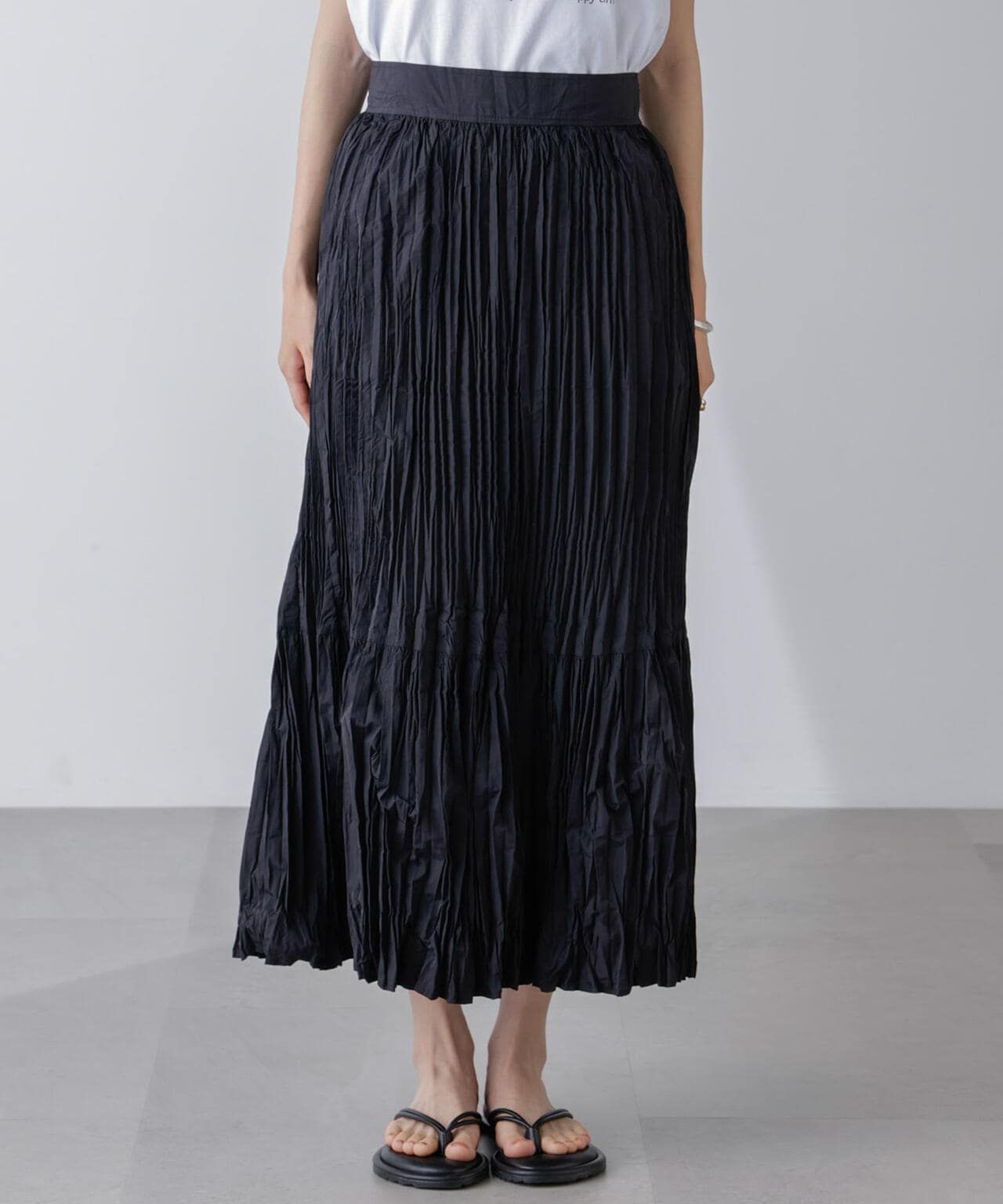 歩くたびにフワッとした動きが楽しめるーワッシャープリーツスカート。リラクシーなウエストゴム仕様で、ワッシャー加工を施しているのでシワが気にならないのも魅力的。大人カジュアルな着こなしや、キレイめなトップスなどでオンスタイルに着こなしもおススメです◎。