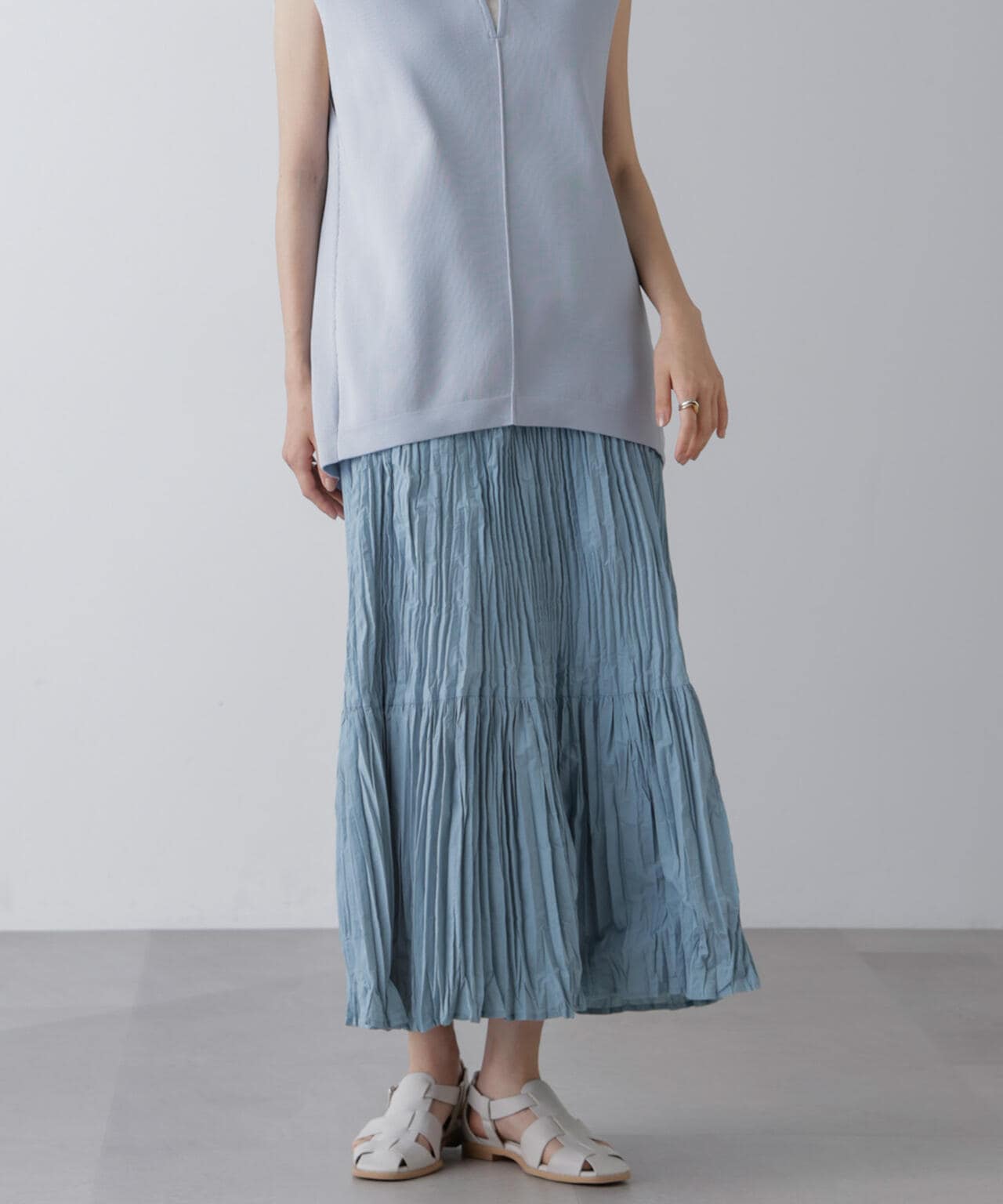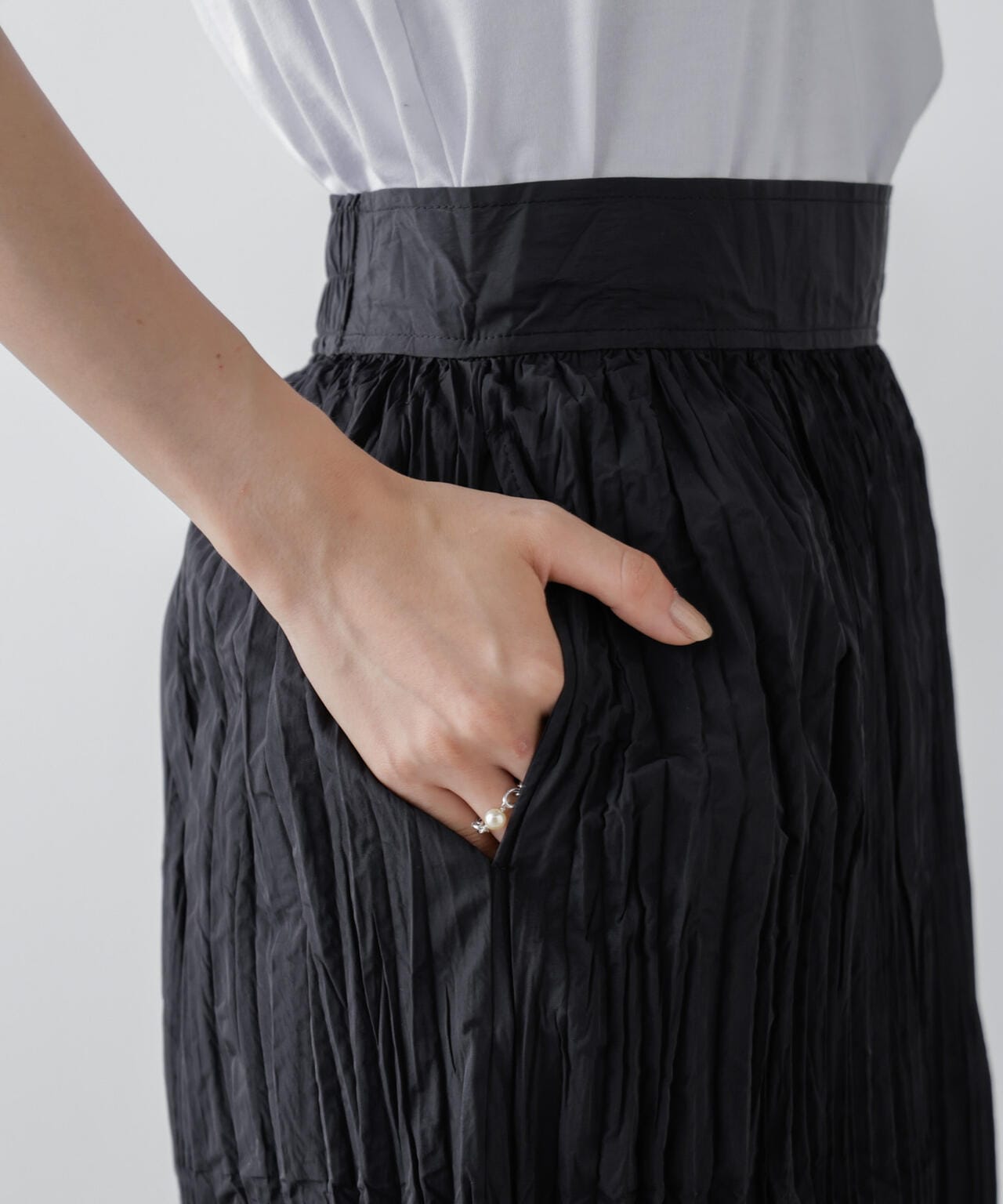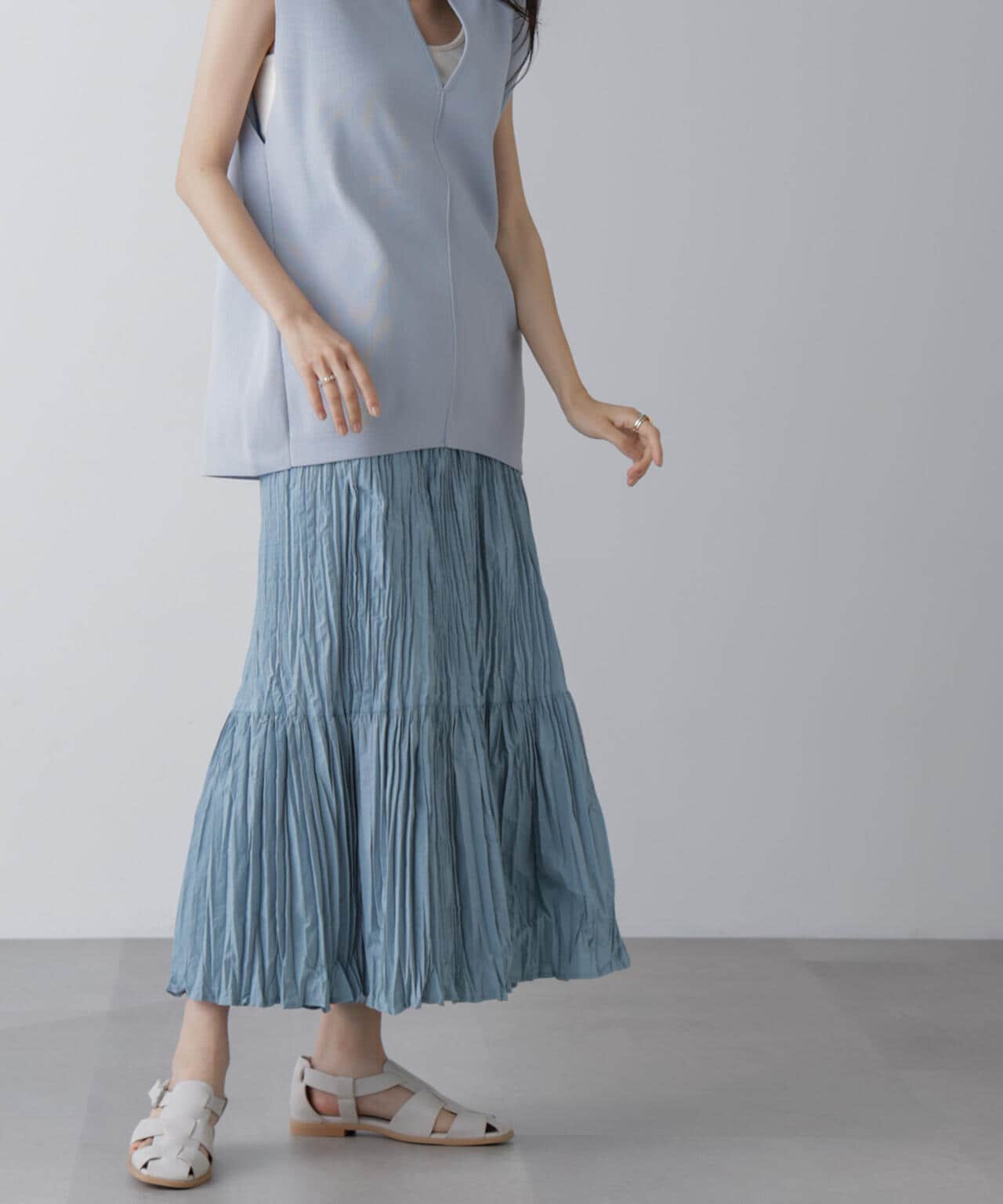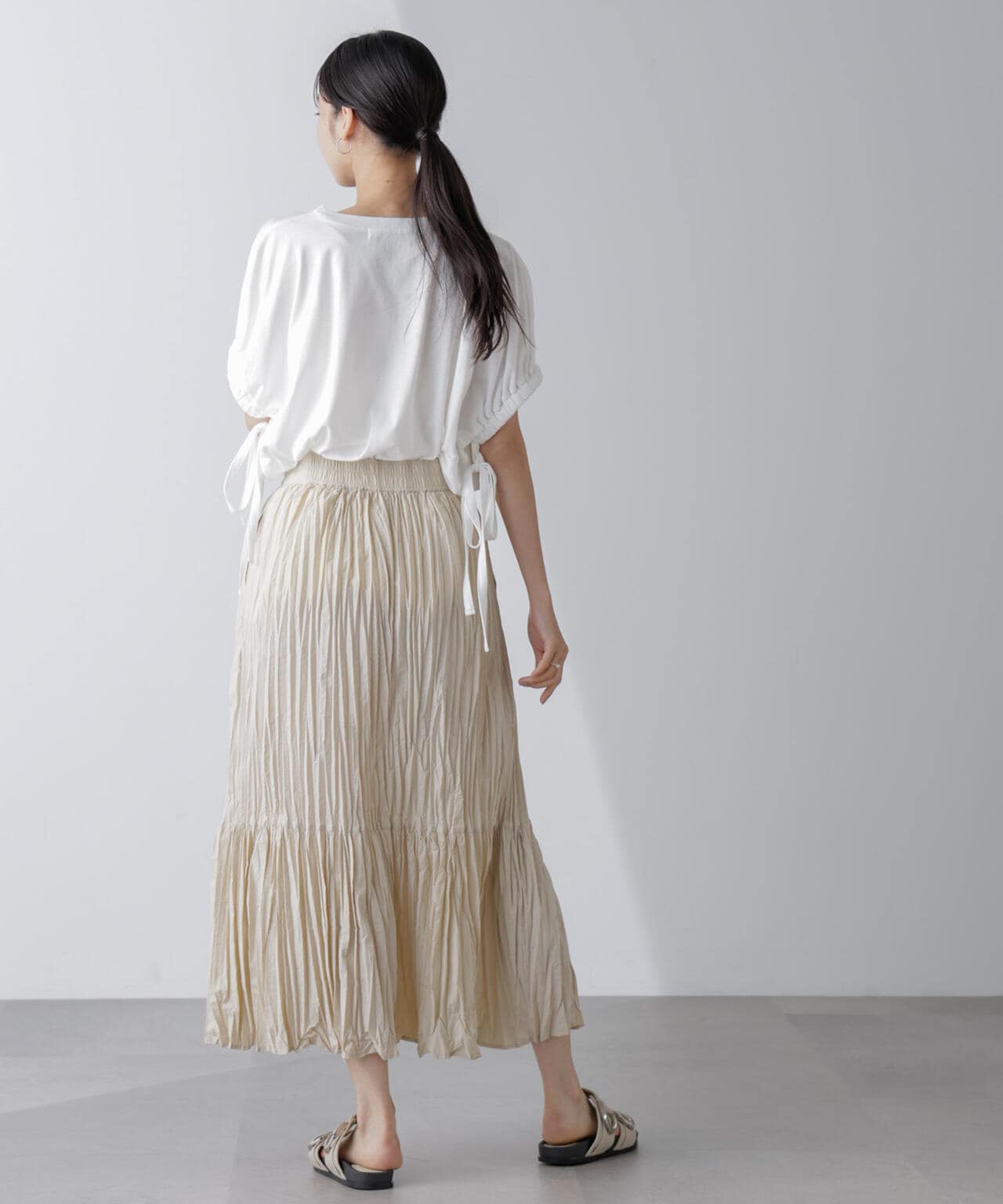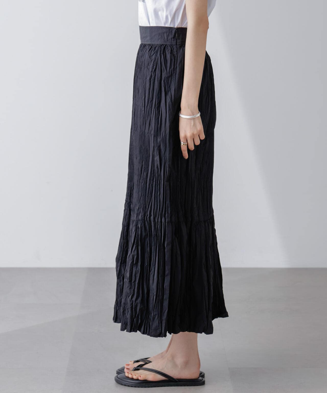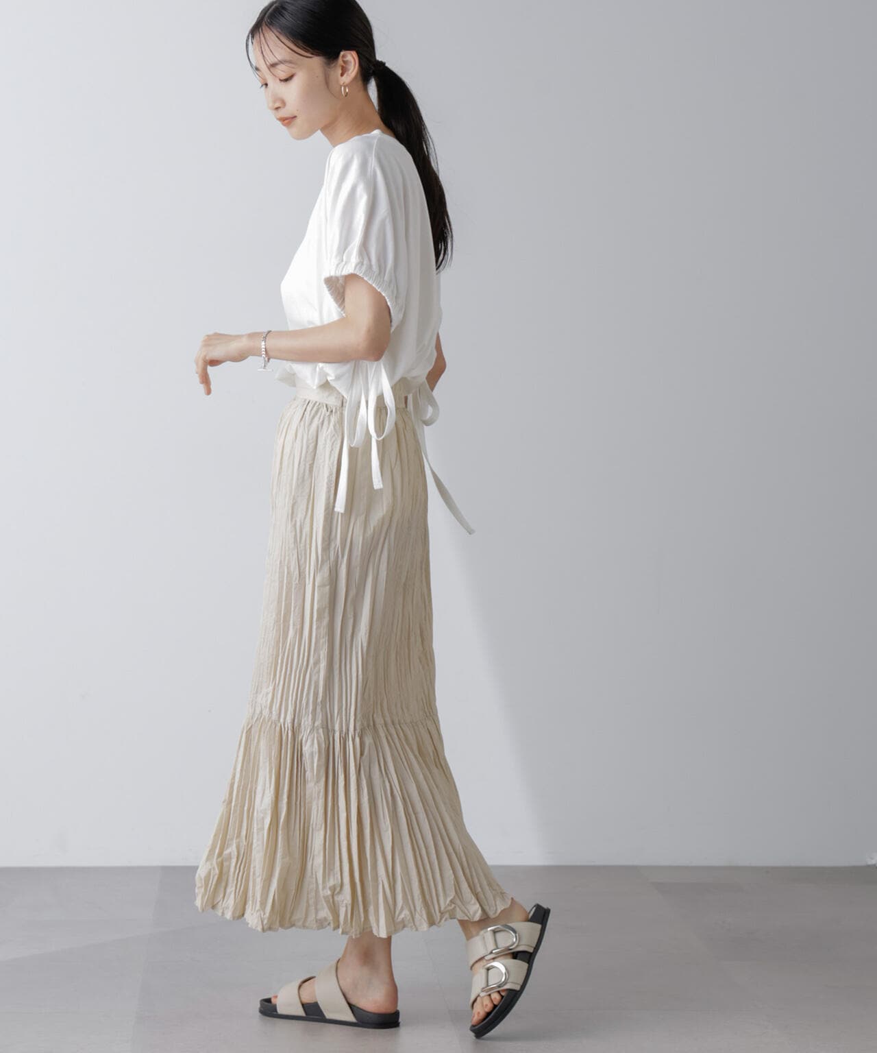 歩くたびにフワッとした動きが楽しめるーワッシャープリーツスカート。リラクシーなウエストゴム仕様で、ワッシャー加工を施しているのでシワが気にならないのも魅力的。大人カジュアルな着こなしや、キレイめなトップスなどでオンスタイルに着こなしもおススメです◎。