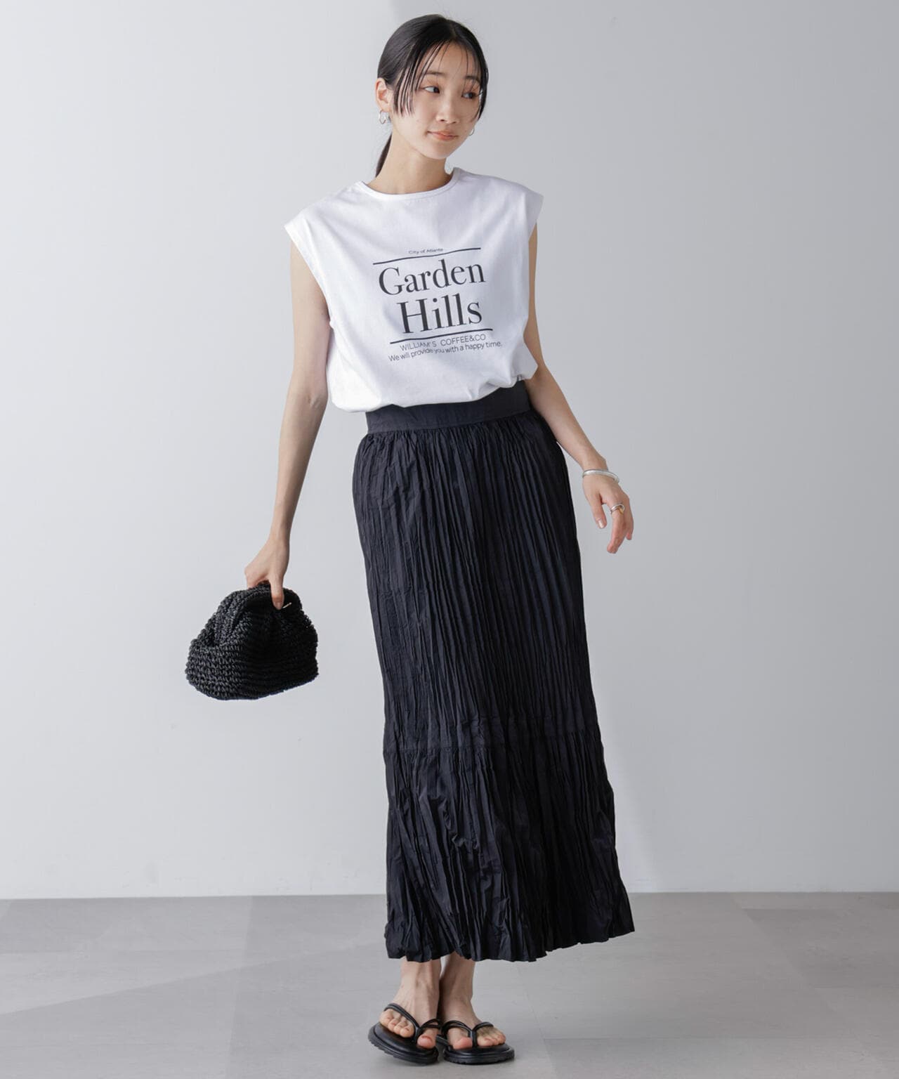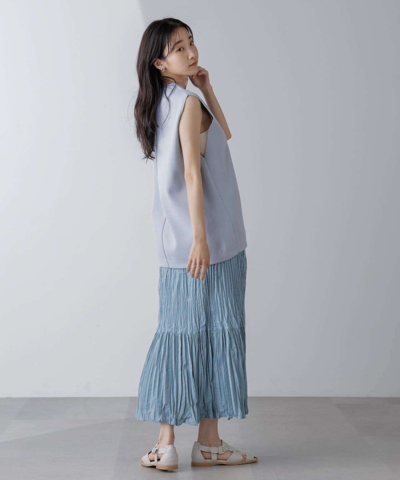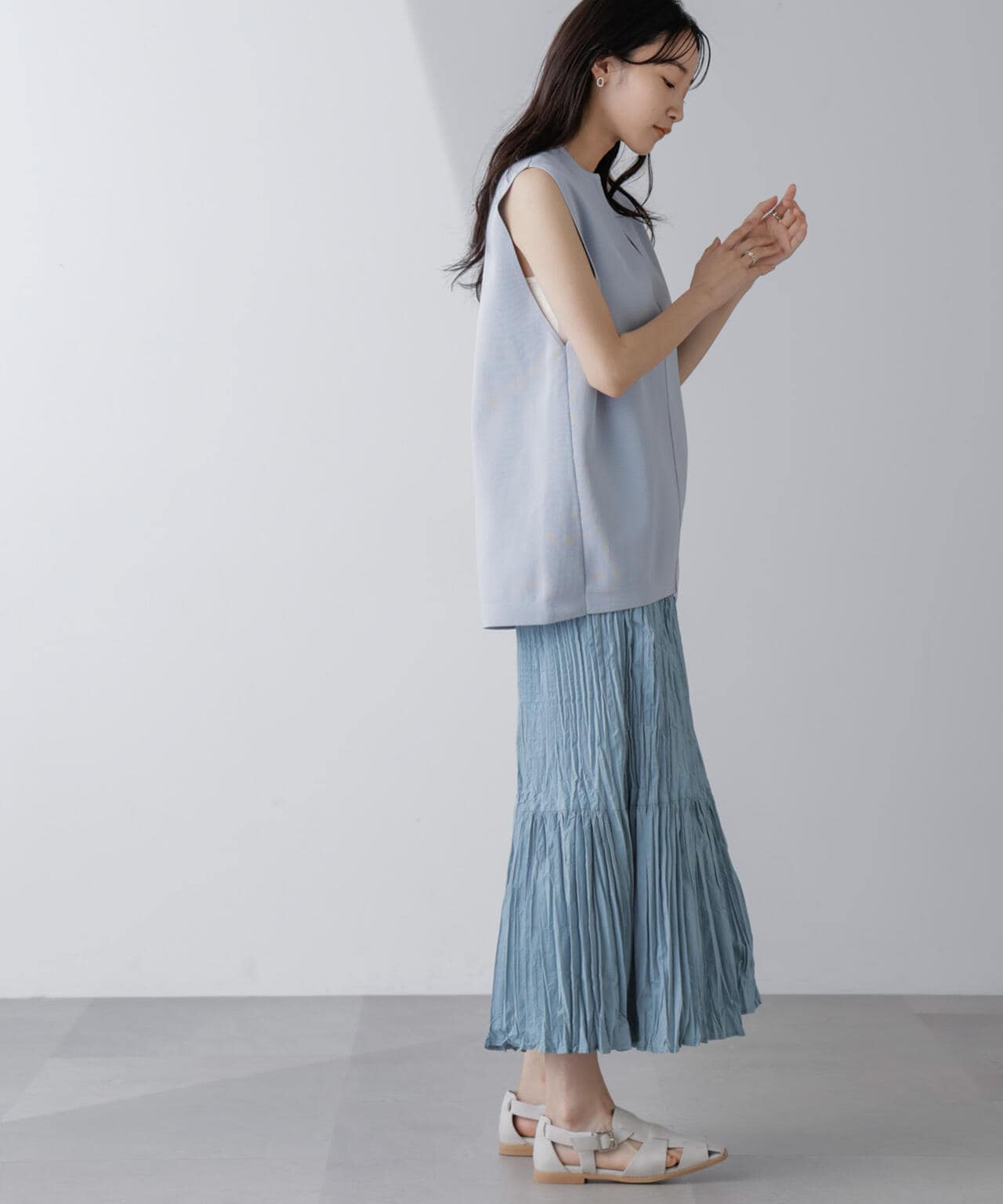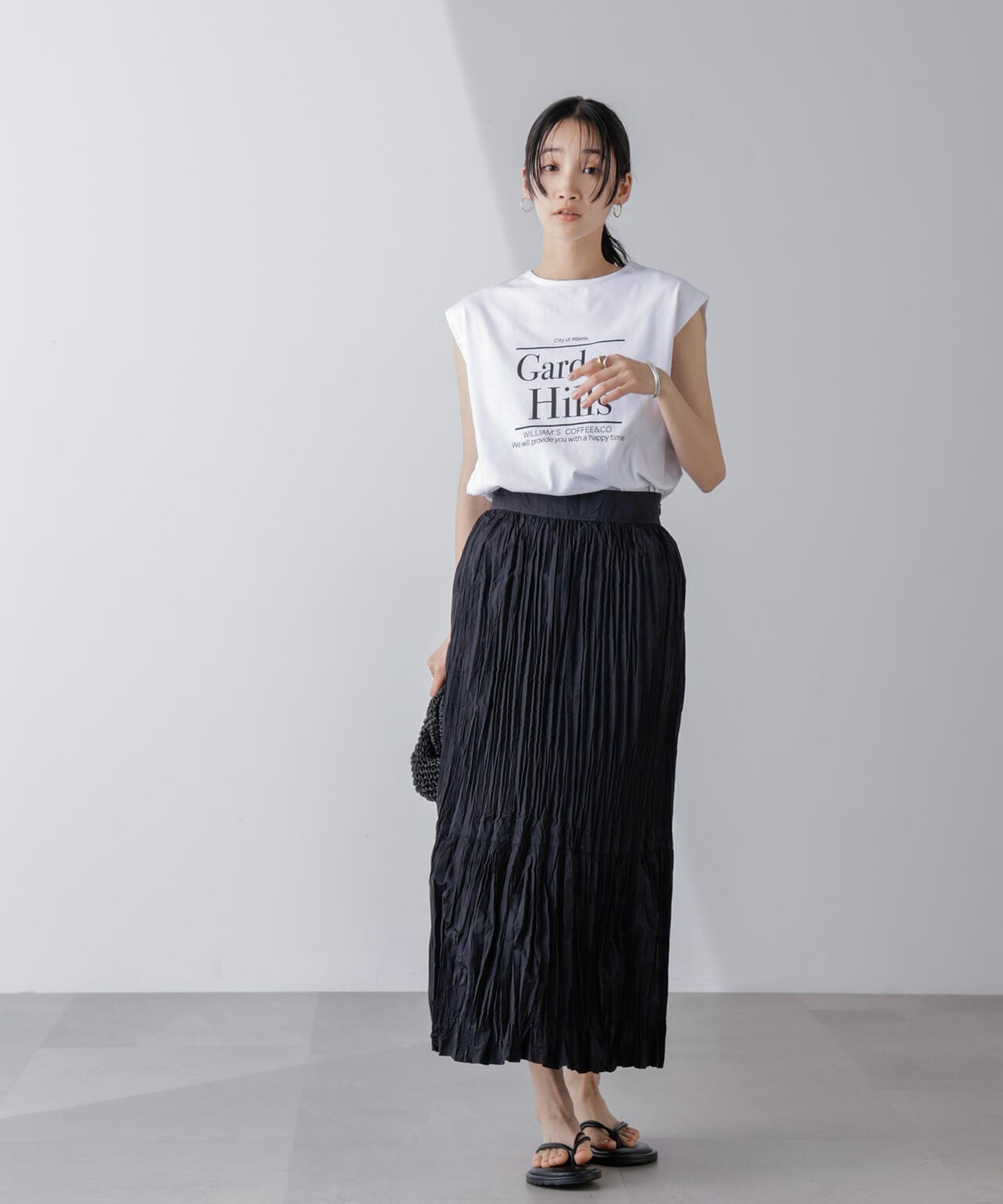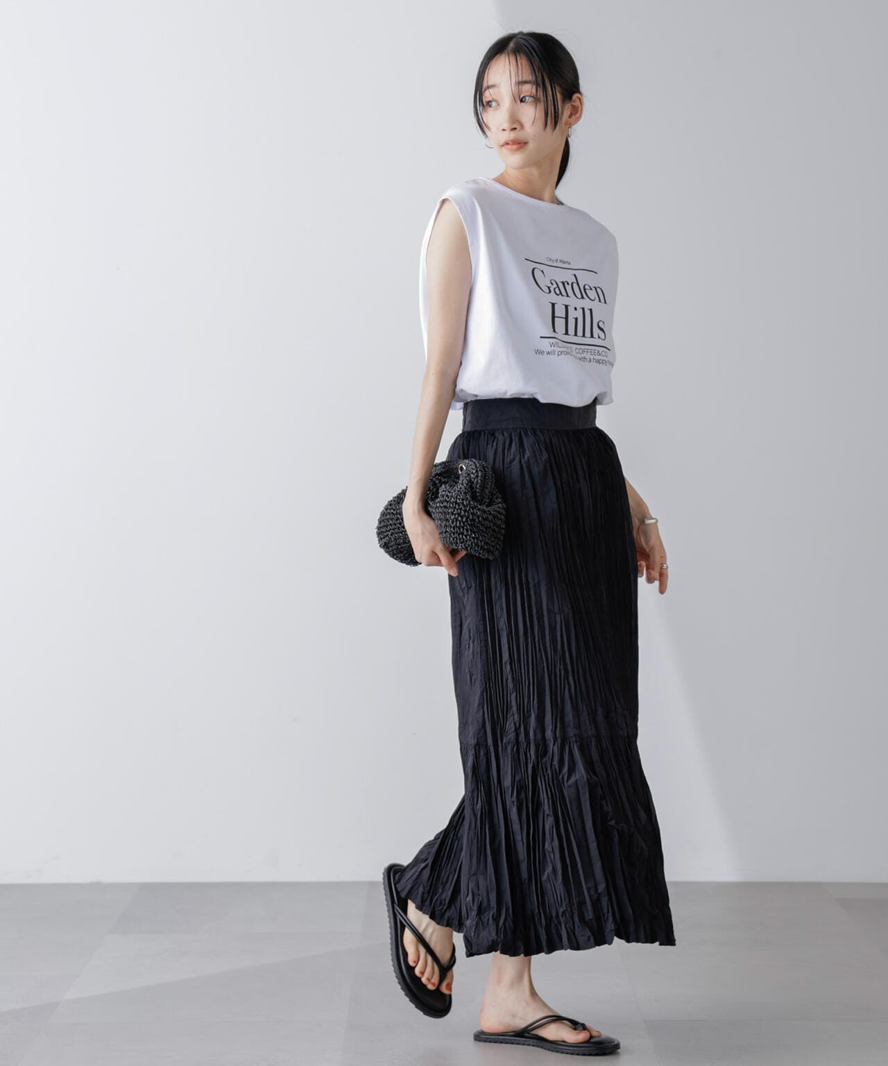 歩くたびにフワッとした動きが楽しめるーワッシャープリーツスカート。リラクシーなウエストゴム仕様で、ワッシャー加工を施しているのでシワが気にならないのも魅力的。大人カジュアルな着こなしや、キレイめなトップスなどでオンスタイルに着こなしもおススメです◎。