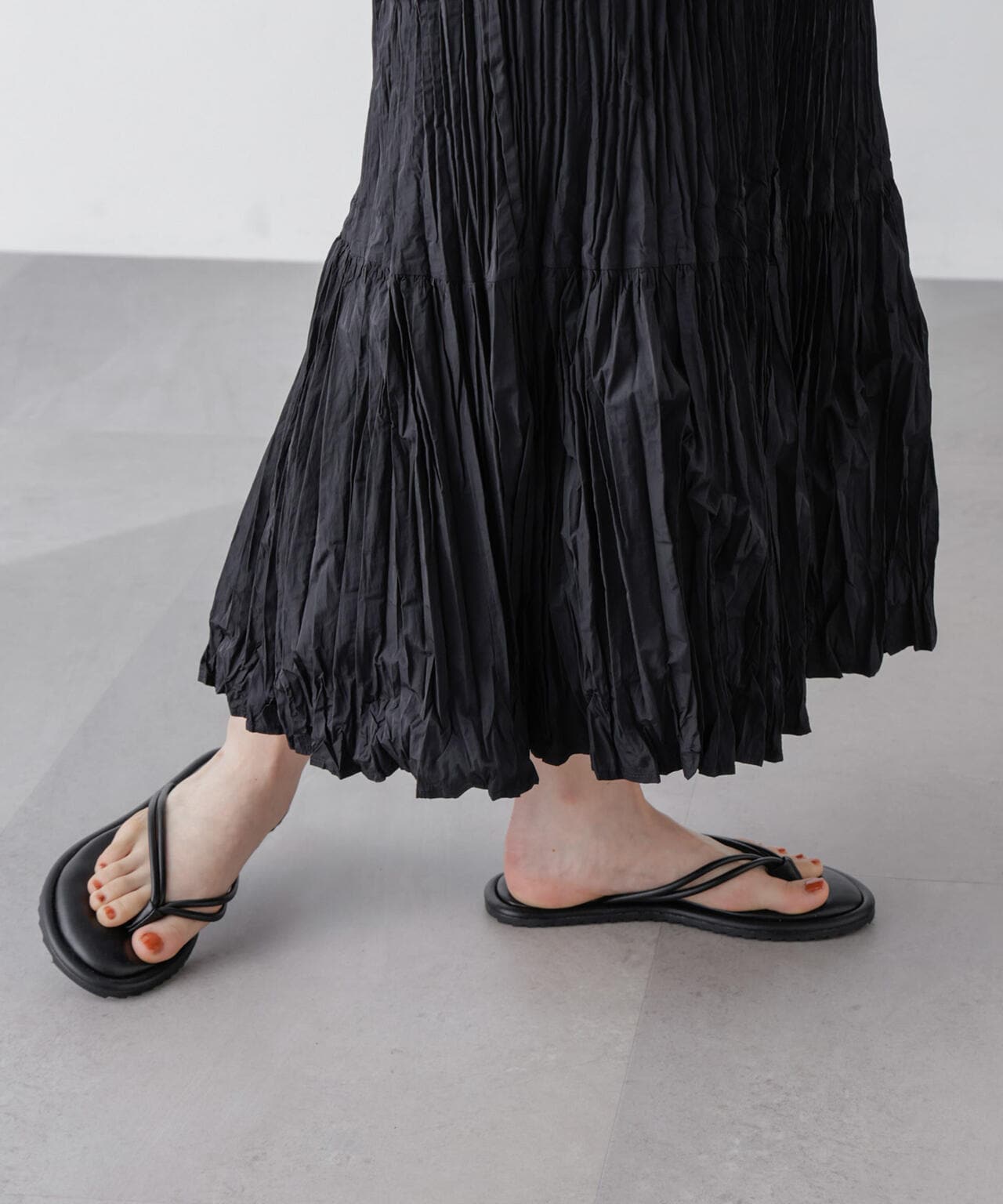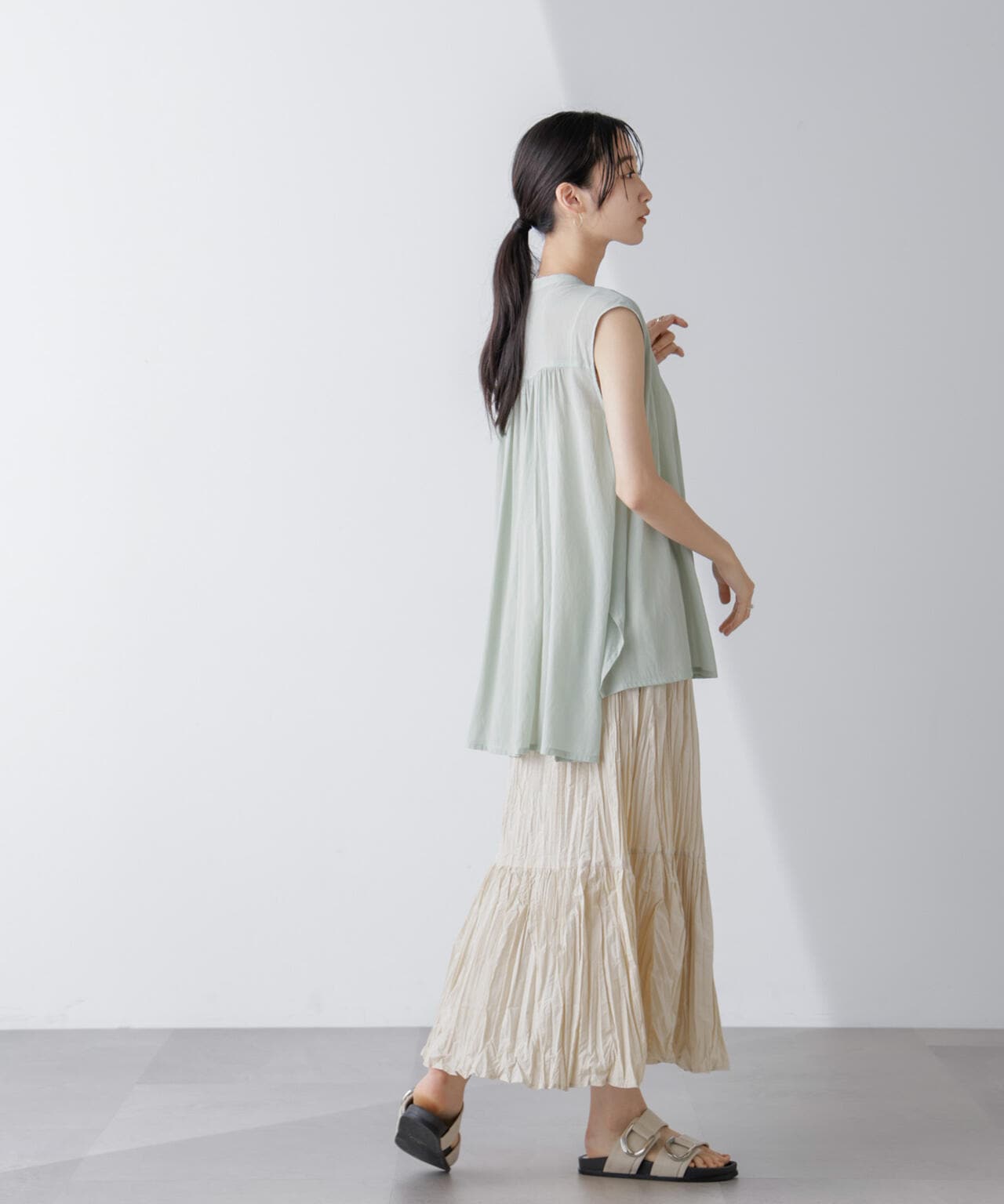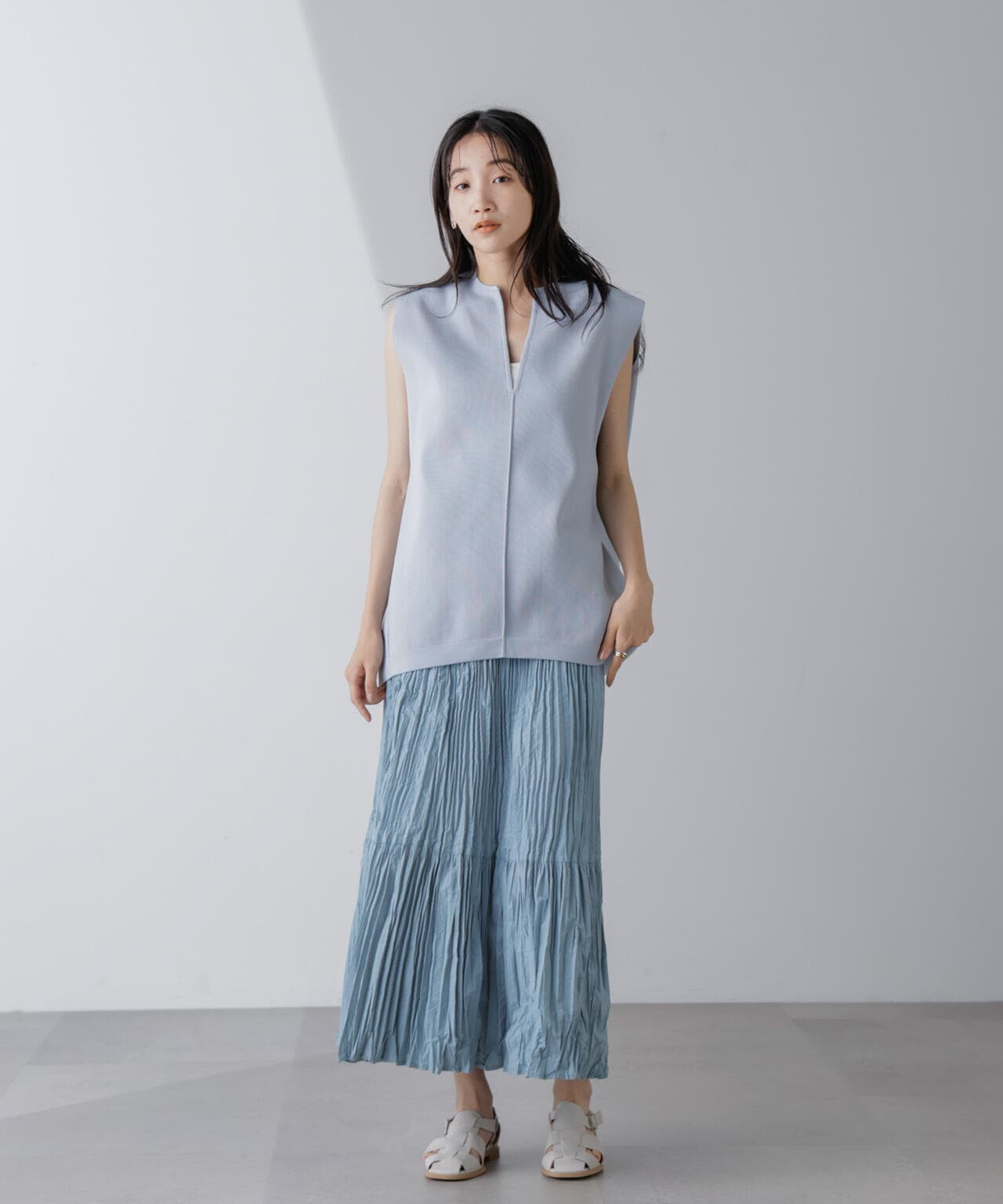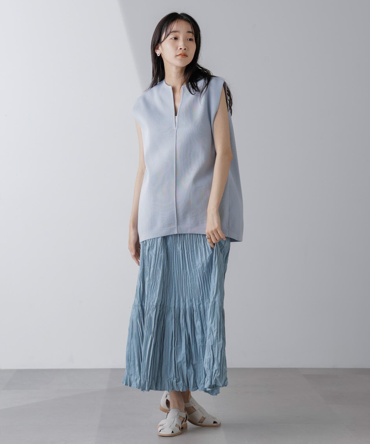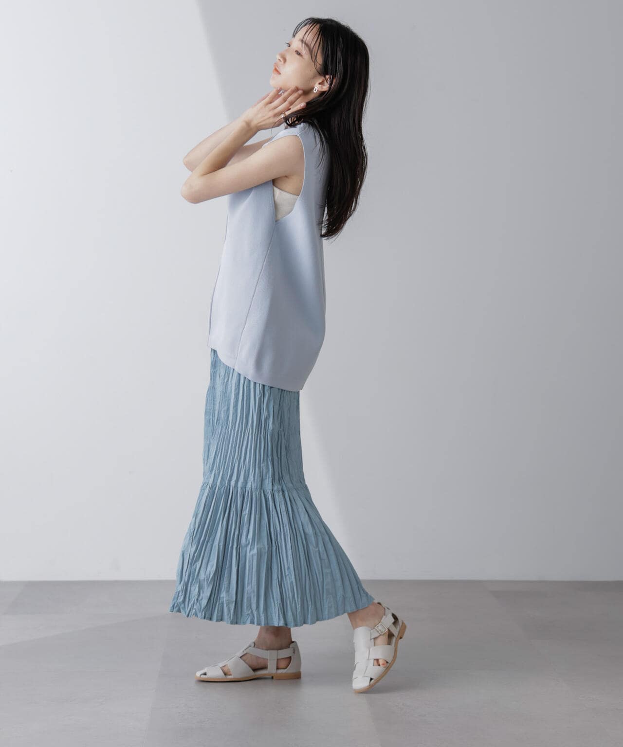 歩くたびにフワッとした動きが楽しめるーワッシャープリーツスカート。リラクシーなウエストゴム仕様で、ワッシャー加工を施しているのでシワが気にならないのも魅力的。大人カジュアルな着こなしや、キレイめなトップスなどでオンスタイルに着こなしもおススメです◎。
