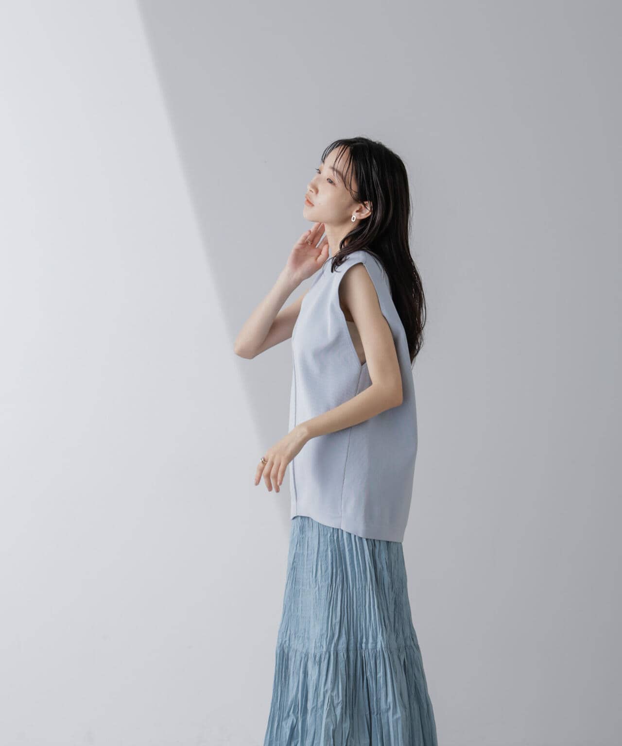 ・キレイ目なリブトップスと合わせて通勤スタイルにも◎