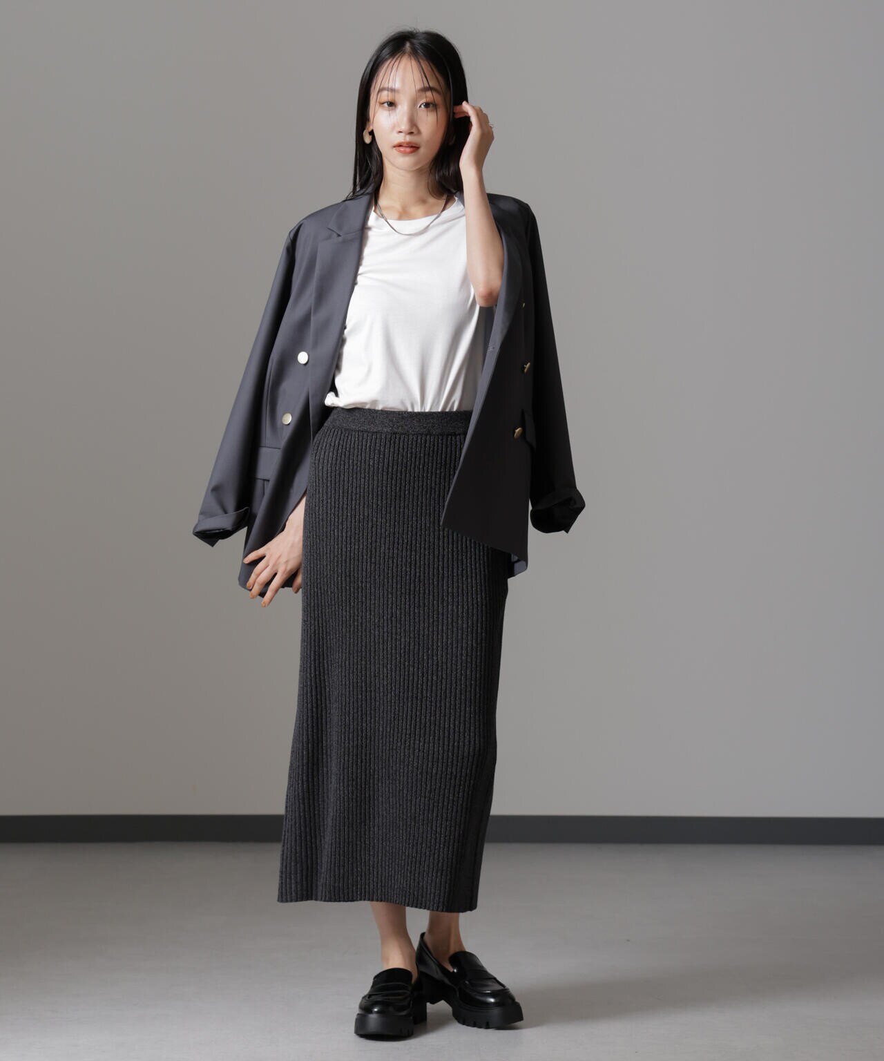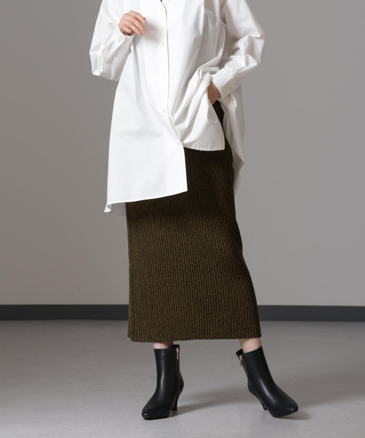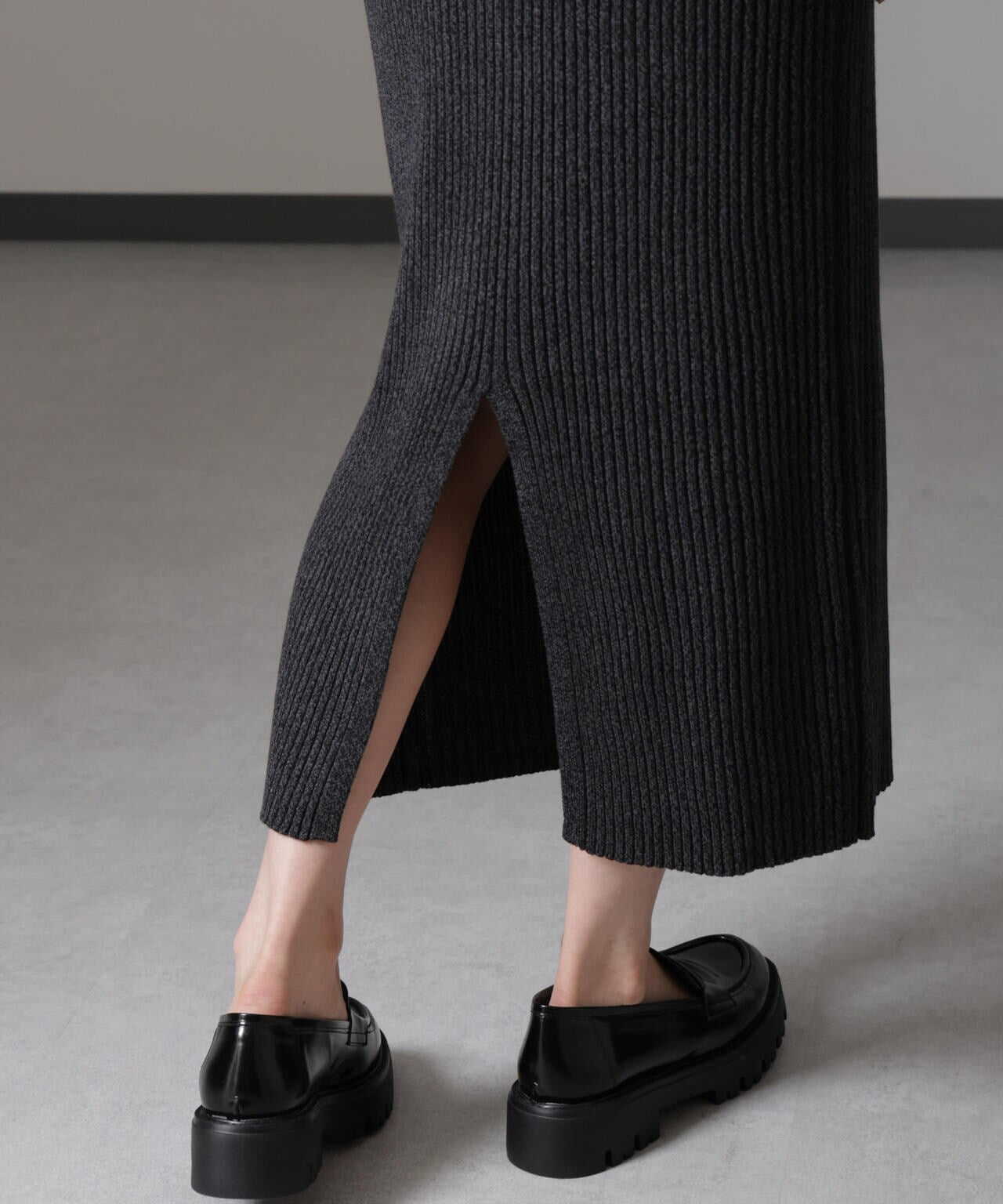 ・大人なシルエットを演出してくれるリブニットナロースカート