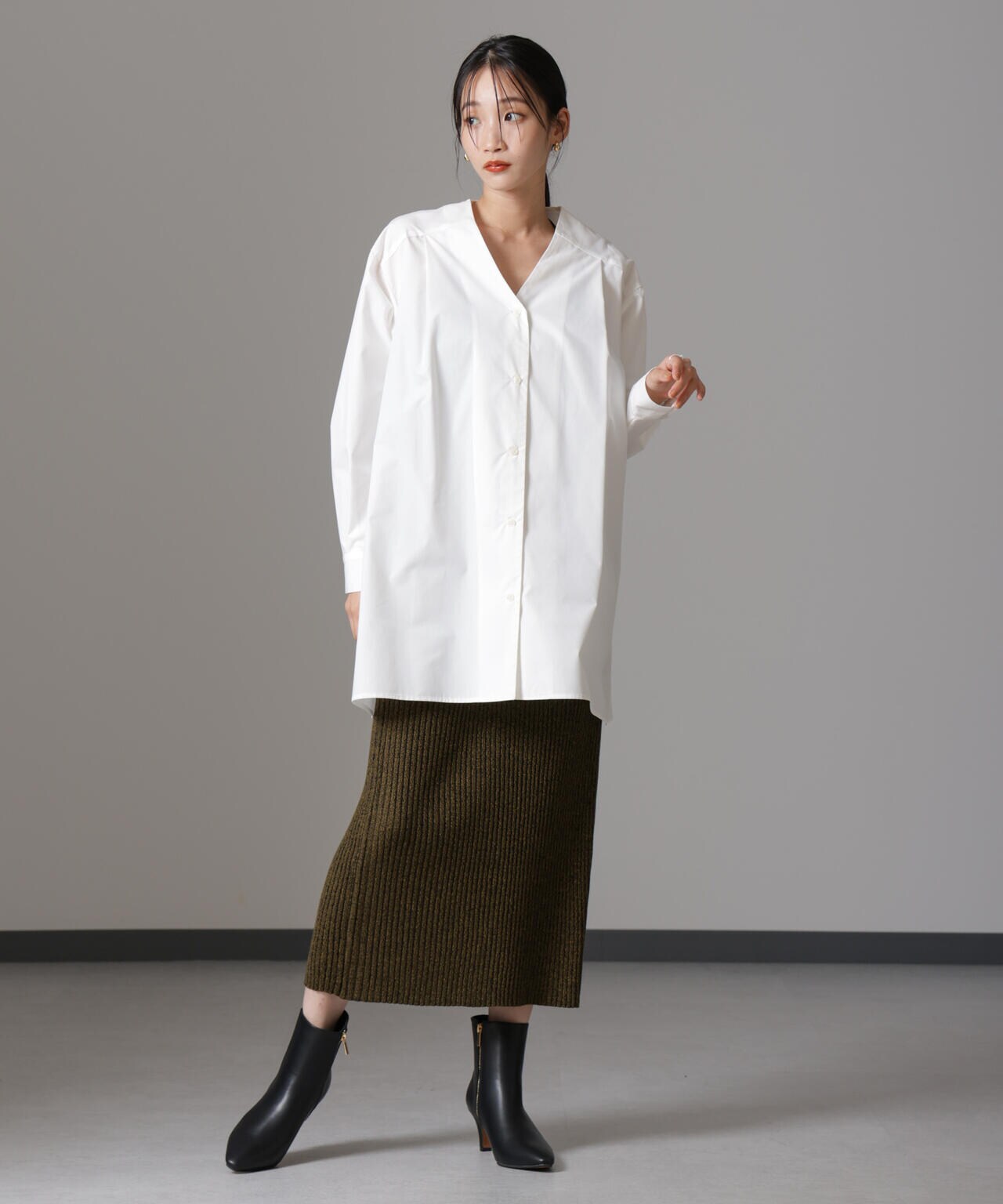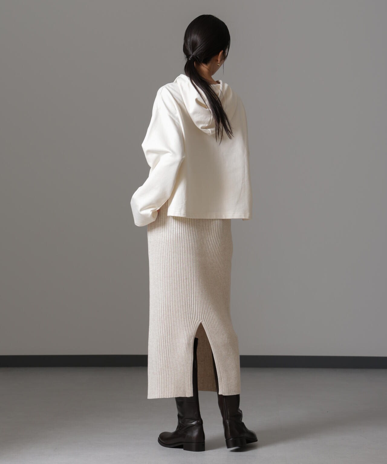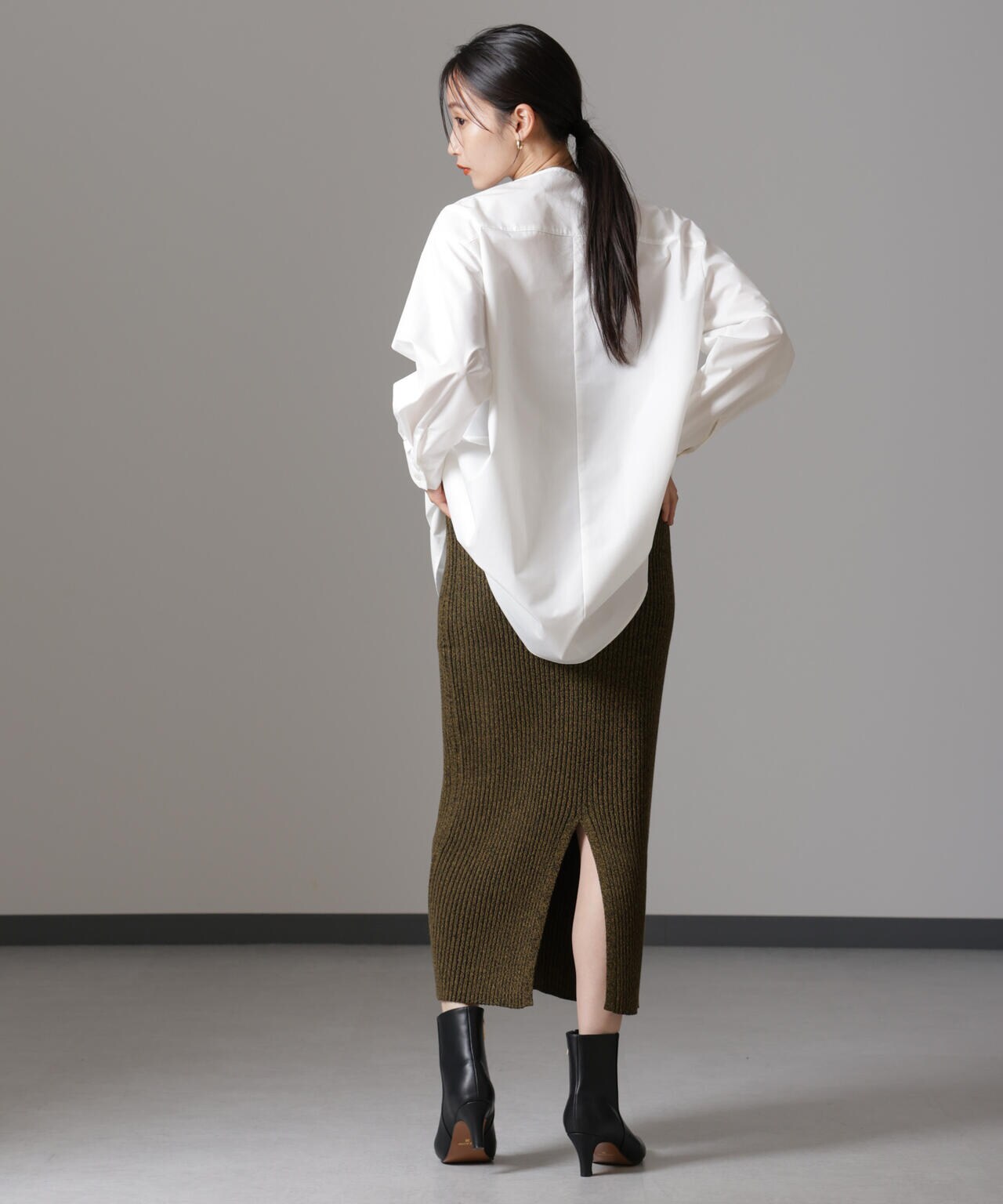 ・大人なシルエットを演出してくれるリブニットナロースカート