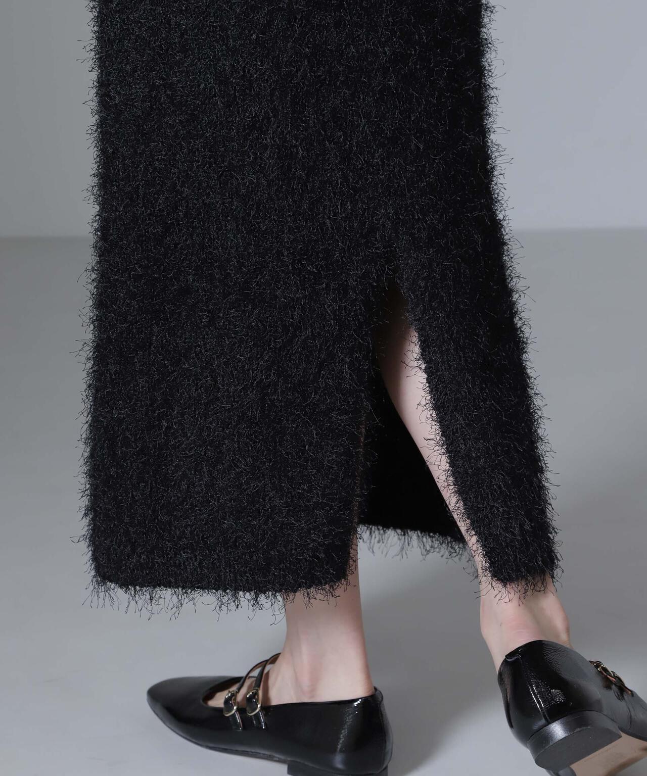 フワフワしたフェザーヤーンが華やかなニットスカート。シンプルながらもコーディネートのポイントになるストレートシルエットで、スタイルアップが期待できるデザイン。特徴的な素材が目を惹くから、シンプルなトップスと合わせるだけで一気にコーディネートを華やかにアップデートできます!