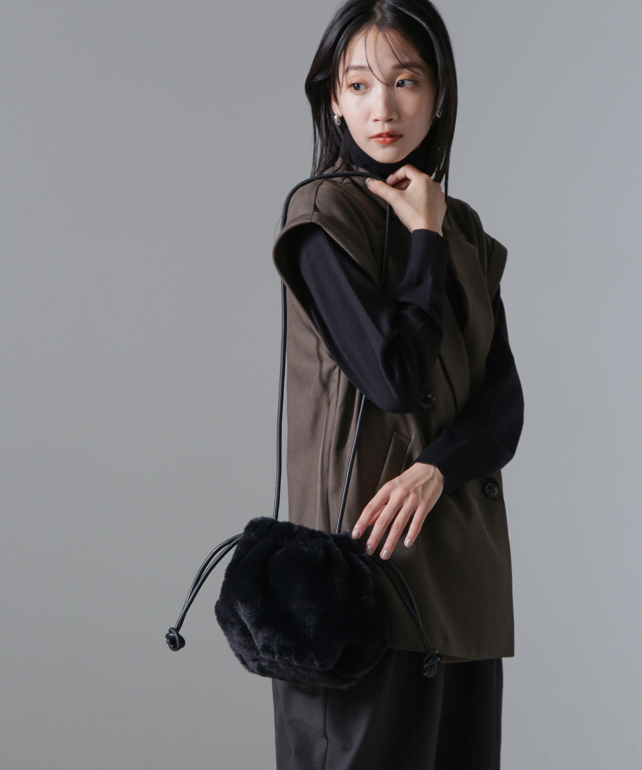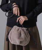 手触りの良いフェイクファーと、コロンと丸いシルエットが可愛らしいミニ巾着バッグ。ちょっとしたお出かけに、アクセサリー感覚で取り入れていただきたい季節感のあるアイテムです。