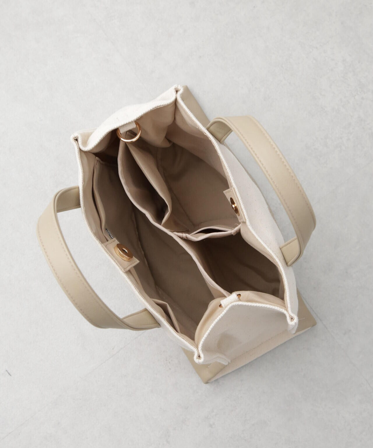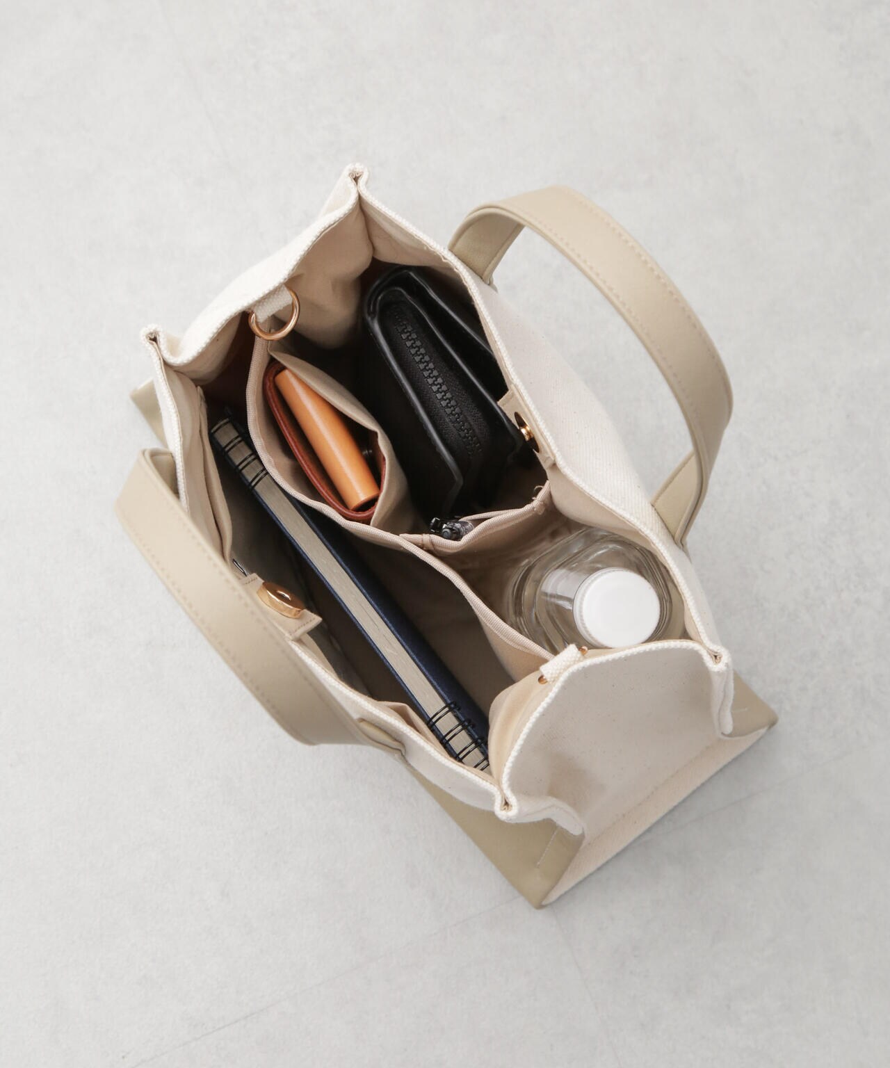 どんなスタイリングにも合わせやすいキャンバストートバッグ。内側が細かく仕切りられており、お財布や折りたたみ傘、リップなどの小物をきれいに収納・サッと取り出すことができる機能性たっぷりな嬉しいアイテムです。