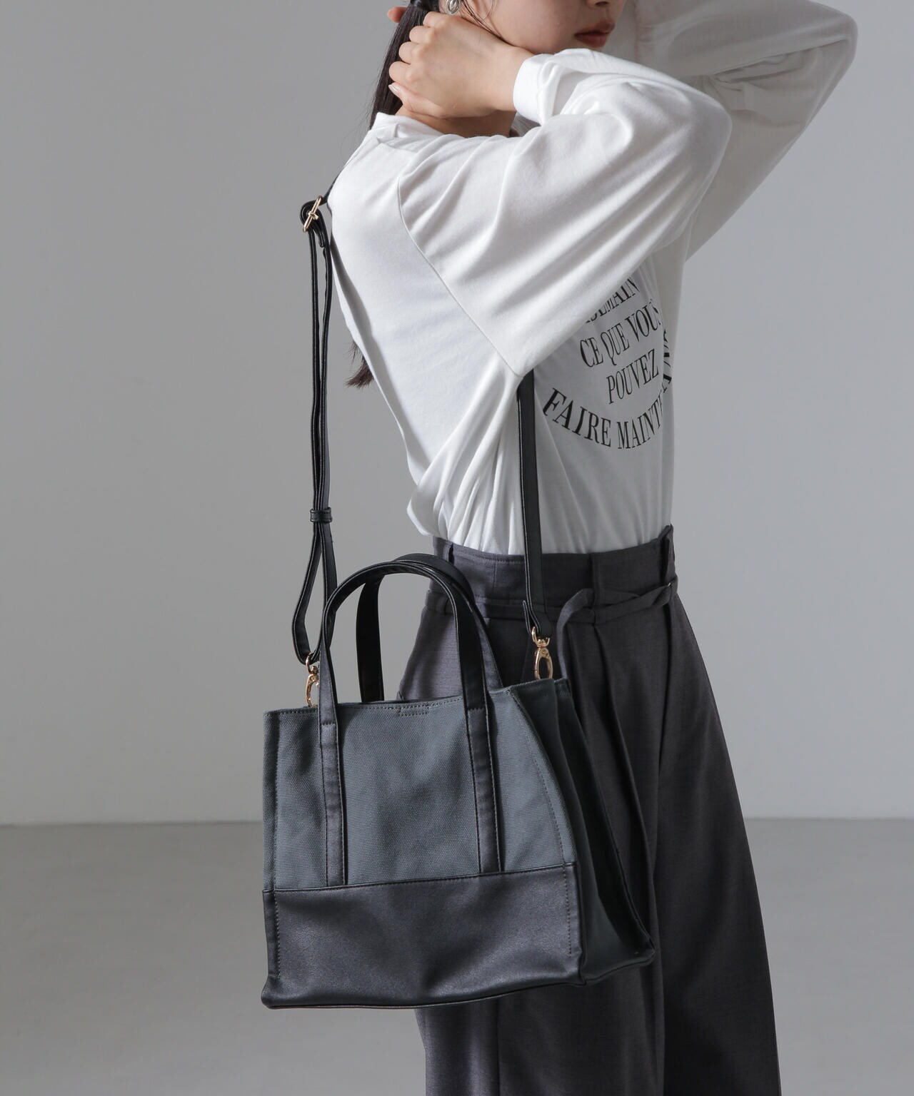 ・カジュアルで合わせやすいキャンバス地と、綺麗見えする合皮のコンビネーション