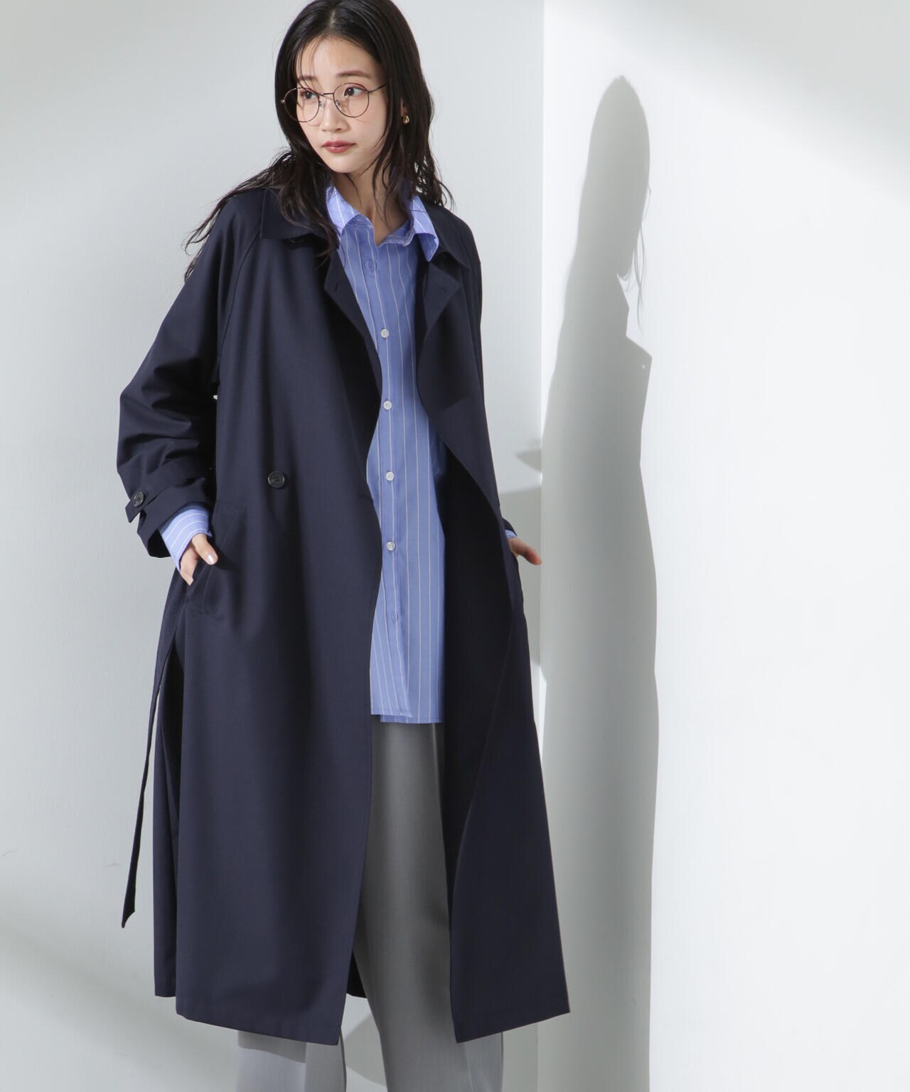 撥水&花粉ガードシリーズのきちんと感とラフさを兼ね揃えた、軽い着心地のトレンチコート。撥水加工を施した高機能性を備えており、天候を気にせずに着用できる頼れる1枚。ガウンのような感覚でサッと羽織れるので、ワードローブに加えていただければ重宝すること間違いなし!
