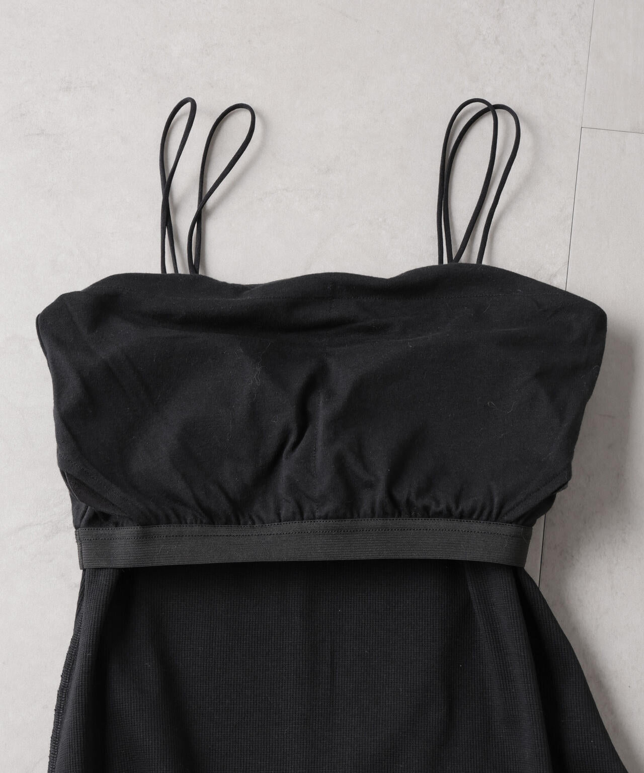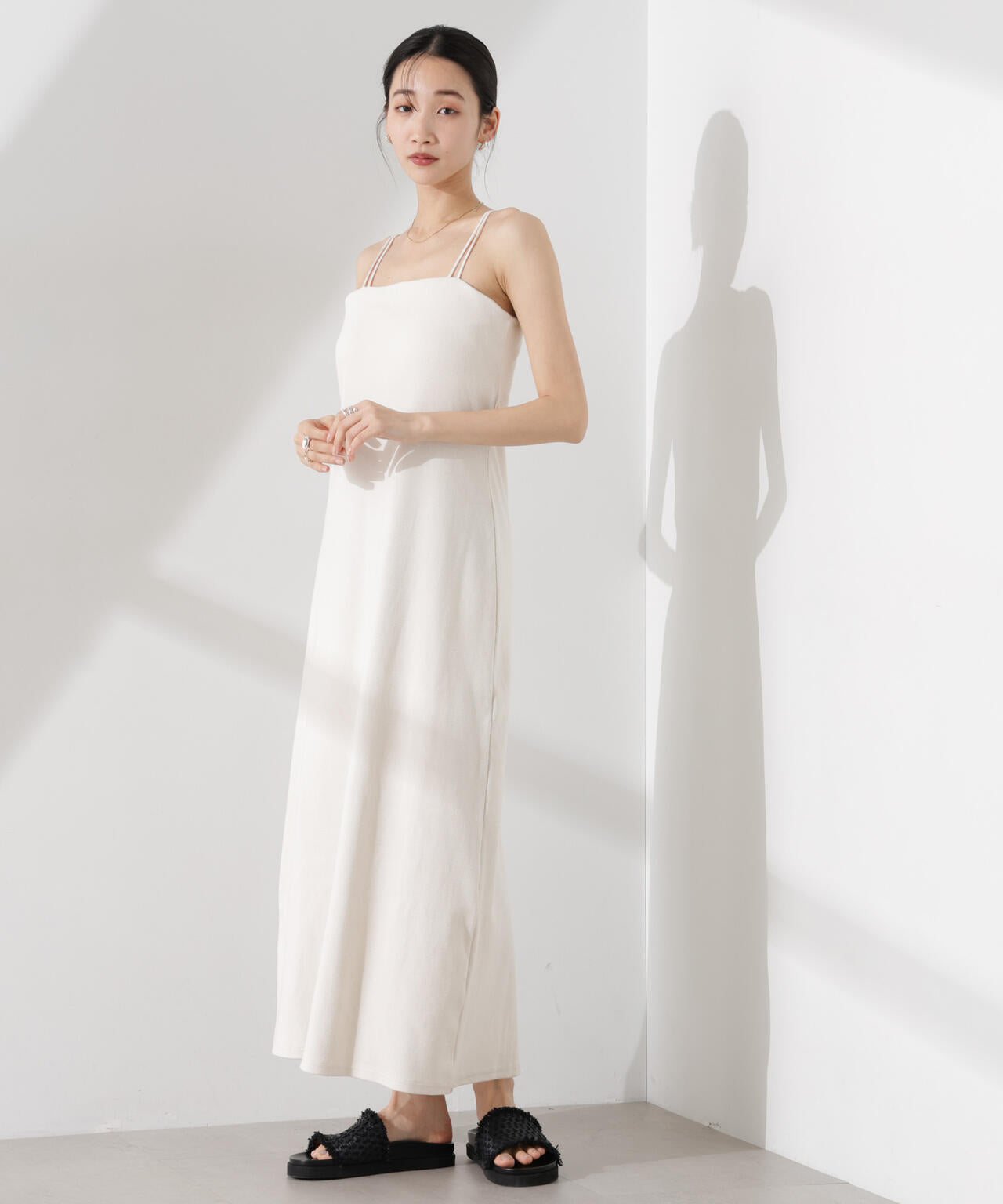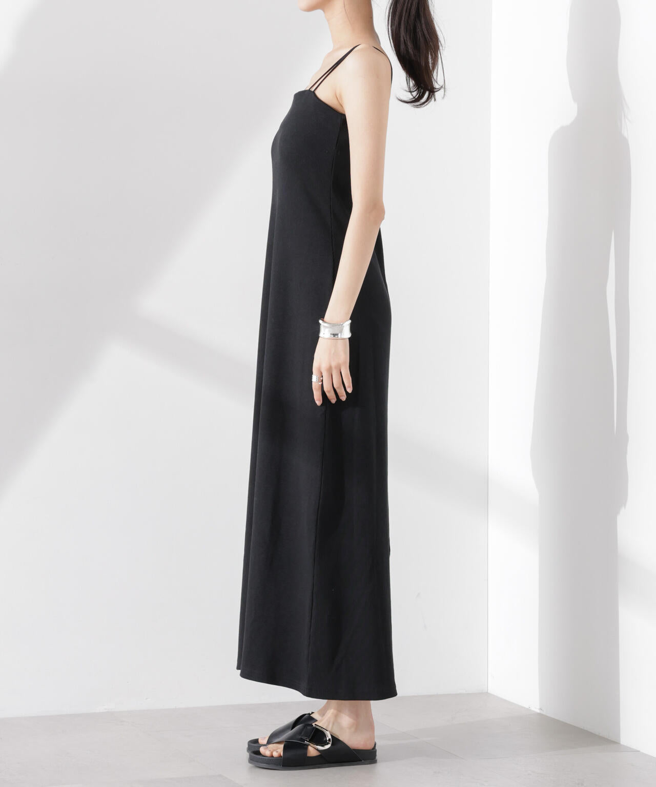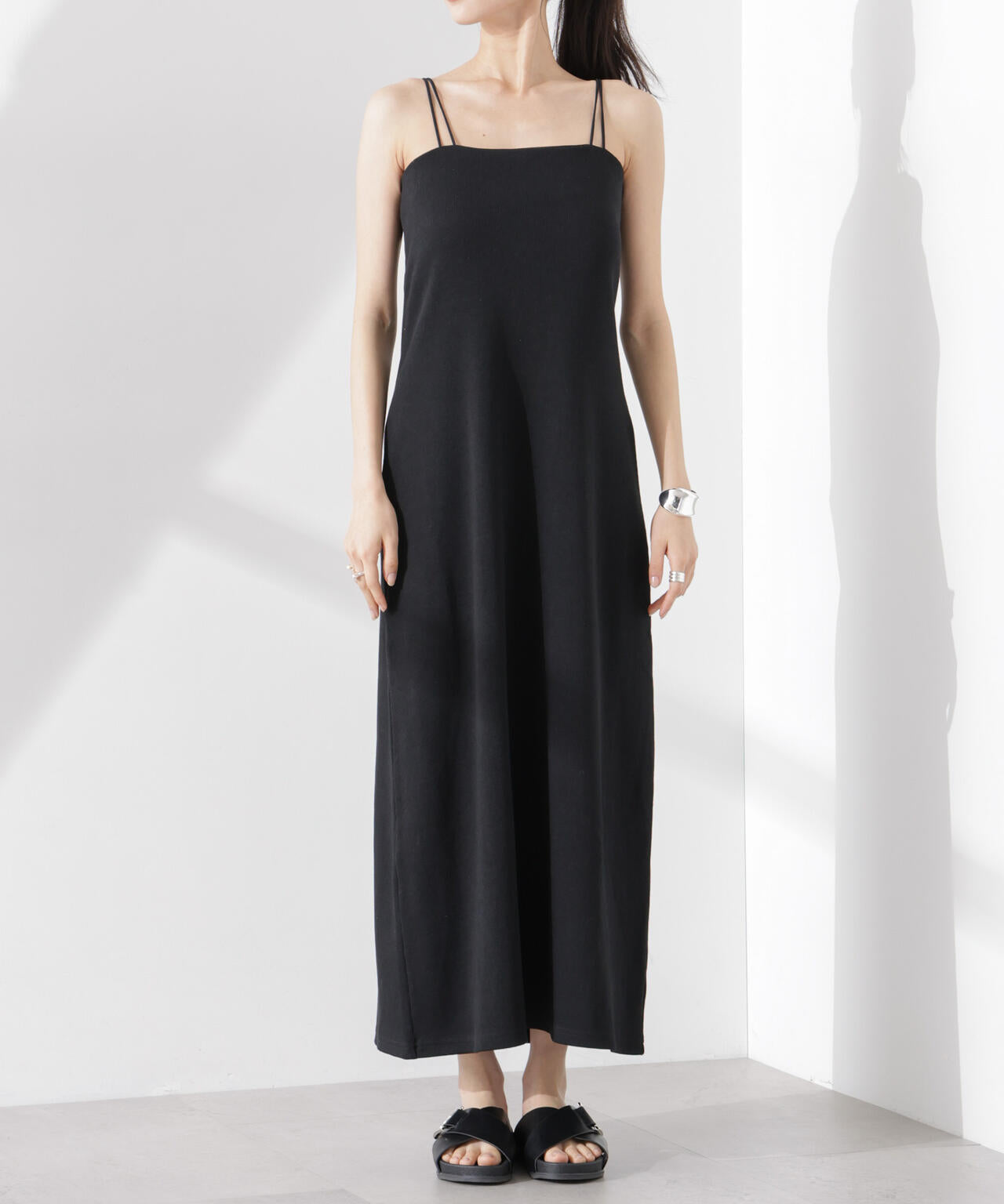 羽織りのインナーやワンピースのペチコートとして重宝するカップ付きキャミソールワンピース。一枚で着用しても安心感のある厚みのリブ素材で、ラインを綺麗に見せてくれるパッド入りが嬉しいポイントです。