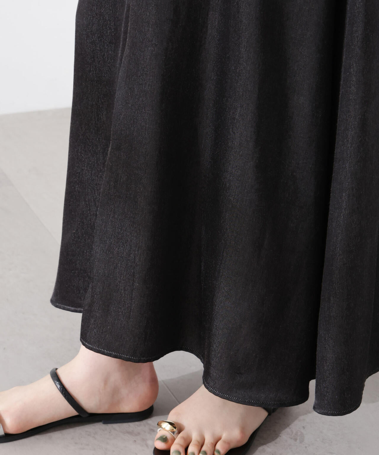 ・緩やかなフレアでボリュームを抑えたシルエット