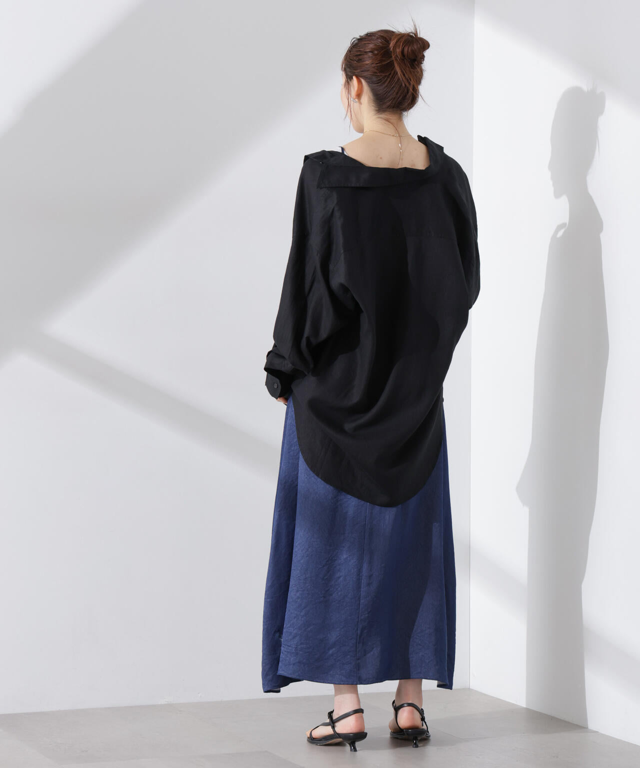 ・身体のラインを拾いにくくすっきりと着こなせるサイズ感