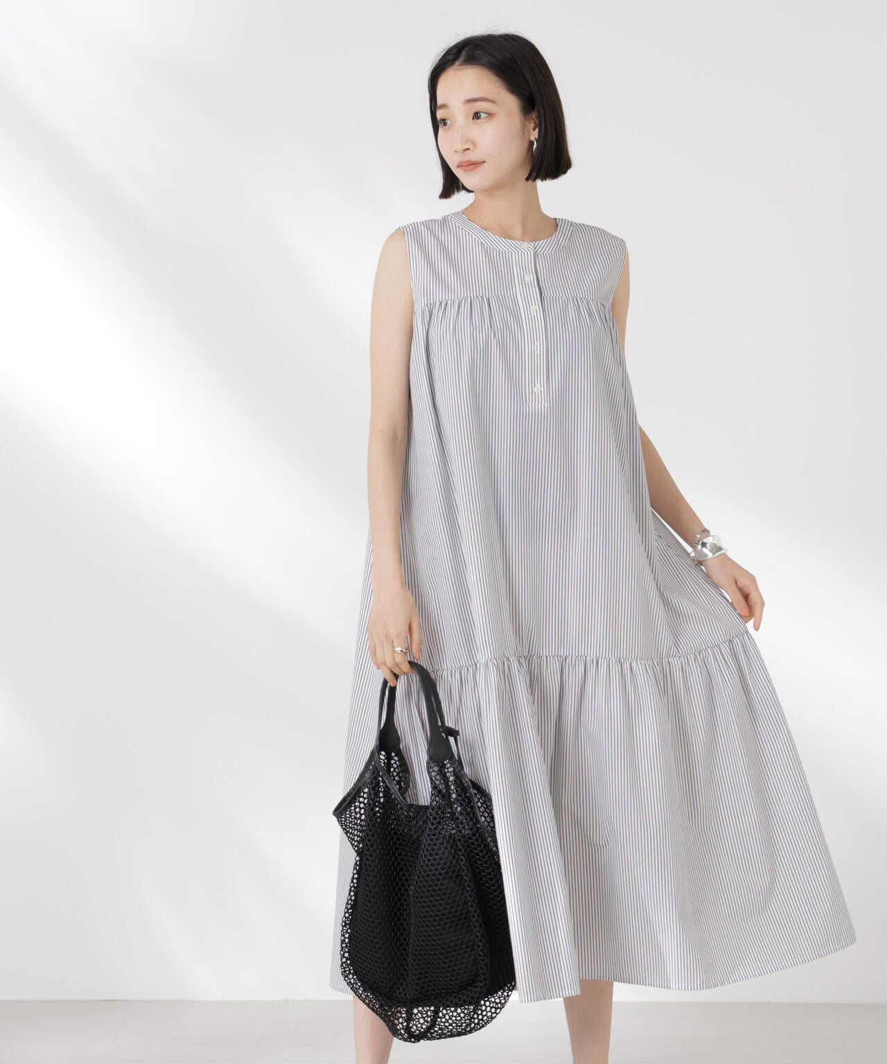 ・時短でコーディネートが様になるヘンリーネックのワンピース