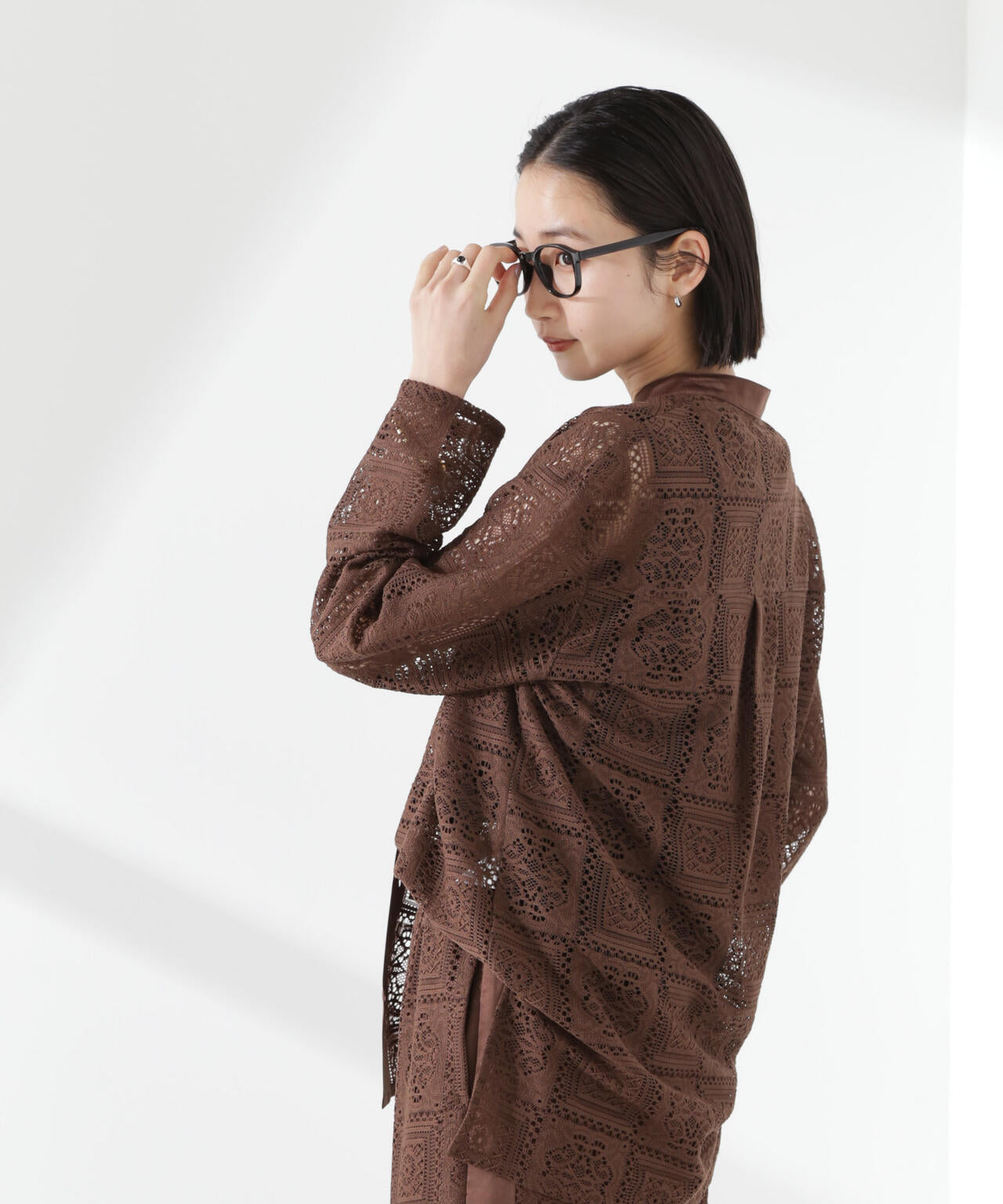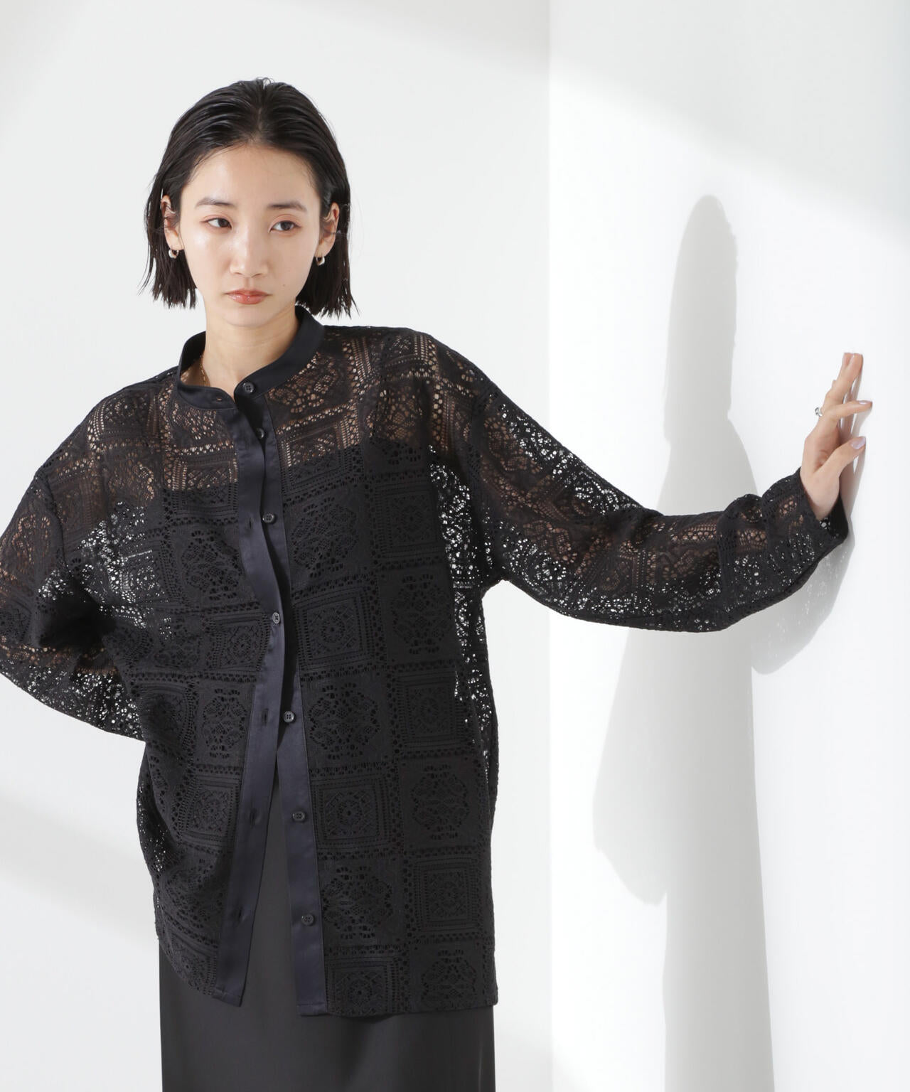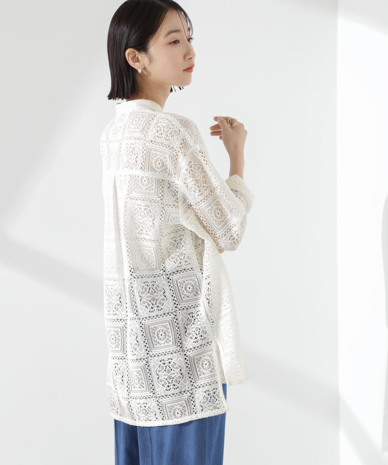 ・甘すぎない繊細な雰囲気のレースで仕立てたシャツ