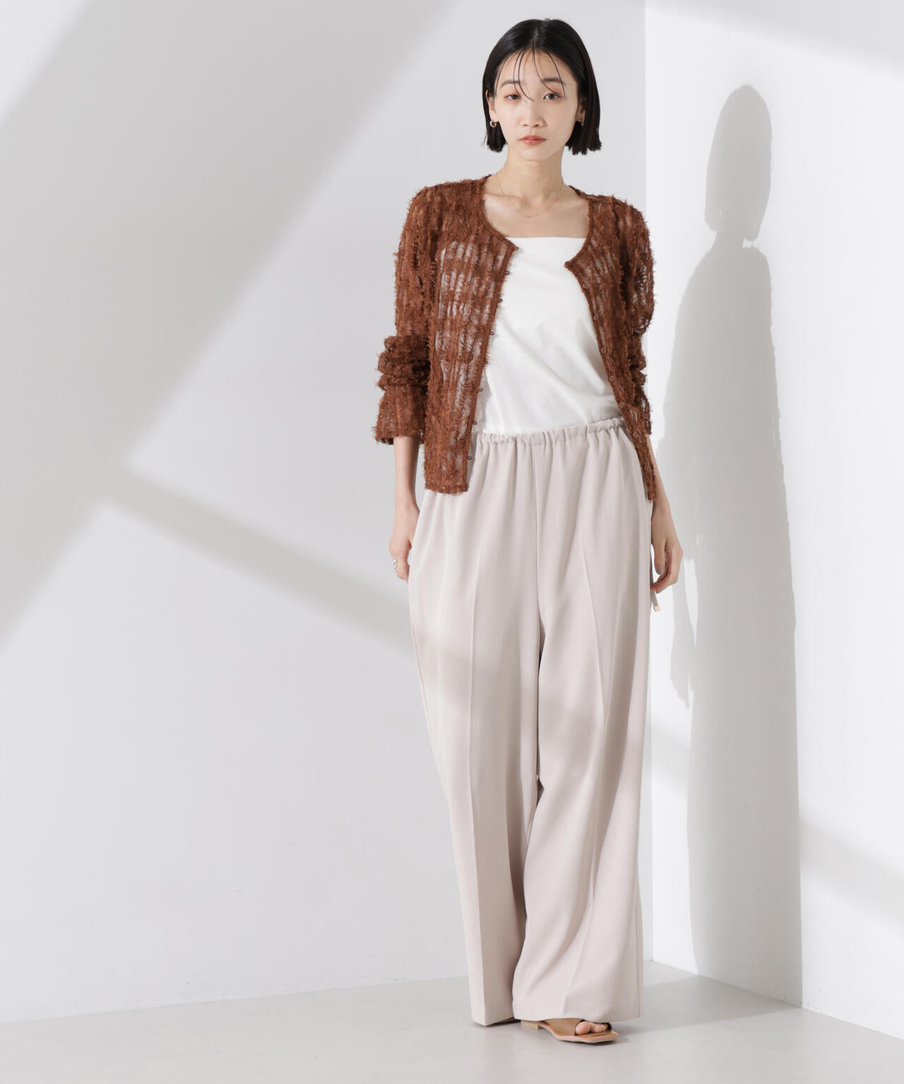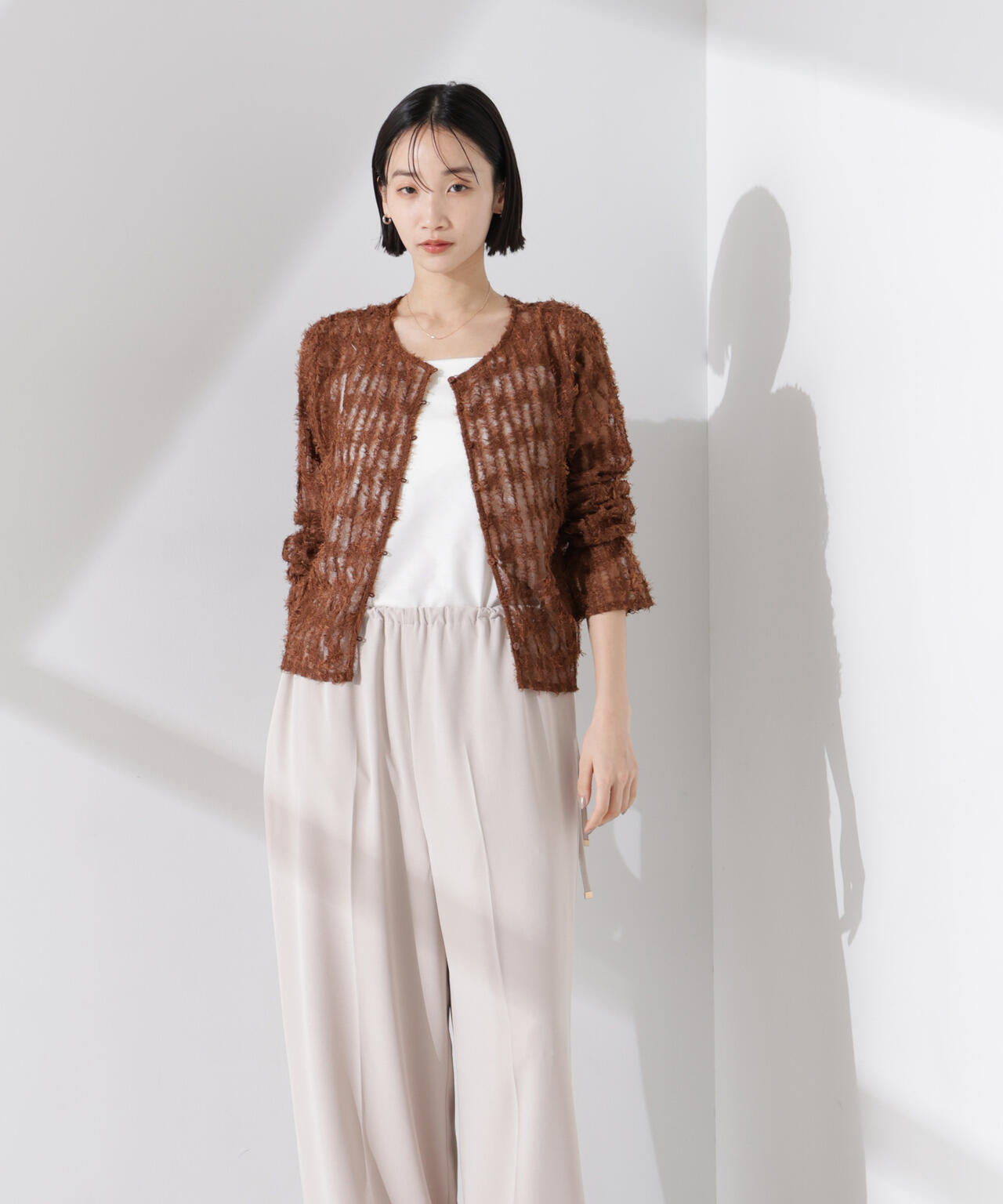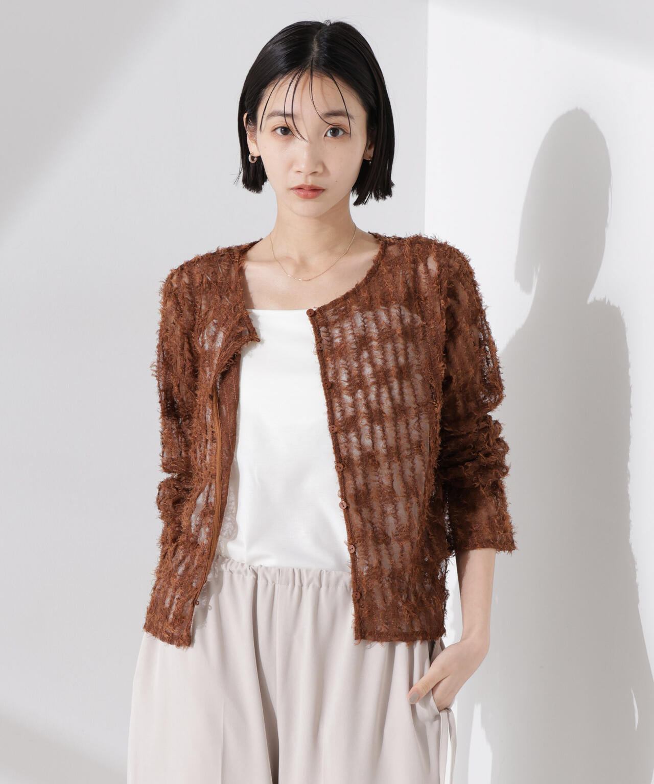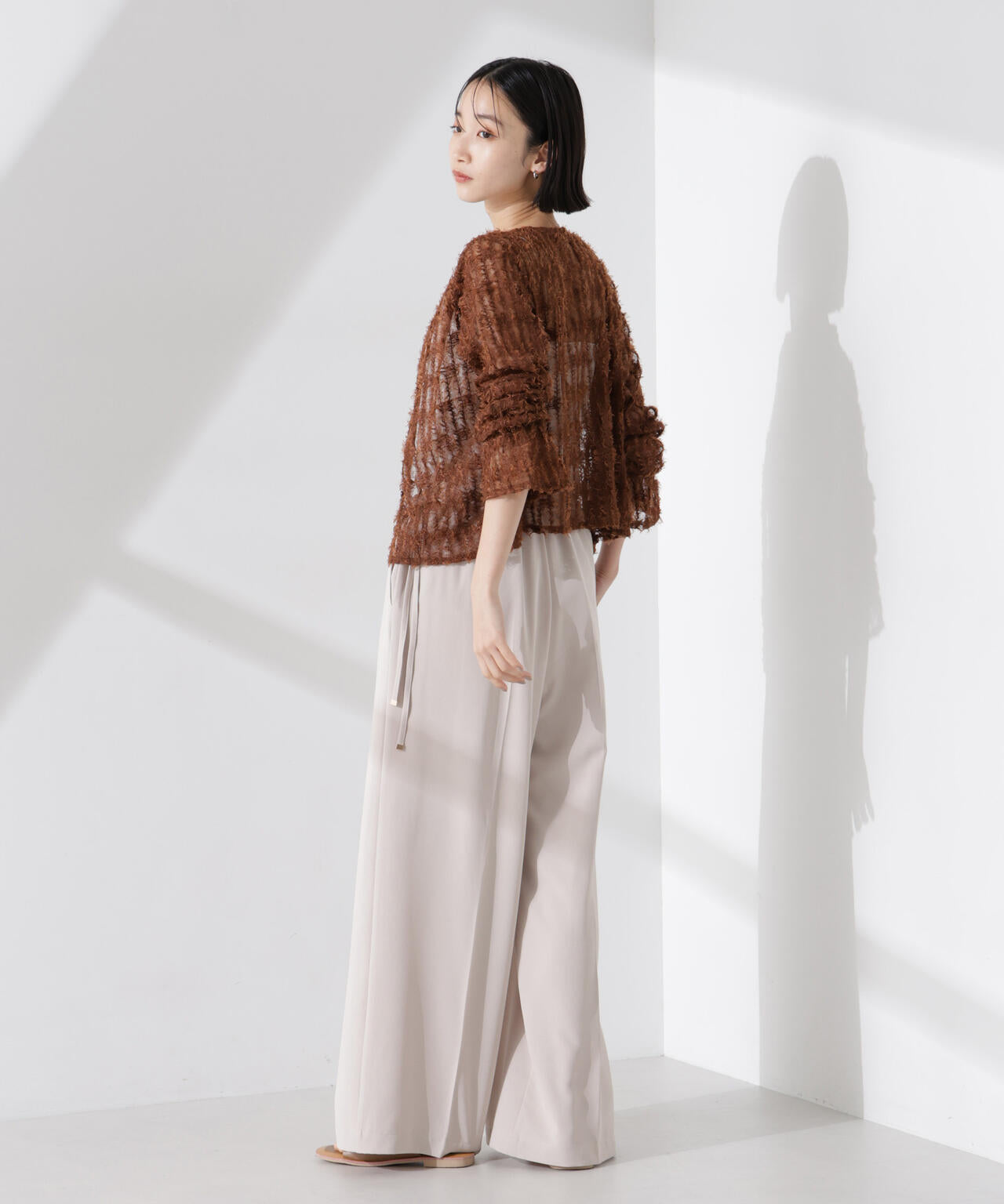 一枚でしっかり映えるフリンジデザインが特徴の前後2wayブラウス。長さのないフリンジなので個性的過ぎず、程よいチュールの透け感が女性らしいアイテム。ややクロップ丈でスタイルアップも叶い、いろいろな着こなしが楽しめるひと品です。