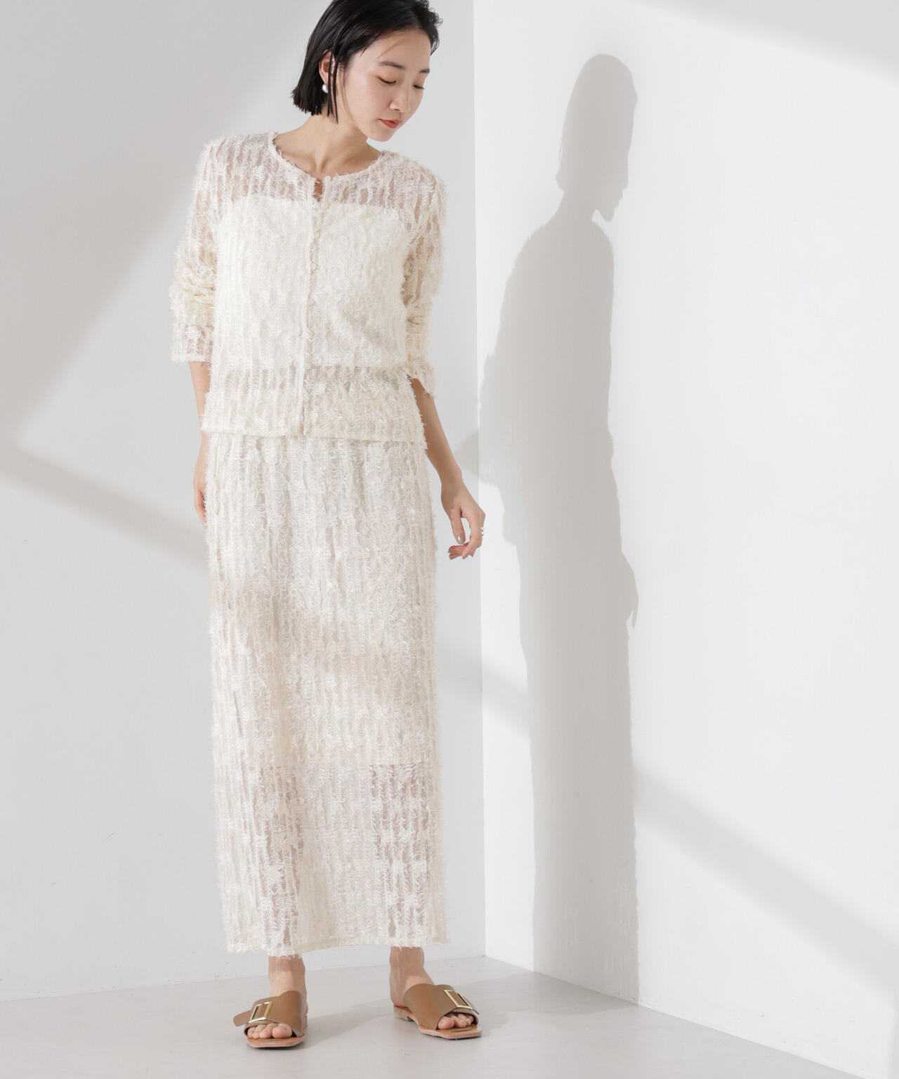 ・ふんわりとしたチュール素材に、フリンジデザインが施されたジャガード素材