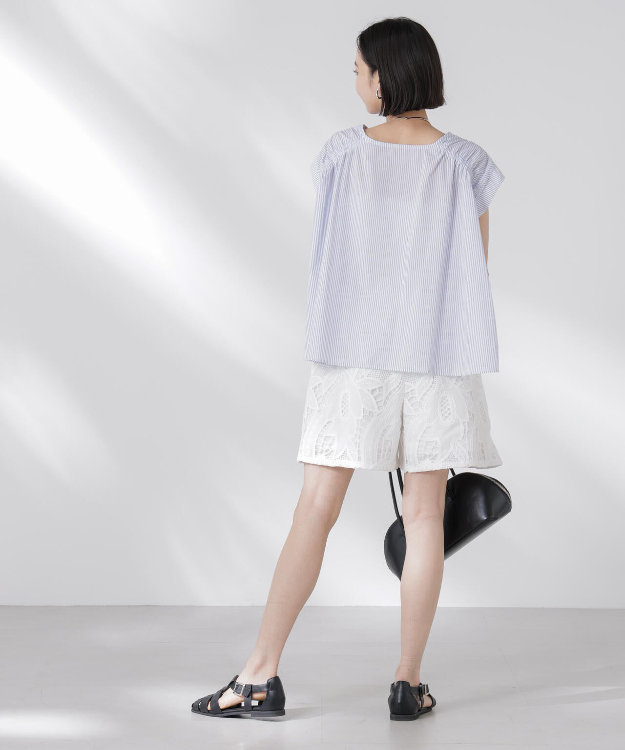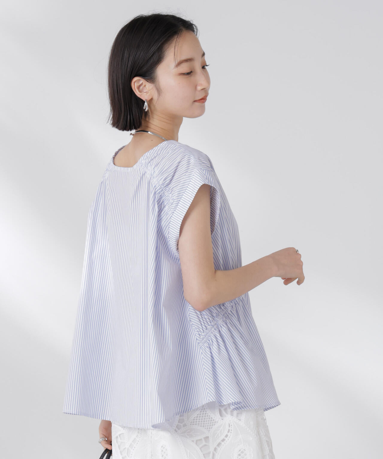 雰囲気のチェンジを楽しめる前後2wayのプルオーバーブラウス。フレア感のあるシルエットが女性らしさを引き出してくれるので、シンプルなボトムを合わせるだけで様になるアイテムです。